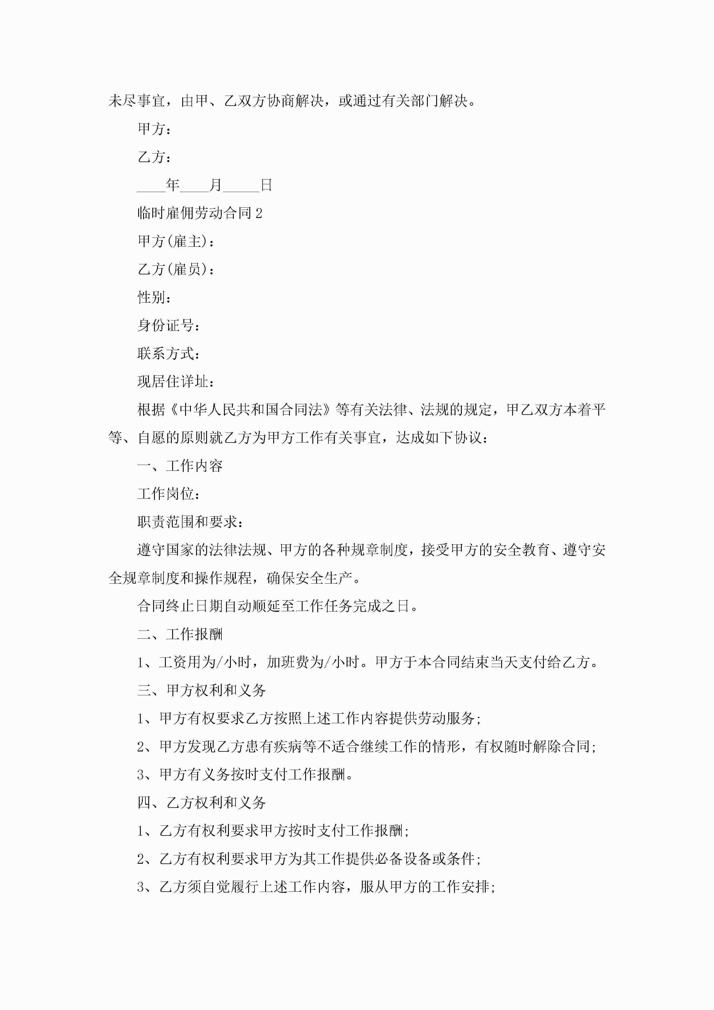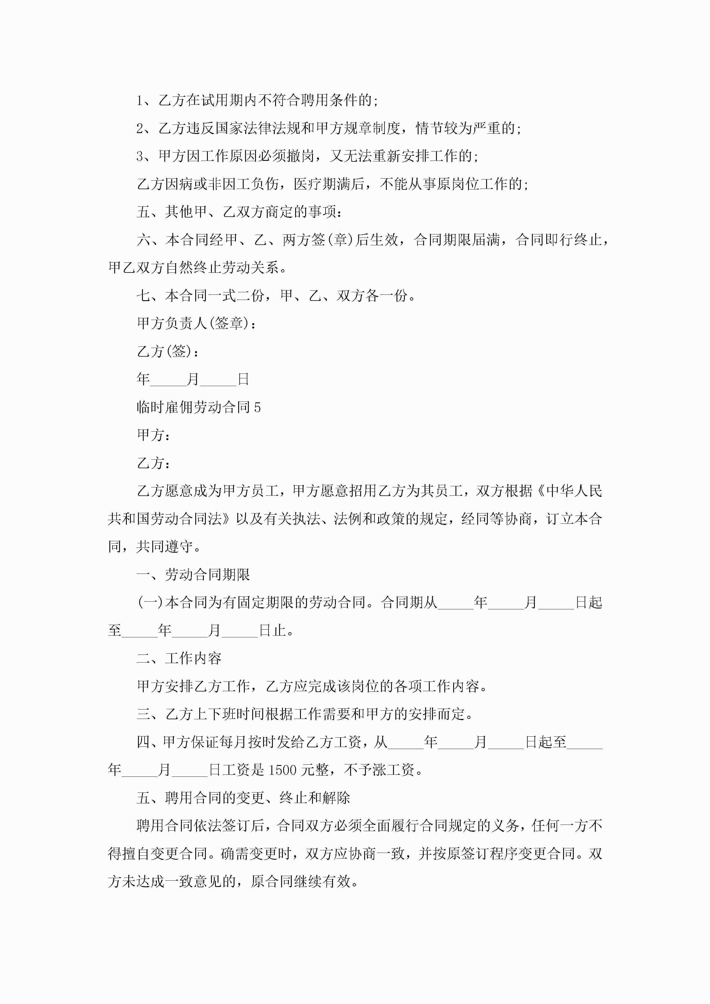 临时雇佣劳动合同5篇jugei3月23日 01:45发布关注189 临时雇佣劳动合同5篇此内容为付费资源,请付费后查看¥10.9 单篇文档限时特惠¥15个人会员开通企业会员开通立即下载无需登陆!可直接快捷下载单个模板付费资源© 版权声明THE ENDWord模板# 实用文档# 实用模板# 合同模板# 劳动合同 如有问题,可点击最底部“联系我们”联系客服 分享QQ空间微博QQ好友海报分享复制链接收藏