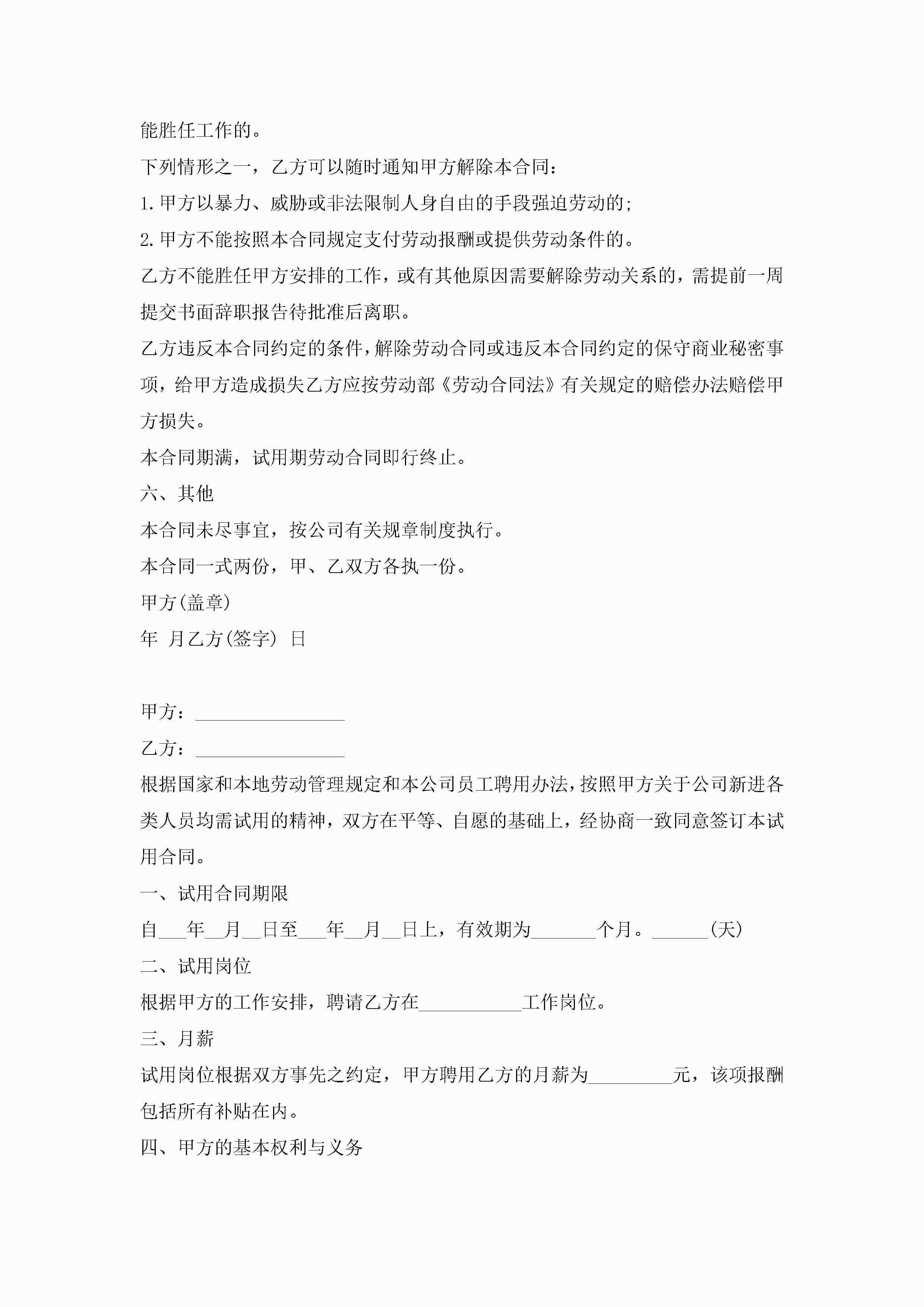 试用期转正劳动合同5篇jugei3月23日 01:45发布关注186 试用期转正劳动合同5篇此内容为付费资源,请付费后查看¥10.9 单篇文档限时特惠¥15个人会员开通企业会员开通立即下载无需登陆!可直接快捷下载单个模板付费资源© 版权声明THE ENDWord模板# 实用文档# 实用模板# 合同模板# 劳动合同 如有问题,可点击最底部“联系我们”联系客服 分享QQ空间微博QQ好友海报分享复制链接收藏