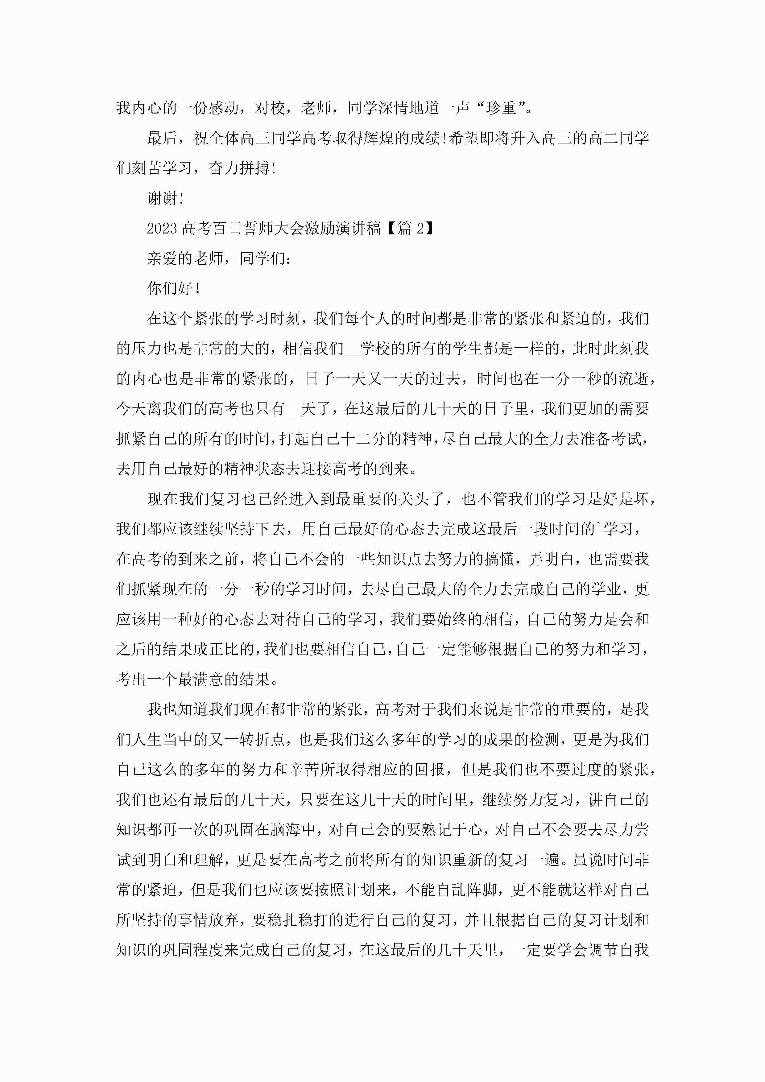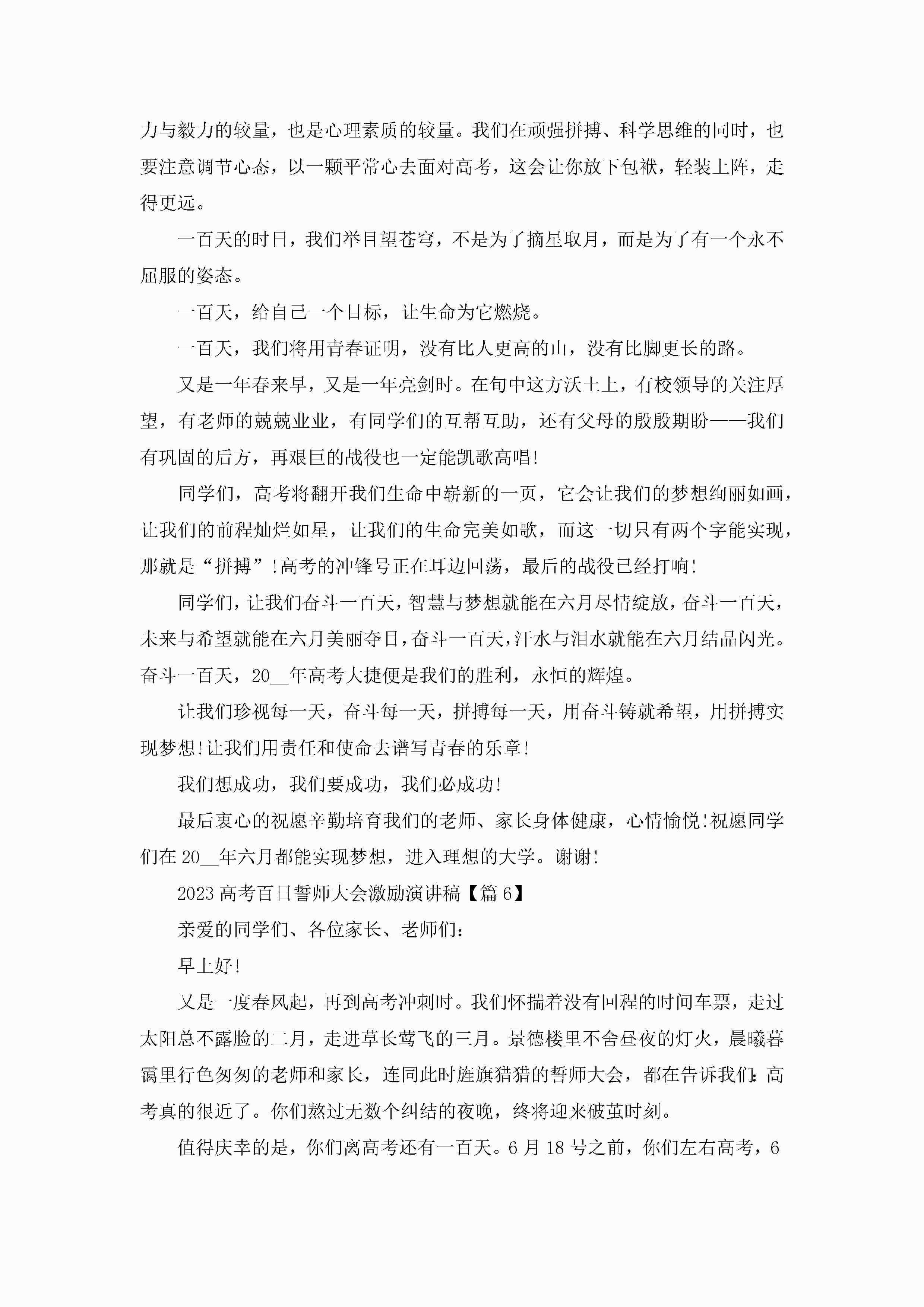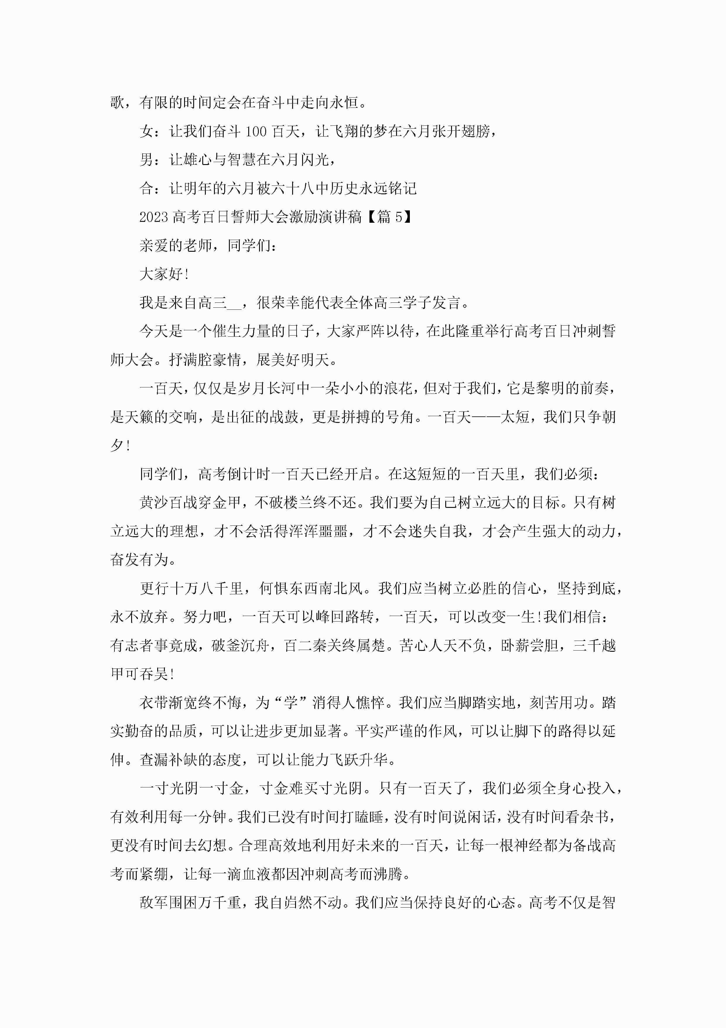 2023高考百日誓师大会激励演讲稿精选【12篇】jugei3月23日 01:45发布关注257 2023高考百日誓师大会激励演讲稿精选【12篇】此内容为付费资源,请付费后查看¥10.9 单篇文档限时特惠¥15个人会员开通企业会员开通立即下载无需登陆!可直接快捷下载单个模板付费资源© 版权声明THE ENDWord模板# 实用文档# 演讲稿# 经典演讲稿# 实用写作# 2023高考百日誓师大会激励演讲稿12篇 如有问题,可点击最底部“联系我们”联系客服 分享QQ空间微博QQ好友海报分享复制链接收藏