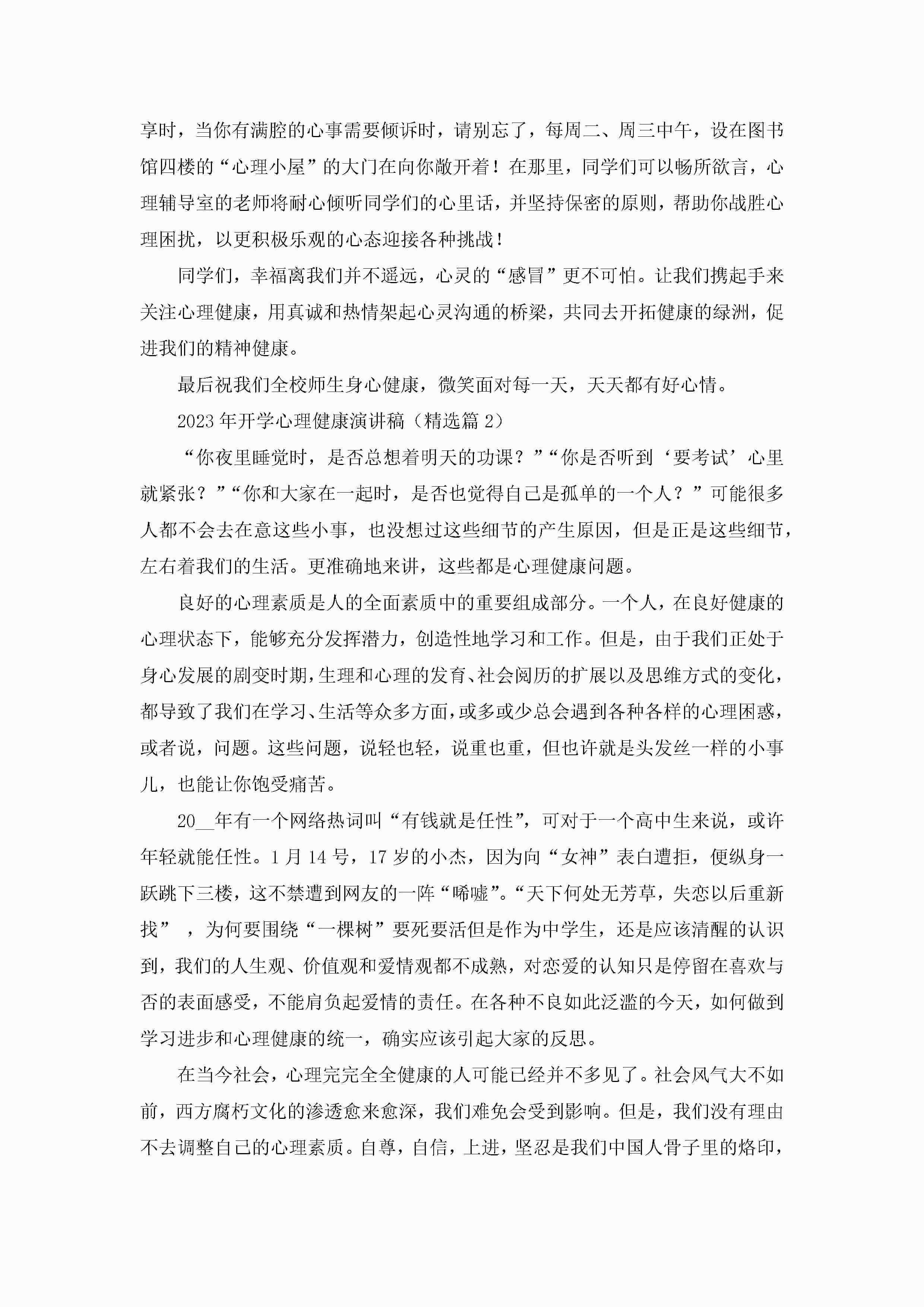 2023年开学心理健康演讲稿5篇jugei3月23日 01:45发布关注311 2023年开学心理健康演讲稿5篇此内容为付费资源,请付费后查看¥10.9 单篇文档限时特惠¥15个人会员开通企业会员开通立即下载无需登陆!可直接快捷下载单个模板付费资源© 版权声明THE ENDWord模板# 实用文档# 演讲稿# 经典演讲稿# 实用写作# 2023年开学心理健康演讲稿 如有问题,可点击最底部“联系我们”联系客服 分享QQ空间微博QQ好友海报分享复制链接收藏