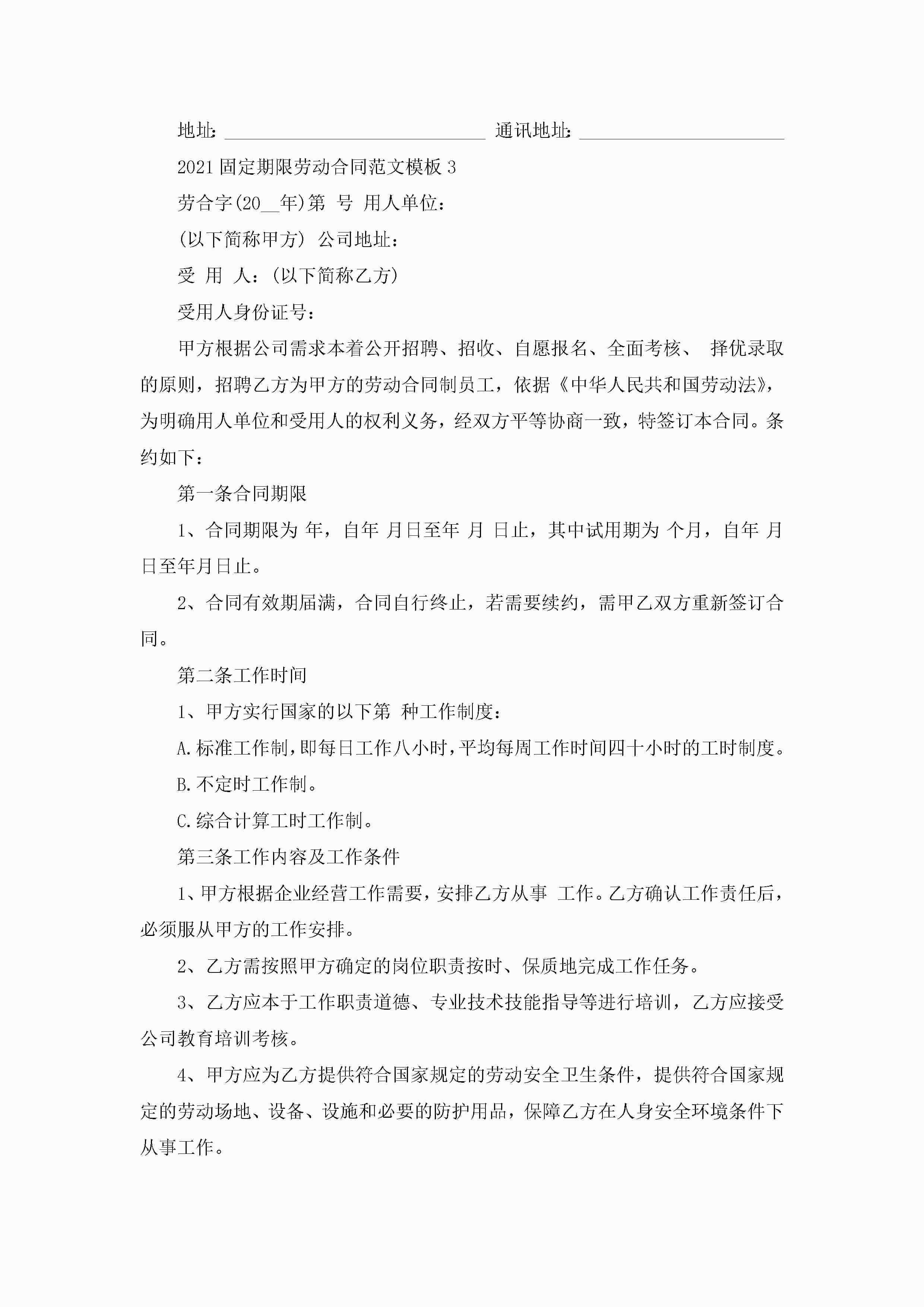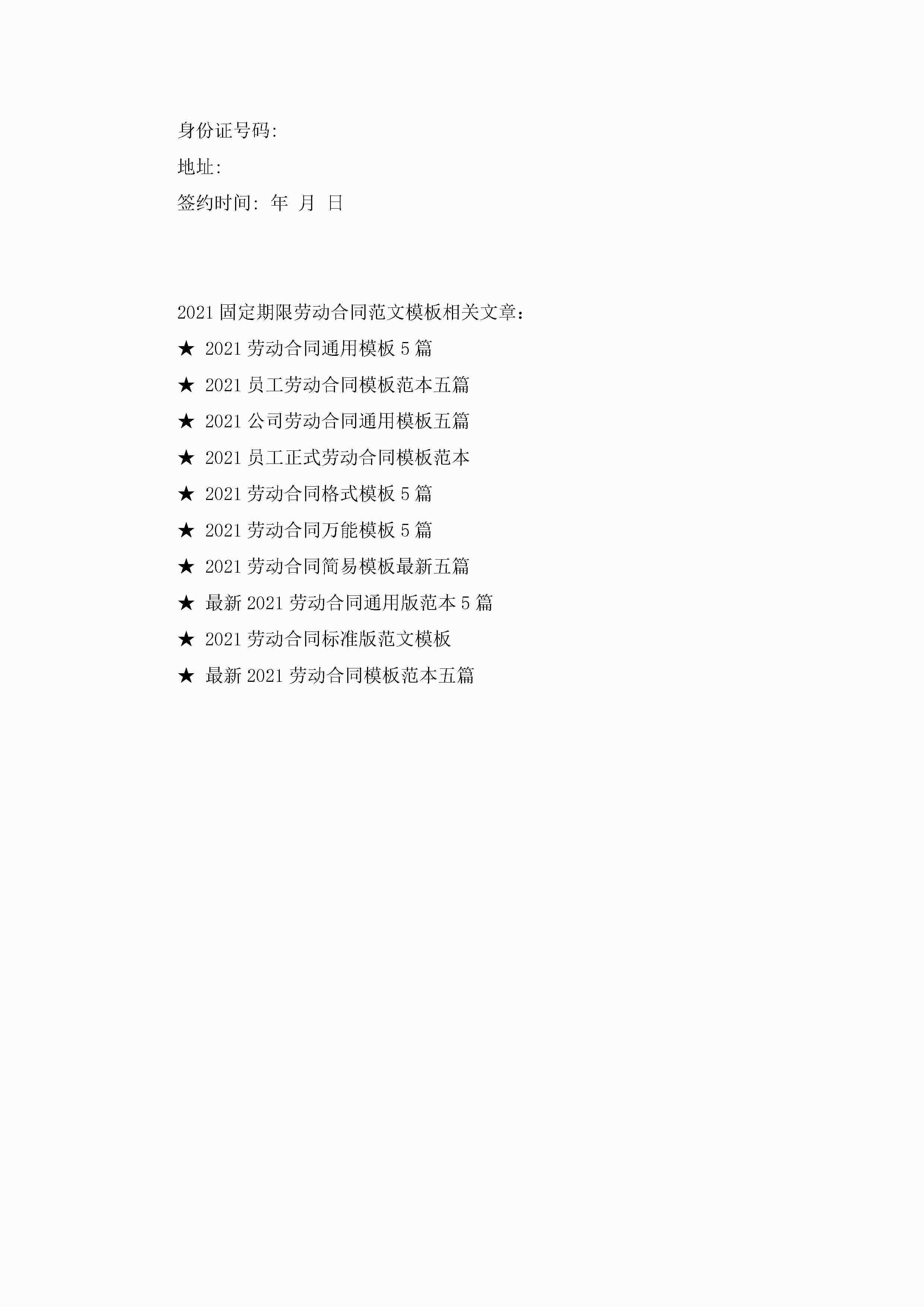 2022固定期限劳动合同范文模板【3篇】jugei3月23日 01:45发布关注187 2022固定期限劳动合同范文模板【3篇】此内容为付费资源,请付费后查看¥10.9 单篇文档限时特惠¥15个人会员开通企业会员开通立即下载无需登陆!可直接快捷下载单个模板付费资源© 版权声明THE ENDWord模板# 实用文档# 实用模板# 合同模板# 劳动合同 如有问题,可点击最底部“联系我们”联系客服 分享QQ空间微博QQ好友海报分享复制链接收藏