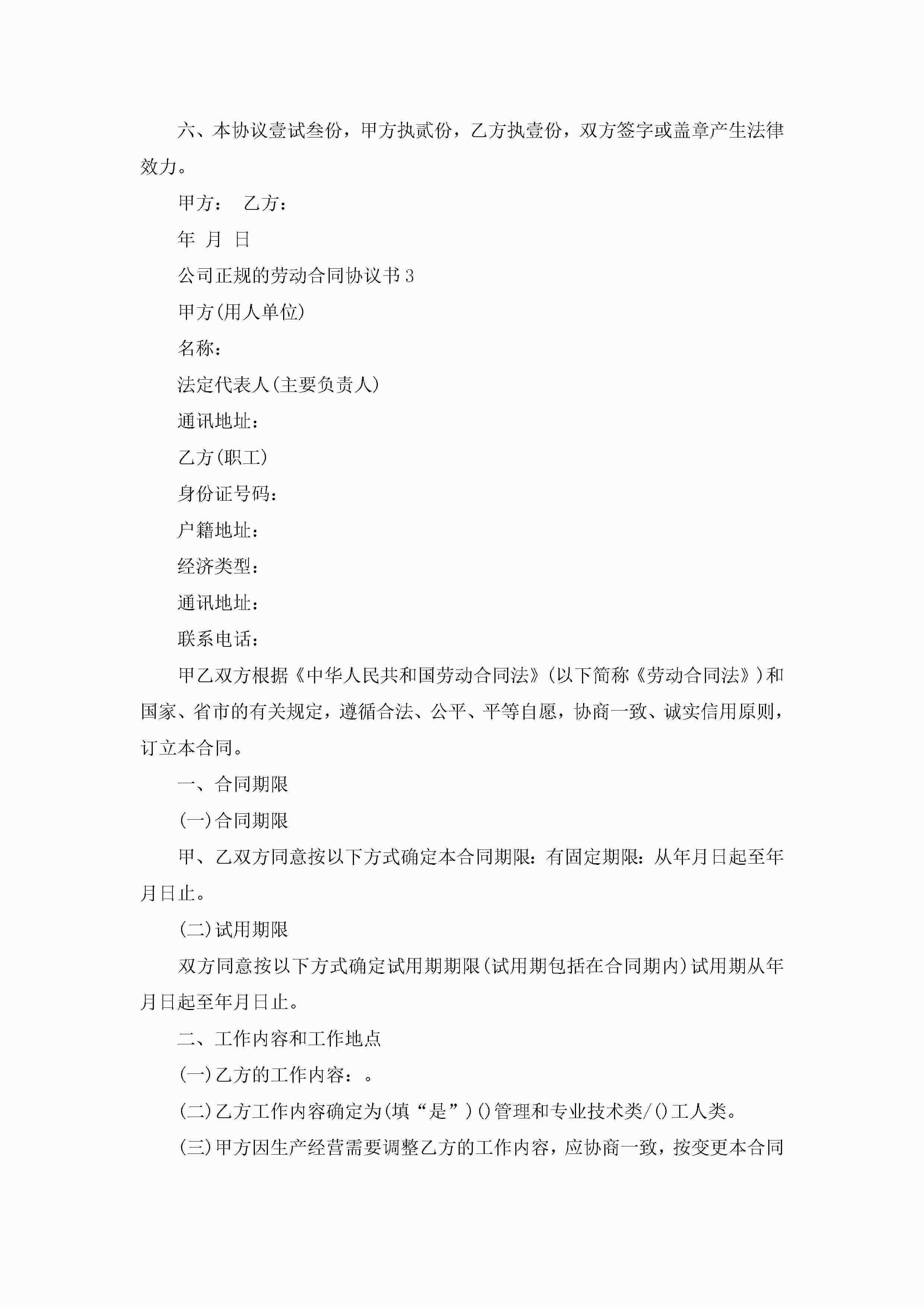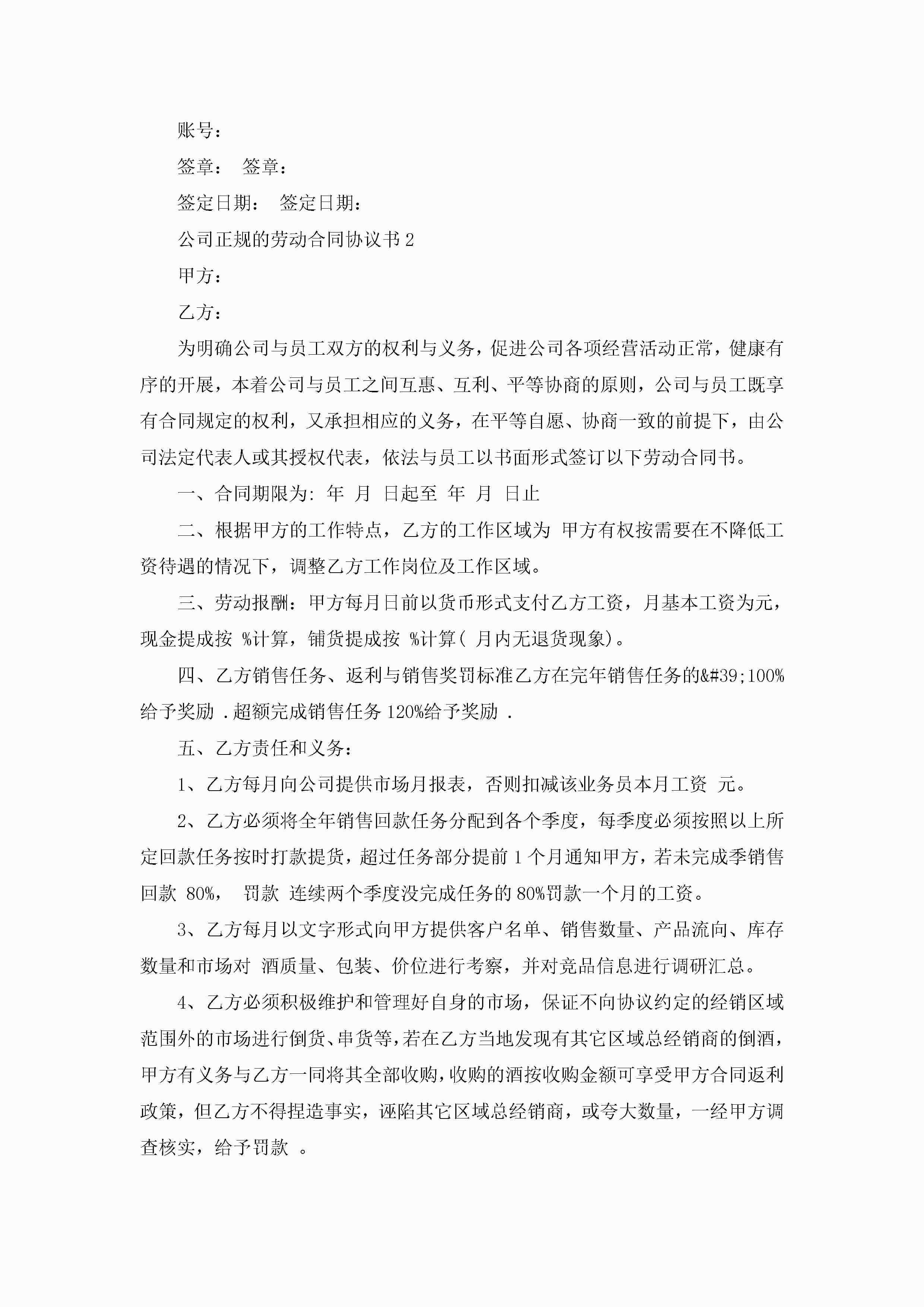 公司正规的劳动合同协议书模板jugei3月23日 01:45发布关注187 公司正规的劳动合同协议书模板此内容为付费资源,请付费后查看¥10.9 单篇文档限时特惠¥15个人会员开通企业会员开通立即下载无需登陆!可直接快捷下载单个模板付费资源© 版权声明THE ENDWord模板# 实用文档# 实用模板# 合同模板# 劳动合同 如有问题,可点击最底部“联系我们”联系客服 分享QQ空间微博QQ好友海报分享复制链接收藏