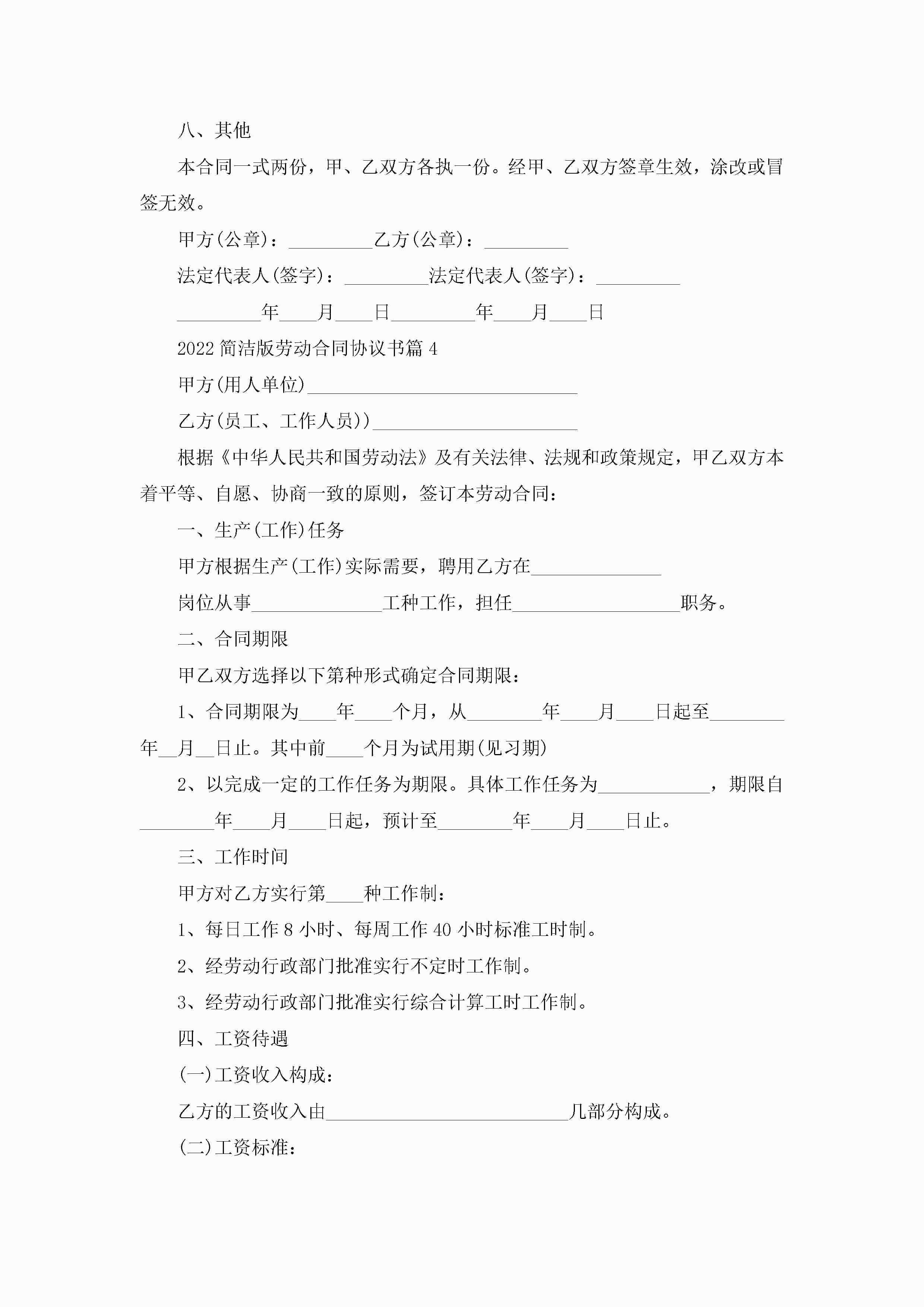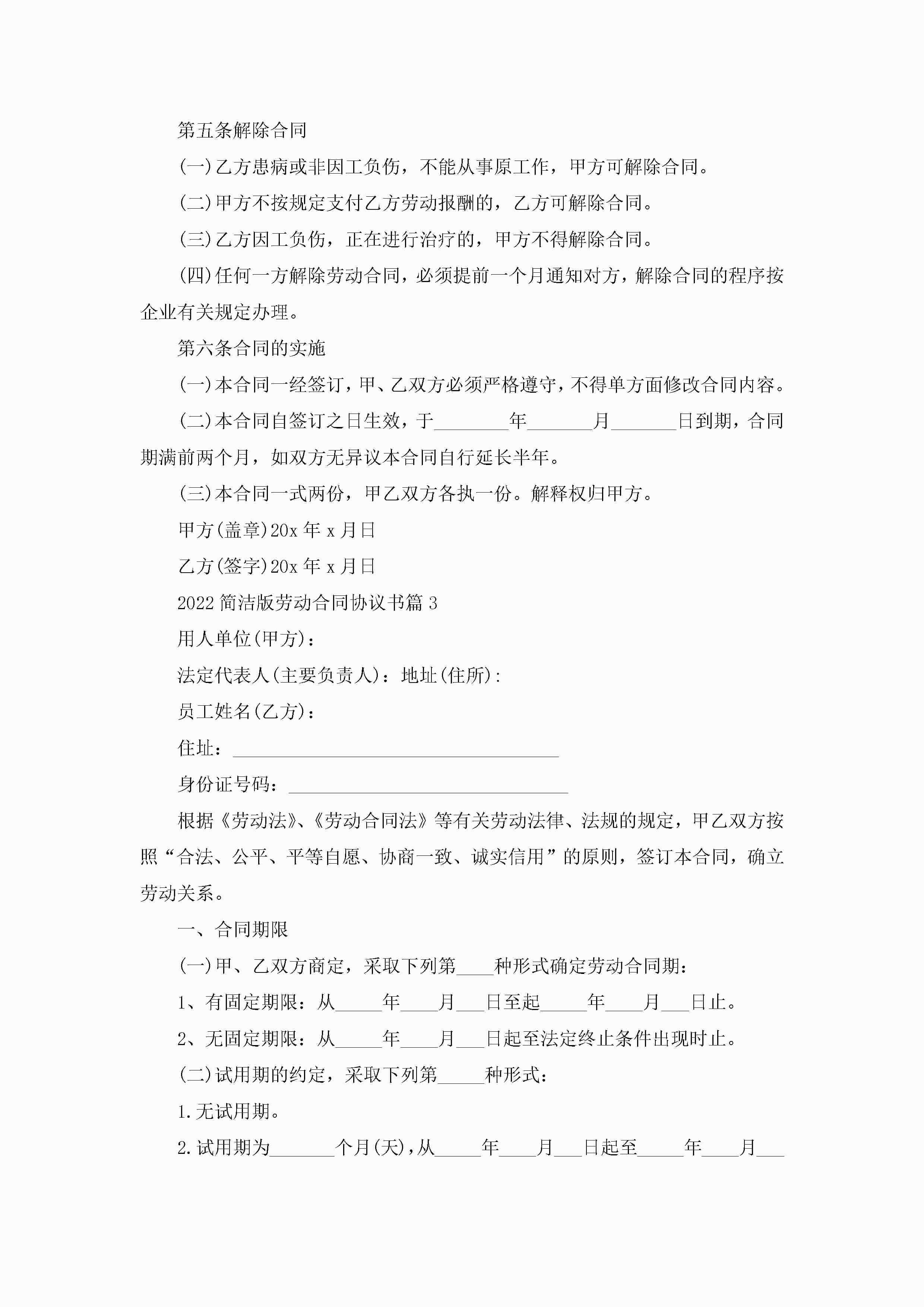 2022简洁版劳动合同协议书(十篇大全)jugei3月23日 01:45发布关注229 2022简洁版劳动合同协议书(十篇大全)此内容为付费资源,请付费后查看¥10.9 单篇文档限时特惠¥15个人会员开通企业会员开通立即下载无需登陆!可直接快捷下载单个模板付费资源© 版权声明THE ENDWord模板# 实用文档# 实用模板# 合同模板# 劳动合同 如有问题,可点击最底部“联系我们”联系客服 分享QQ空间微博QQ好友海报分享复制链接收藏