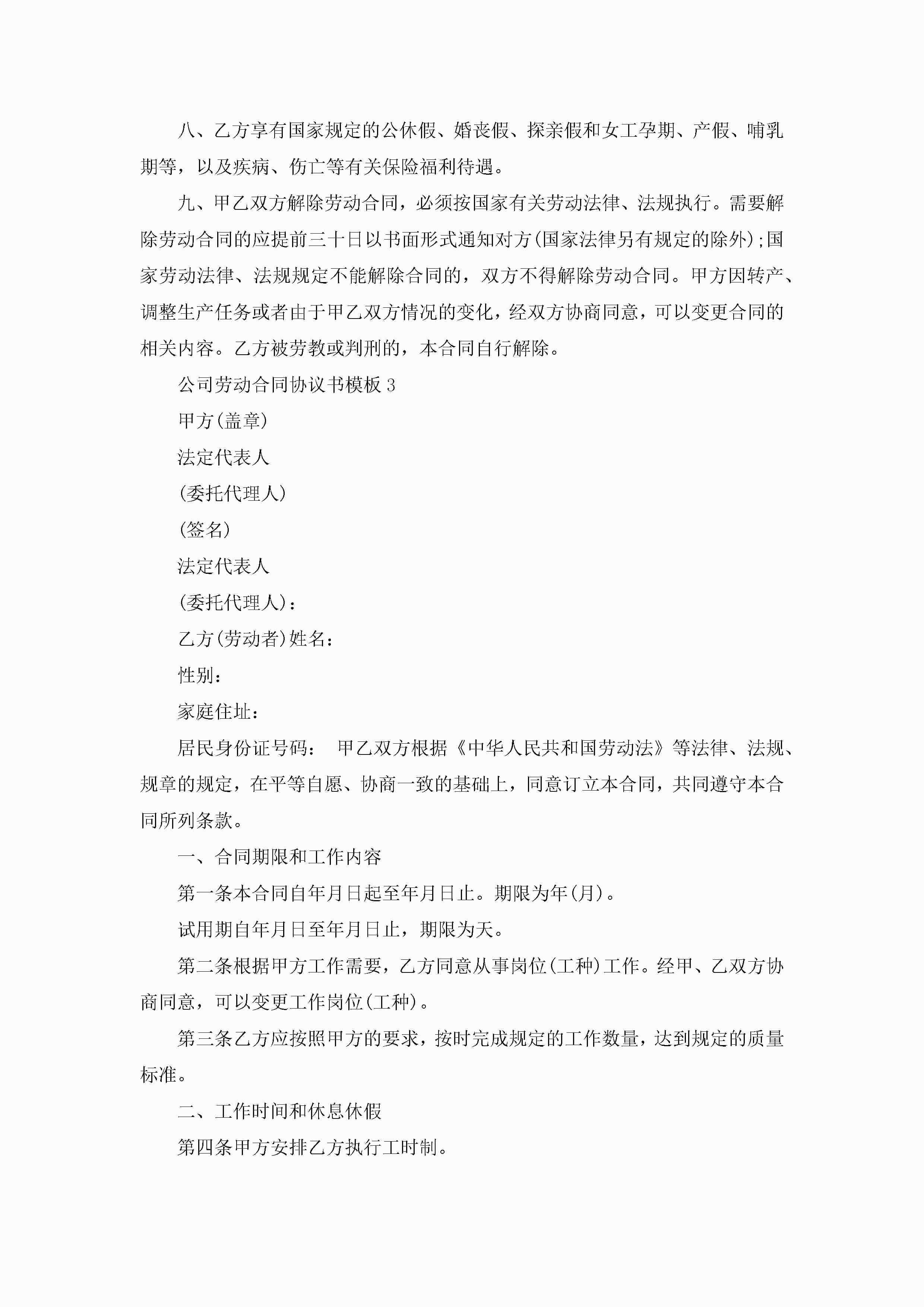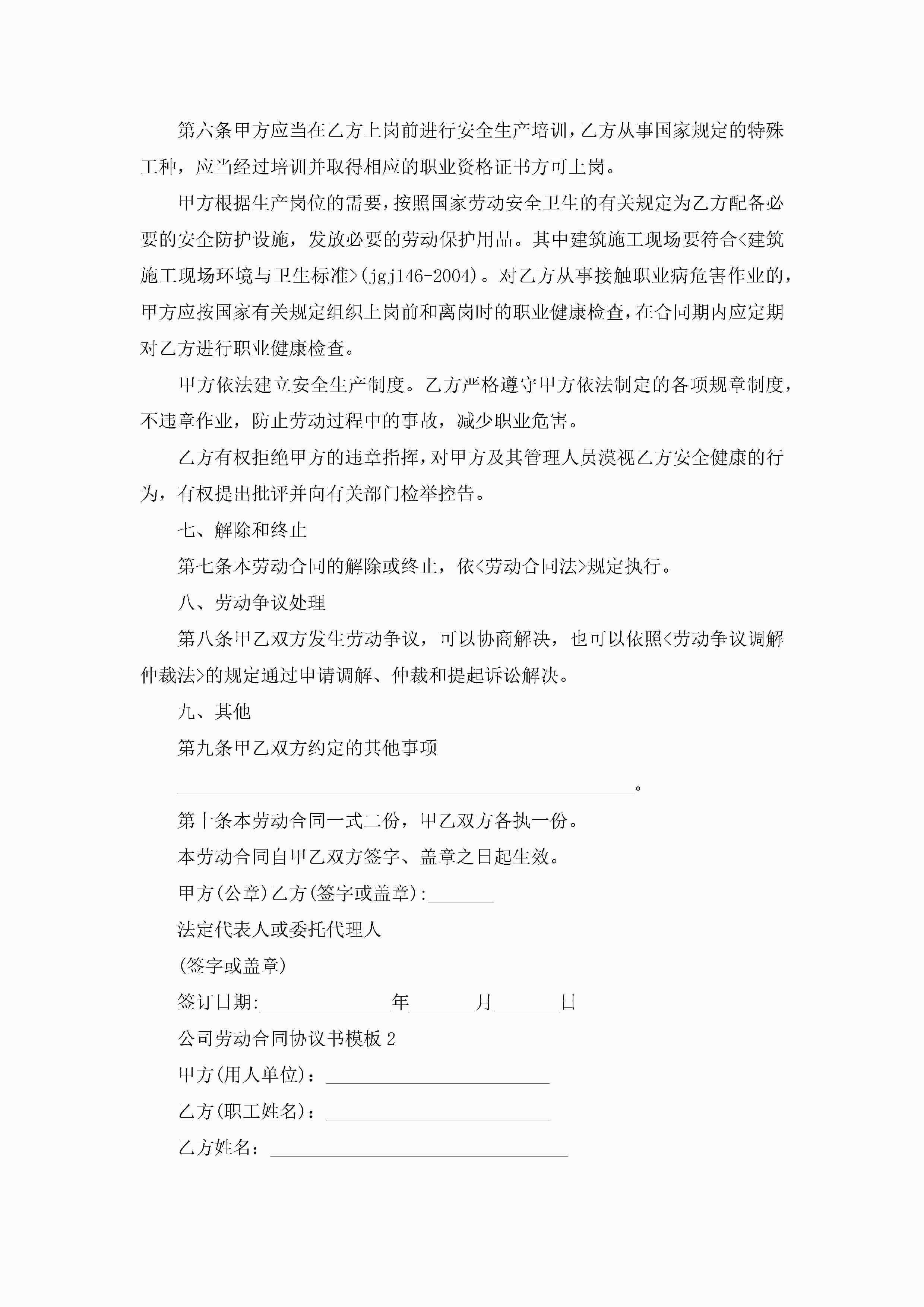 公司劳动合同协议书模板【3篇】jugei3月23日 01:45发布关注196 公司劳动合同协议书模板【3篇】此内容为付费资源,请付费后查看¥10.9 单篇文档限时特惠¥15个人会员开通企业会员开通立即下载无需登陆!可直接快捷下载单个模板付费资源© 版权声明THE ENDWord模板# 实用文档# 实用模板# 合同模板# 劳动合同 如有问题,可点击最底部“联系我们”联系客服 分享QQ空间微博QQ好友海报分享复制链接收藏