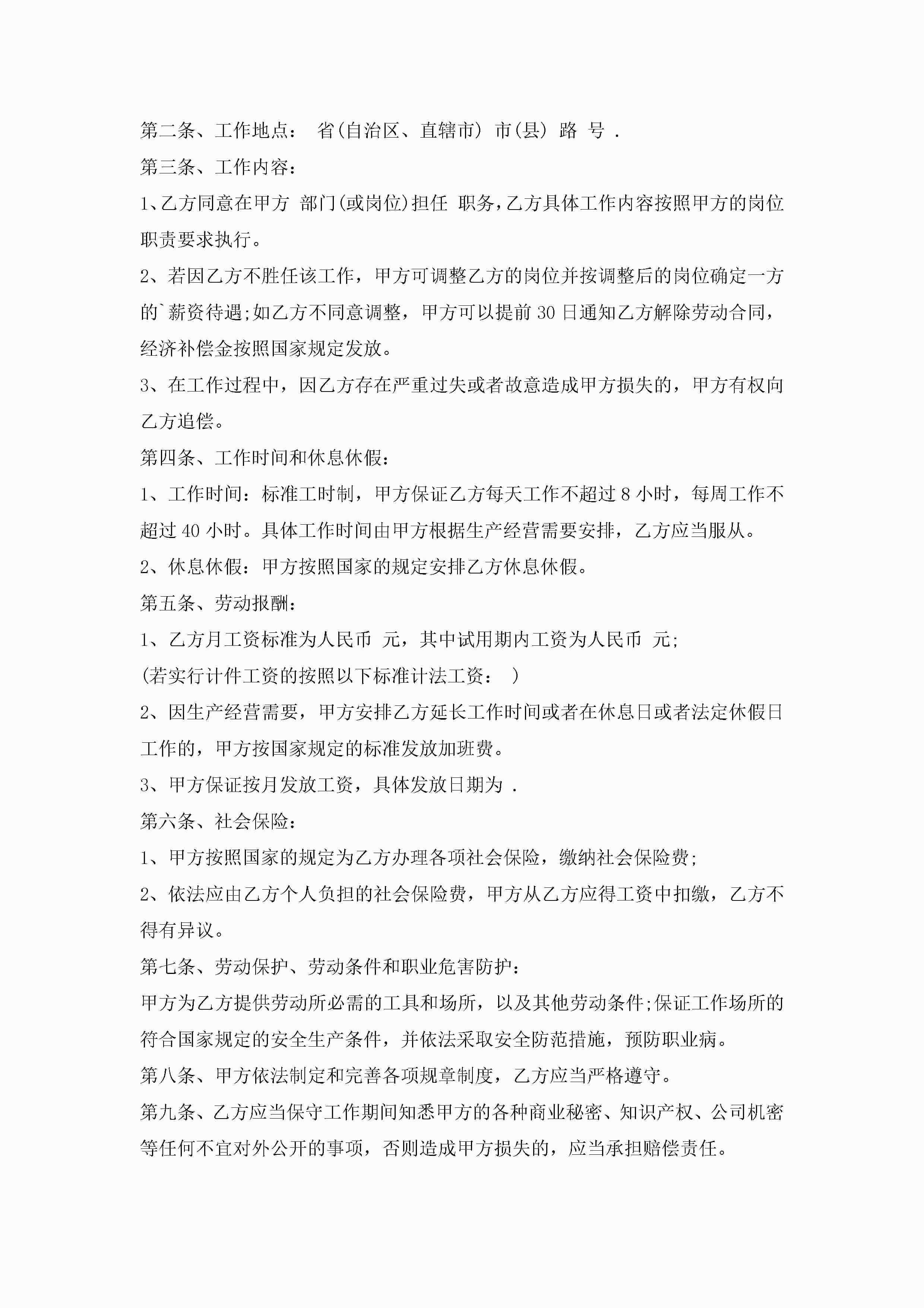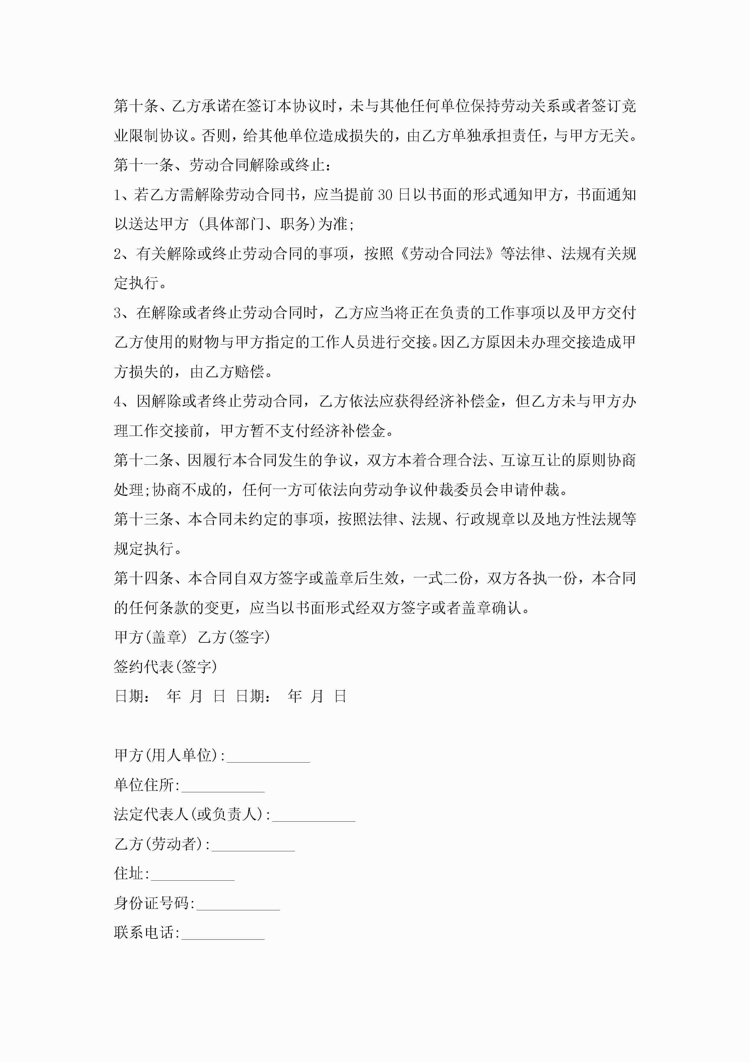 北京劳动合同协议模板【5篇】_北京个人劳动合同简单版jugei3月23日 01:45发布关注183 北京劳动合同协议模板【5篇】_北京个人劳动合同简单版此内容为付费资源,请付费后查看¥10.9 单篇文档限时特惠¥15个人会员开通企业会员开通立即下载无需登陆!可直接快捷下载单个模板付费资源© 版权声明THE ENDWord模板# 实用文档# 实用模板# 合同模板# 劳动合同 如有问题,可点击最底部“联系我们”联系客服 分享QQ空间微博QQ好友海报分享复制链接收藏