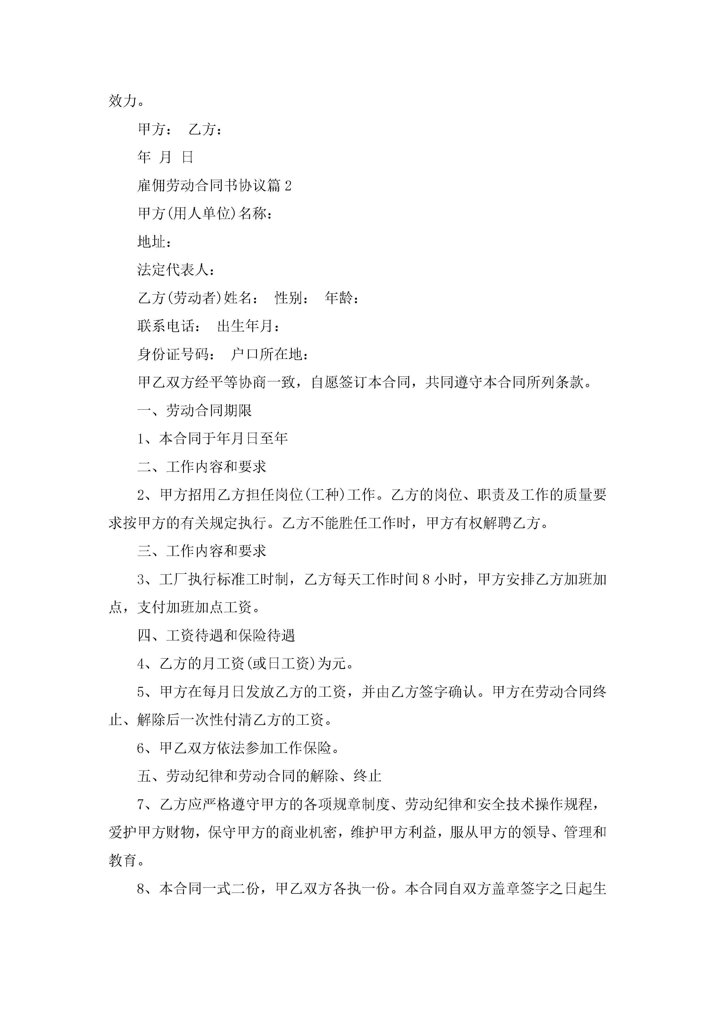 雇佣劳动合同书协议(十篇大全)jugei3月23日 01:45发布关注236 雇佣劳动合同书协议(十篇大全)此内容为付费资源,请付费后查看¥10.9 单篇文档限时特惠¥15个人会员开通企业会员开通立即下载无需登陆!可直接快捷下载单个模板付费资源© 版权声明THE ENDWord模板# 实用文档# 实用模板# 合同模板# 劳动合同 如有问题,可点击最底部“联系我们”联系客服 分享QQ空间微博QQ好友海报分享复制链接收藏