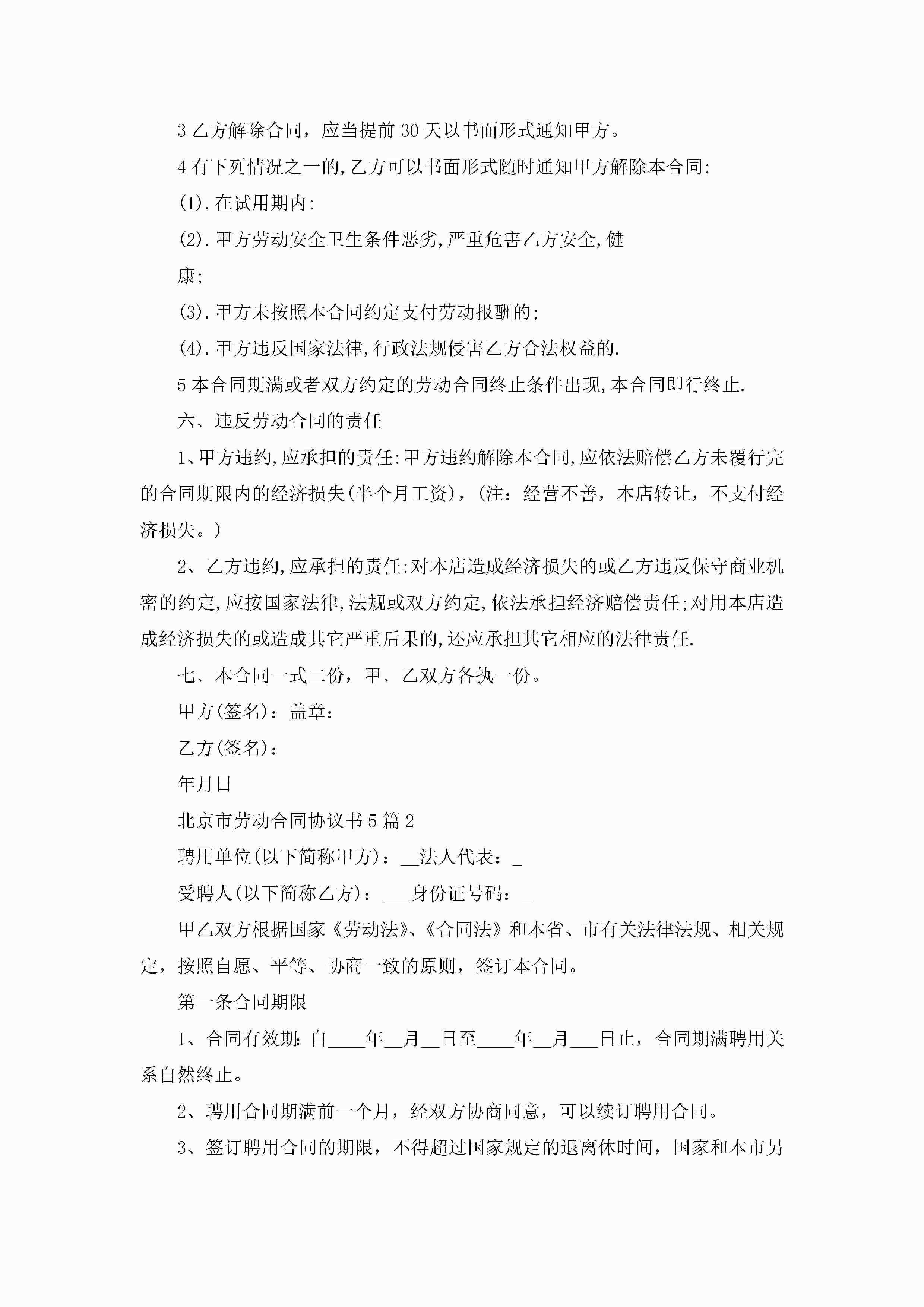 北京市劳动合同协议书模板【5篇】jugei3月23日 01:45发布关注269 北京市劳动合同协议书模板【5篇】此内容为付费资源,请付费后查看¥10.9 单篇文档限时特惠¥15个人会员开通企业会员开通立即下载无需登陆!可直接快捷下载单个模板付费资源© 版权声明THE ENDWord模板# 实用文档# 实用模板# 合同模板# 劳动合同 如有问题,可点击最底部“联系我们”联系客服 分享QQ空间微博QQ好友海报分享复制链接收藏