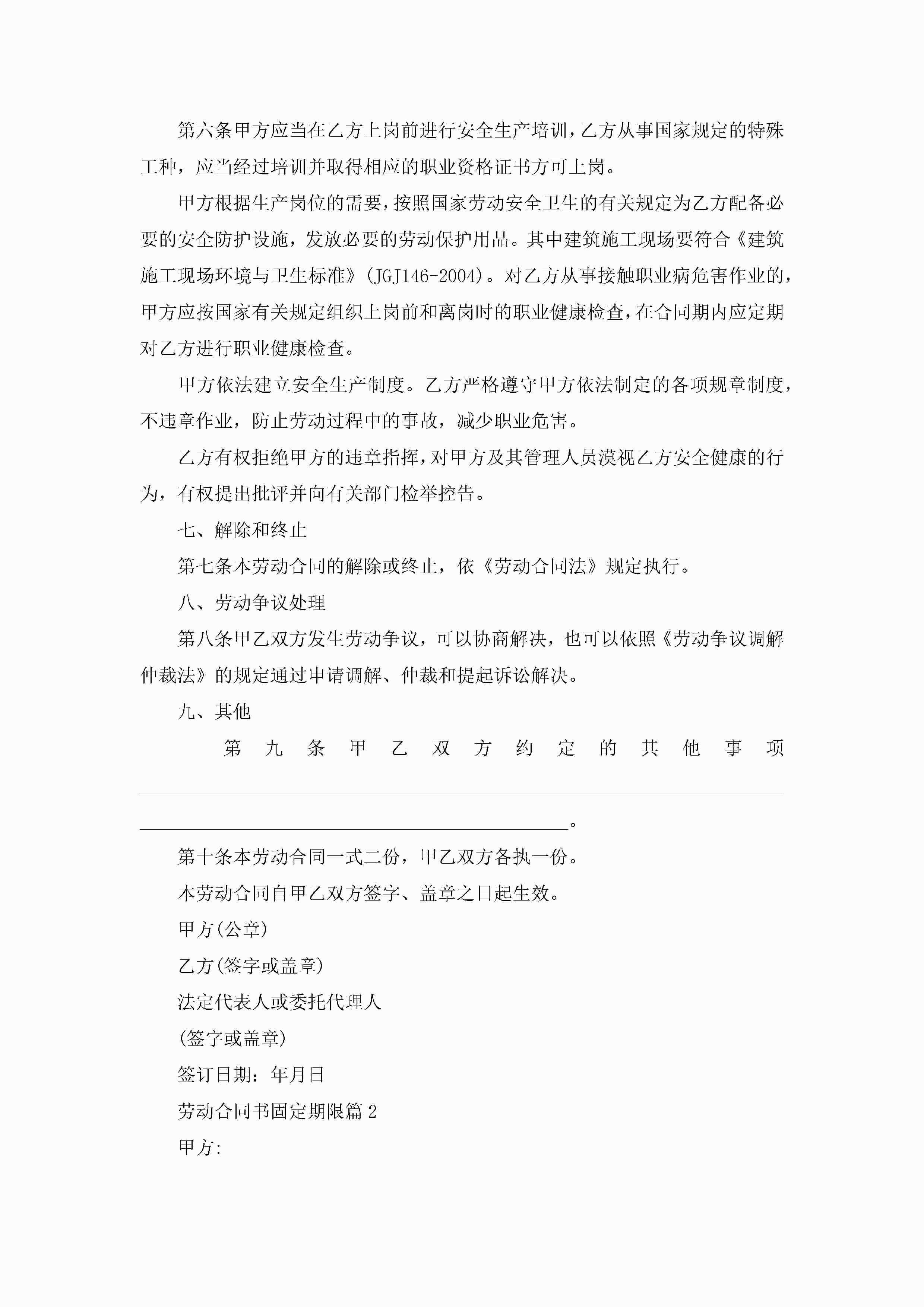 劳动合同书固定期限(最新十篇)jugei3月23日 01:45发布关注185 劳动合同书固定期限(最新十篇)此内容为付费资源,请付费后查看¥10.9 单篇文档限时特惠¥15个人会员开通企业会员开通立即下载无需登陆!可直接快捷下载单个模板付费资源© 版权声明THE ENDWord模板# 实用文档# 实用模板# 合同模板# 劳动合同 如有问题,可点击最底部“联系我们”联系客服 分享QQ空间微博QQ好友海报分享复制链接收藏