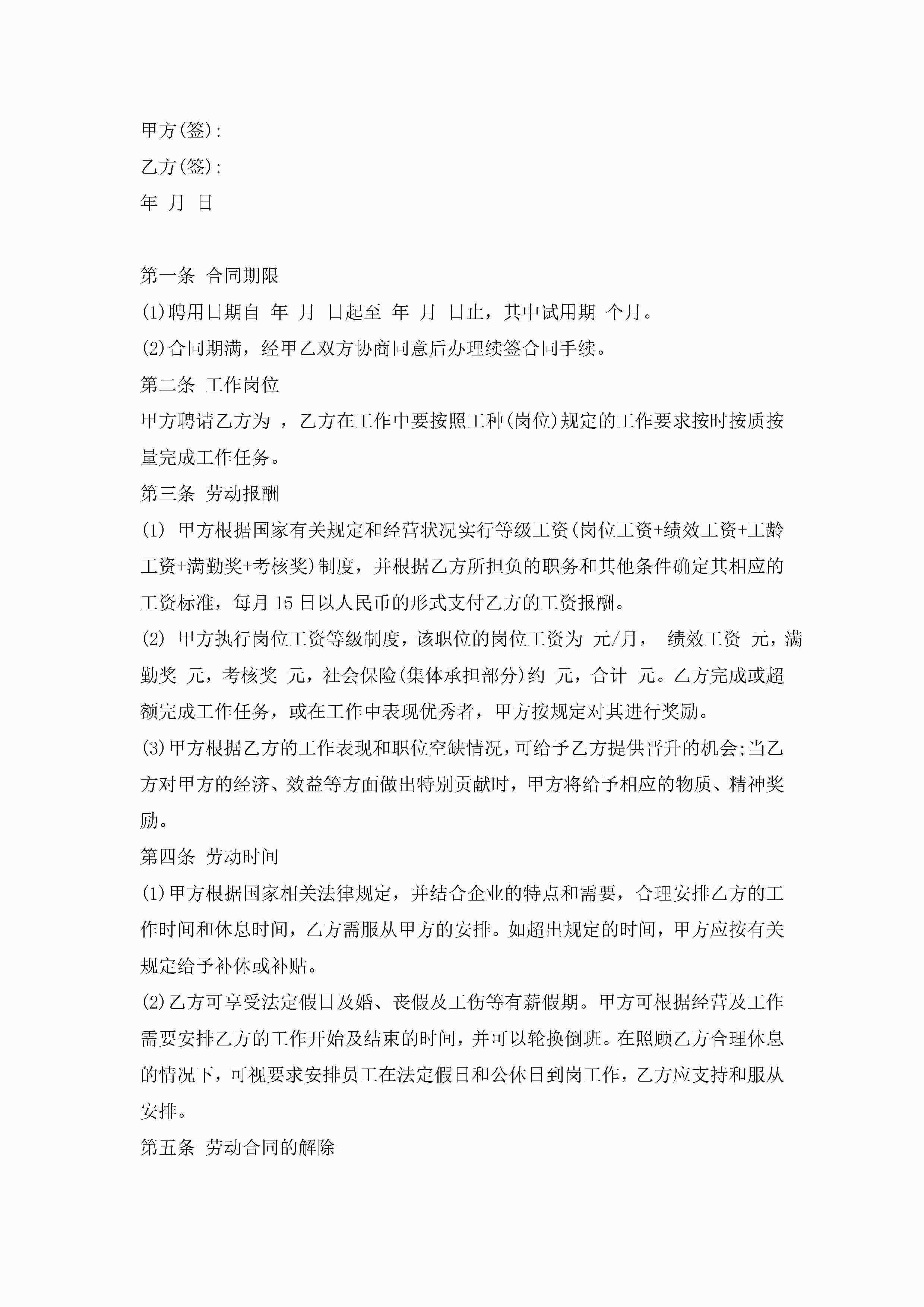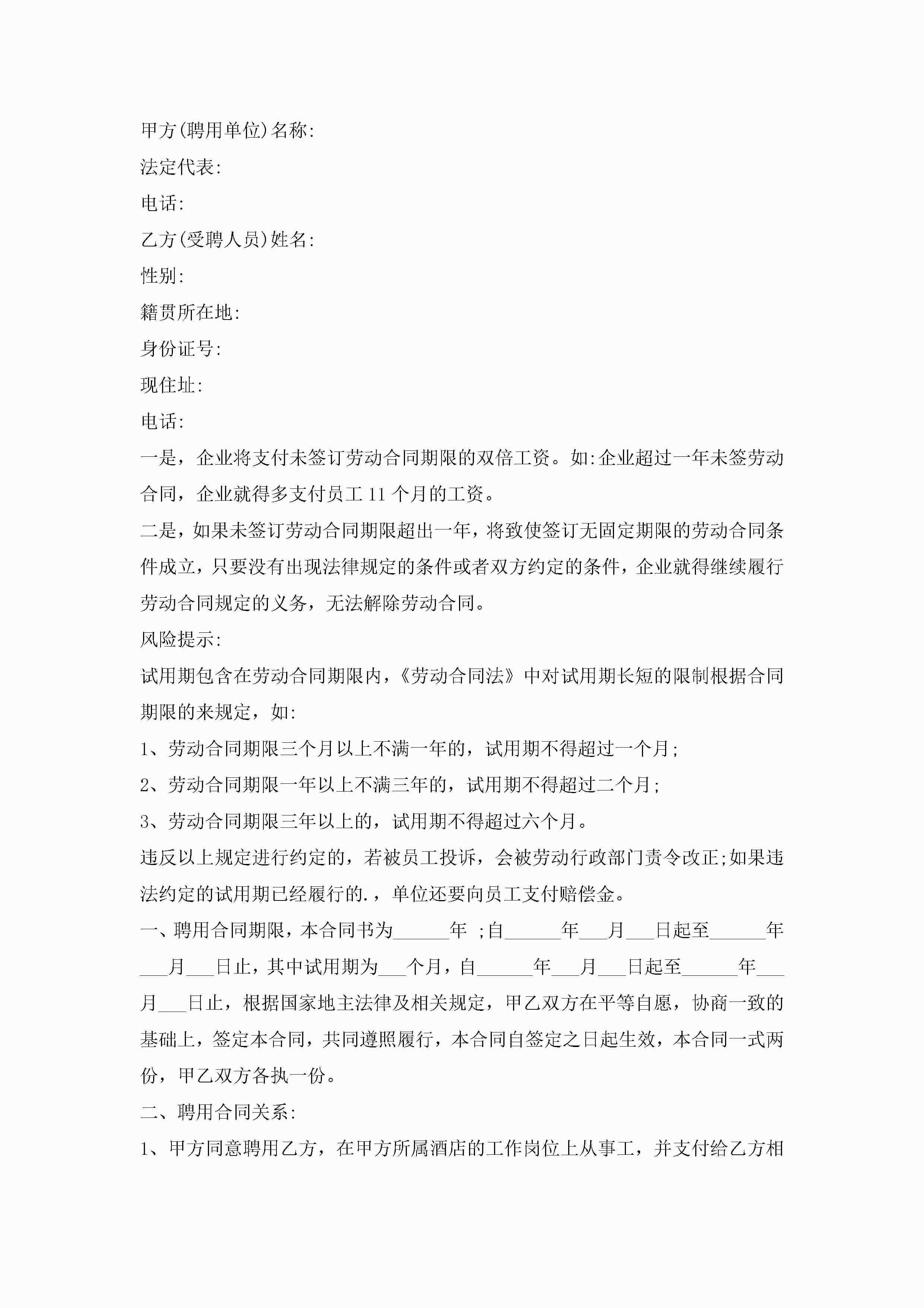 酒店用工的劳动合同模板5篇jugei3月23日 01:45发布关注189 酒店用工的劳动合同模板5篇此内容为付费资源,请付费后查看¥10.9 单篇文档限时特惠¥15个人会员开通企业会员开通立即下载无需登陆!可直接快捷下载单个模板付费资源© 版权声明THE ENDWord模板# 实用文档# 实用模板# 合同模板# 劳动合同 如有问题,可点击最底部“联系我们”联系客服 分享QQ空间微博QQ好友海报分享复制链接收藏