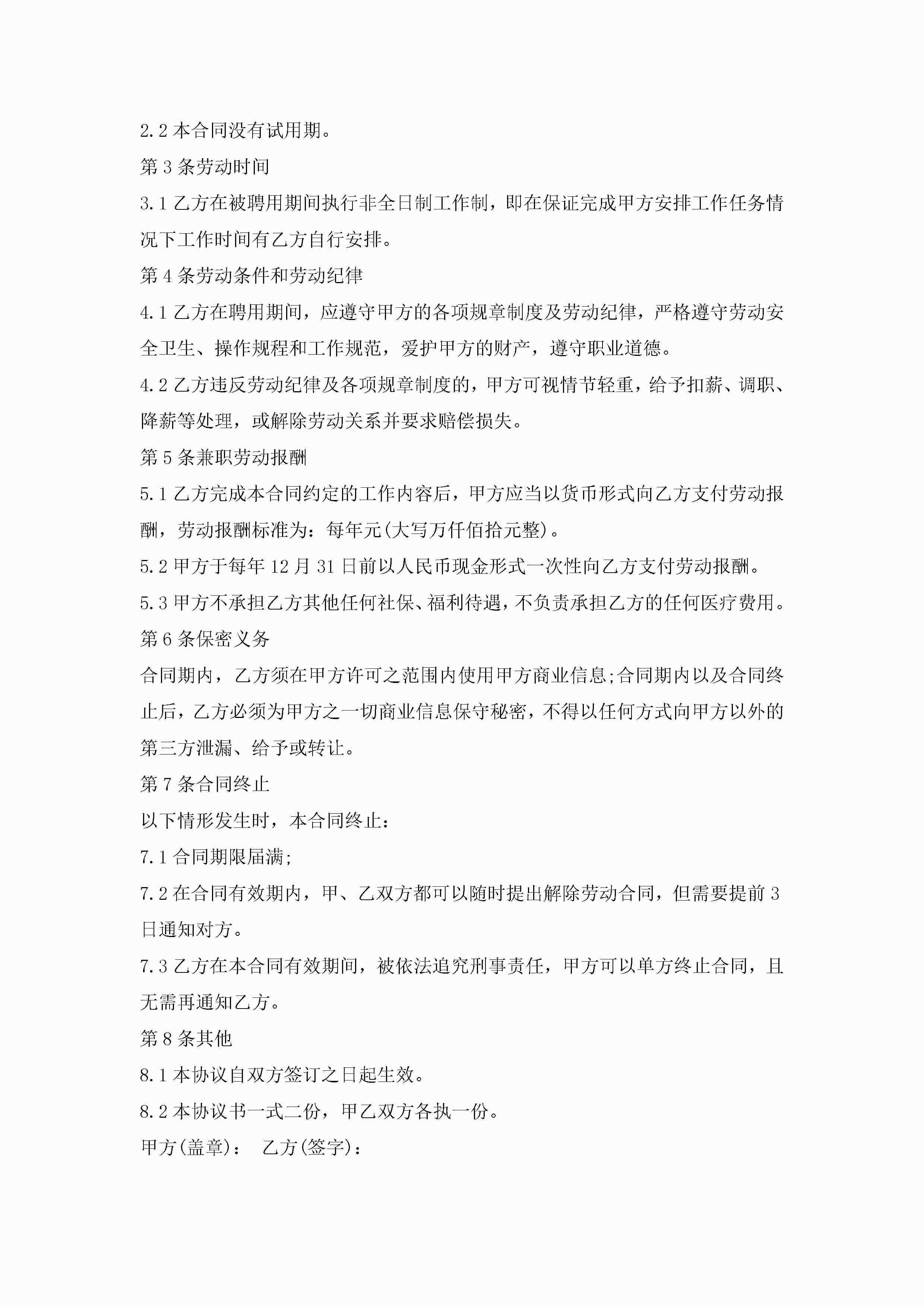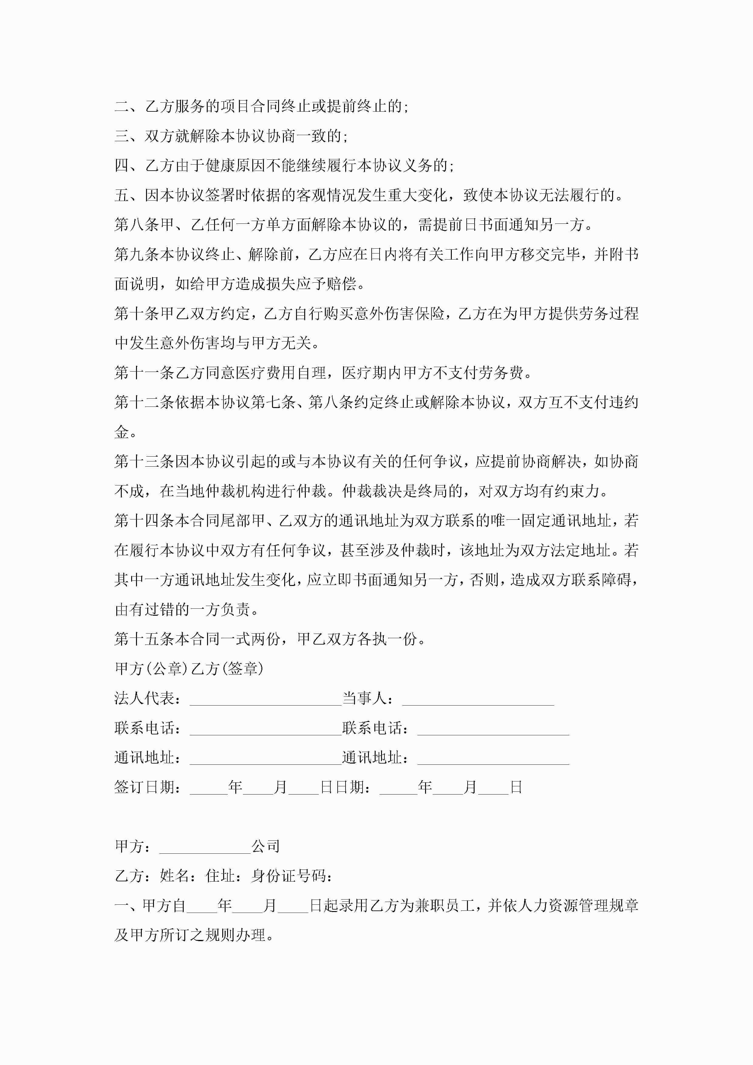 公司兼职劳动合同范本5篇jugei3月23日 01:45发布关注289 公司兼职劳动合同范本5篇此内容为付费资源,请付费后查看¥10.9 单篇文档限时特惠¥15个人会员开通企业会员开通立即下载无需登陆!可直接快捷下载单个模板付费资源© 版权声明THE ENDWord模板# 实用文档# 实用模板# 合同模板# 劳动合同 如有问题,可点击最底部“联系我们”联系客服 分享QQ空间微博QQ好友海报分享复制链接收藏