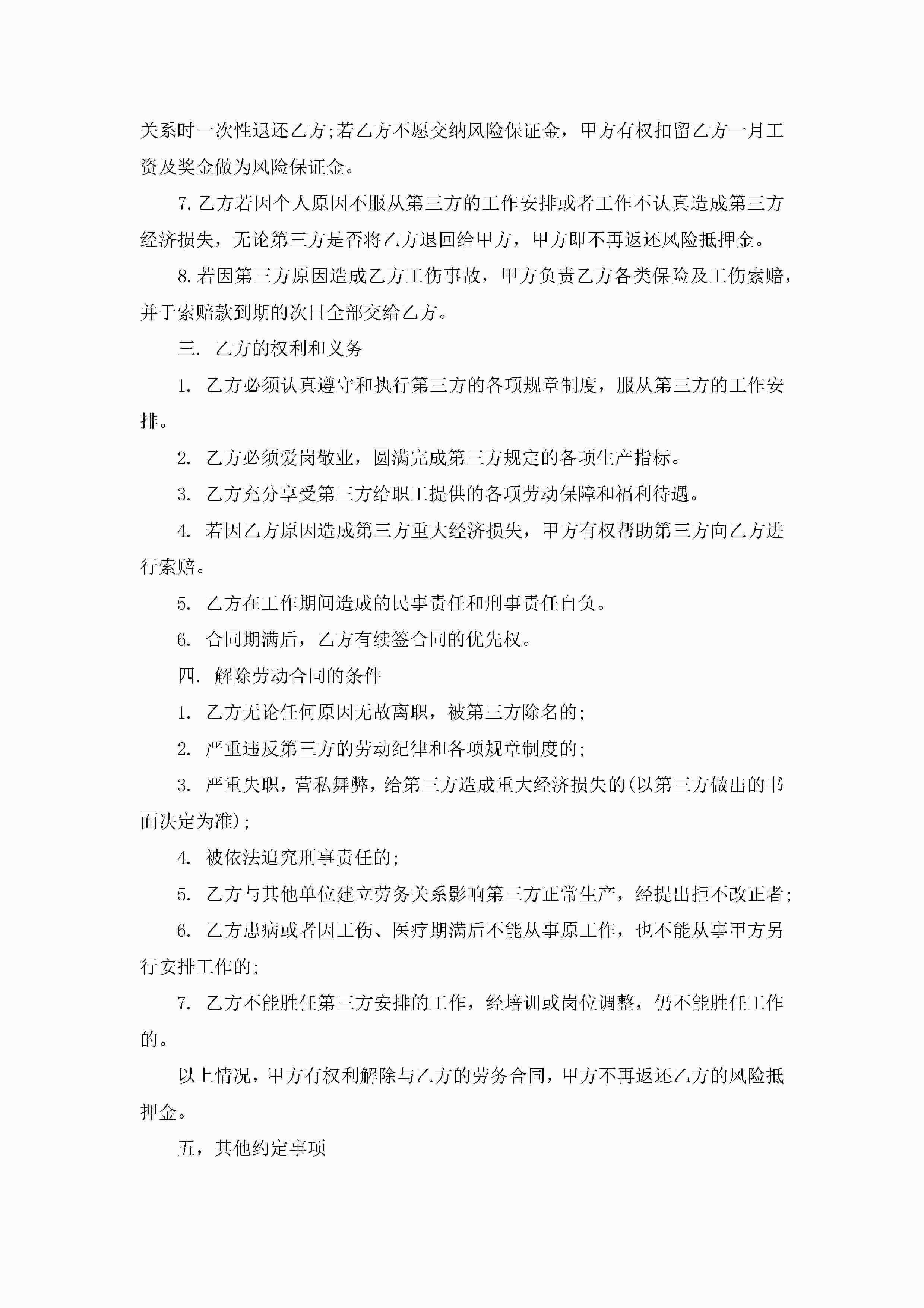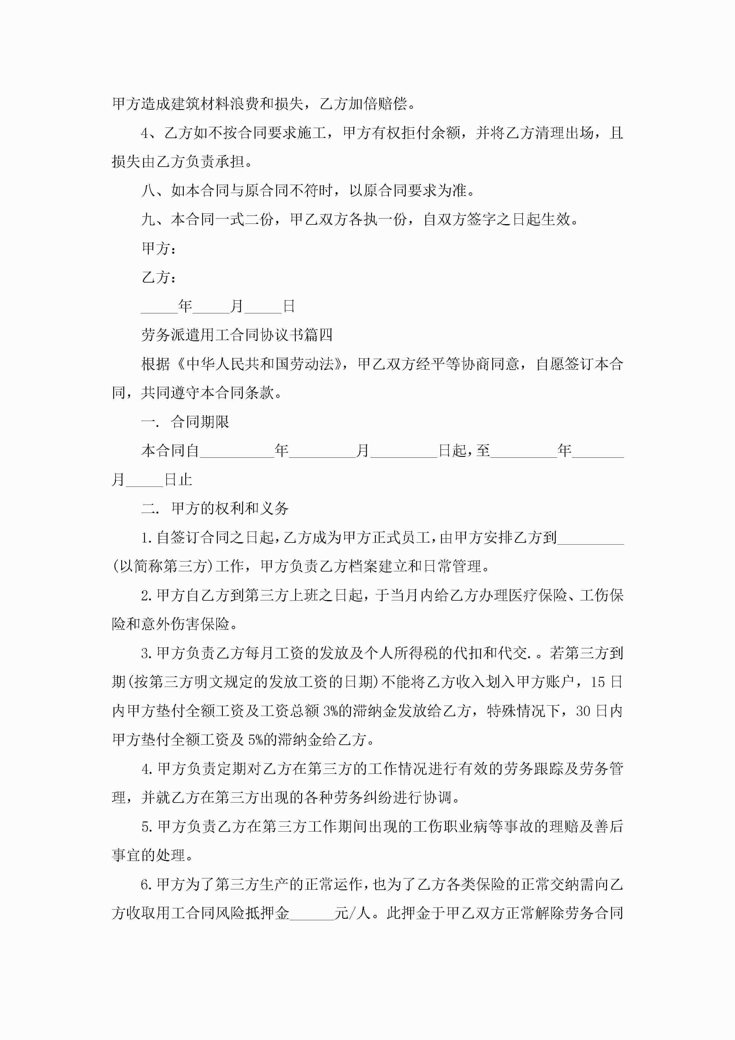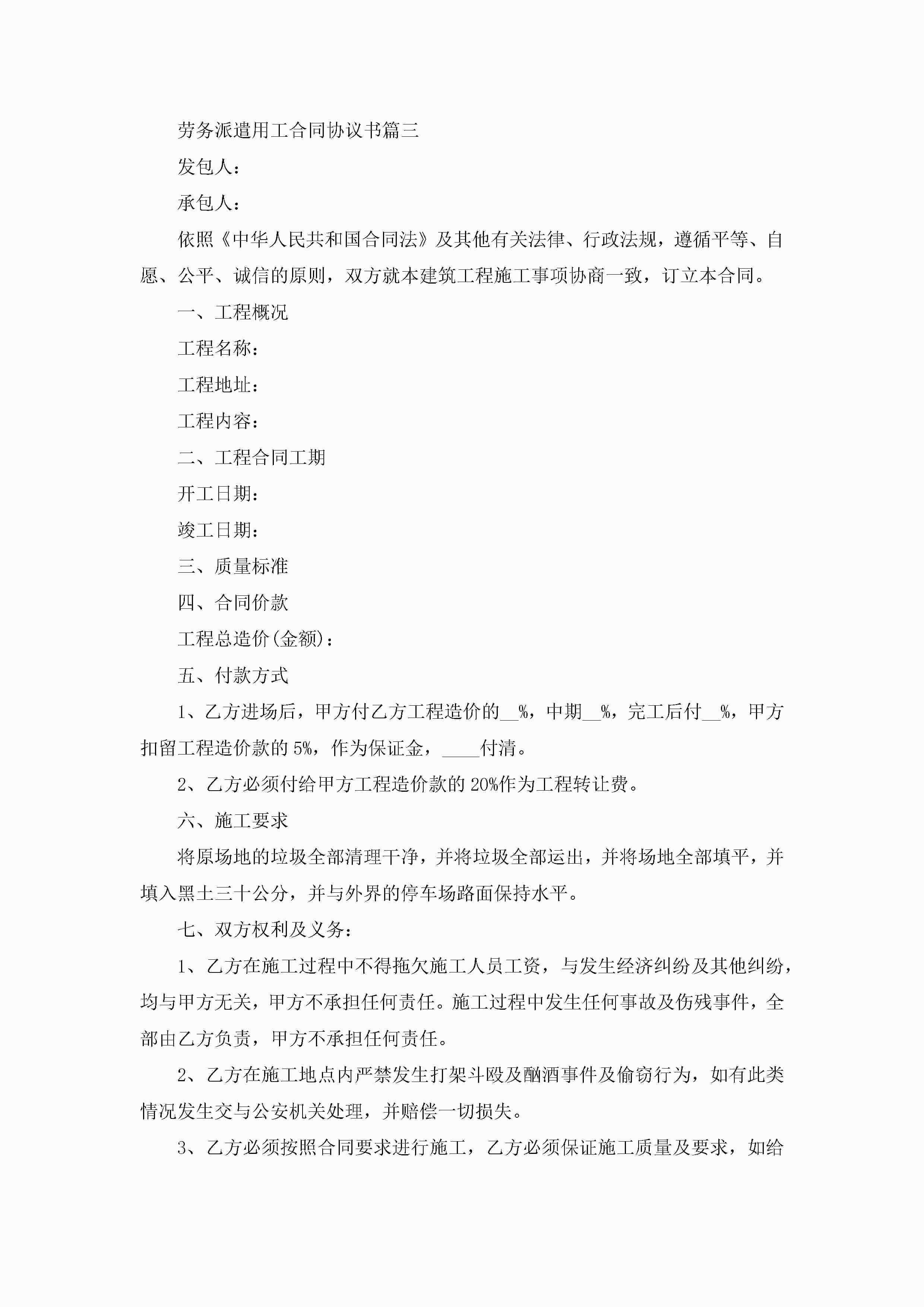 年劳务派遣用工合同协议书最新五篇jugei3月23日 01:45发布关注192 年劳务派遣用工合同协议书最新五篇此内容为付费资源,请付费后查看¥10.9 单篇文档限时特惠¥15个人会员开通企业会员开通立即下载无需登陆!可直接快捷下载单个模板付费资源© 版权声明THE ENDWord模板# 实用文档# 实用模板# 合同模板# 劳动合同 如有问题,可点击最底部“联系我们”联系客服 分享QQ空间微博QQ好友海报分享复制链接收藏