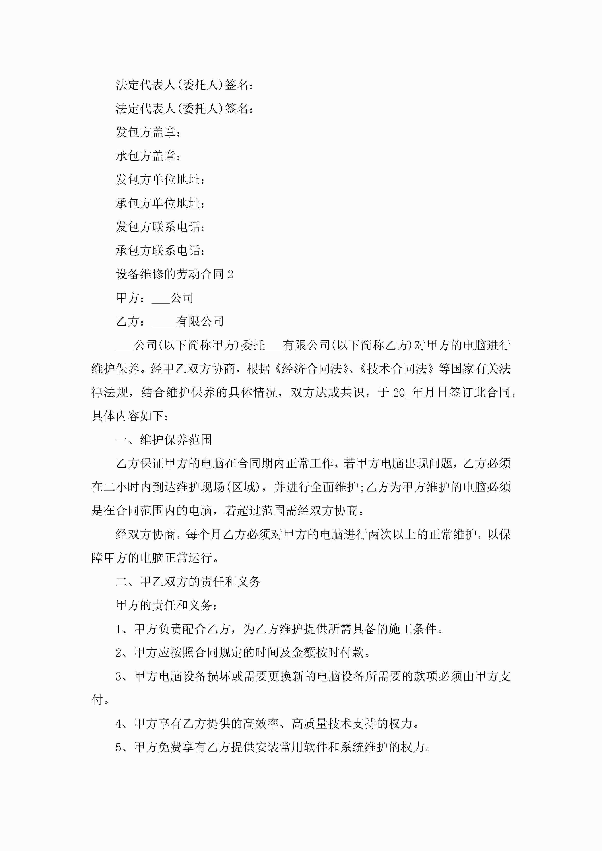 设备维修的劳动合同模板5篇jugei3月23日 01:45发布关注252 设备维修的劳动合同模板5篇此内容为付费资源,请付费后查看¥10.9 单篇文档限时特惠¥15个人会员开通企业会员开通立即下载无需登陆!可直接快捷下载单个模板付费资源© 版权声明THE ENDWord模板# 实用文档# 实用模板# 合同模板# 劳动合同 如有问题,可点击最底部“联系我们”联系客服 分享QQ空间微博QQ好友海报分享复制链接收藏