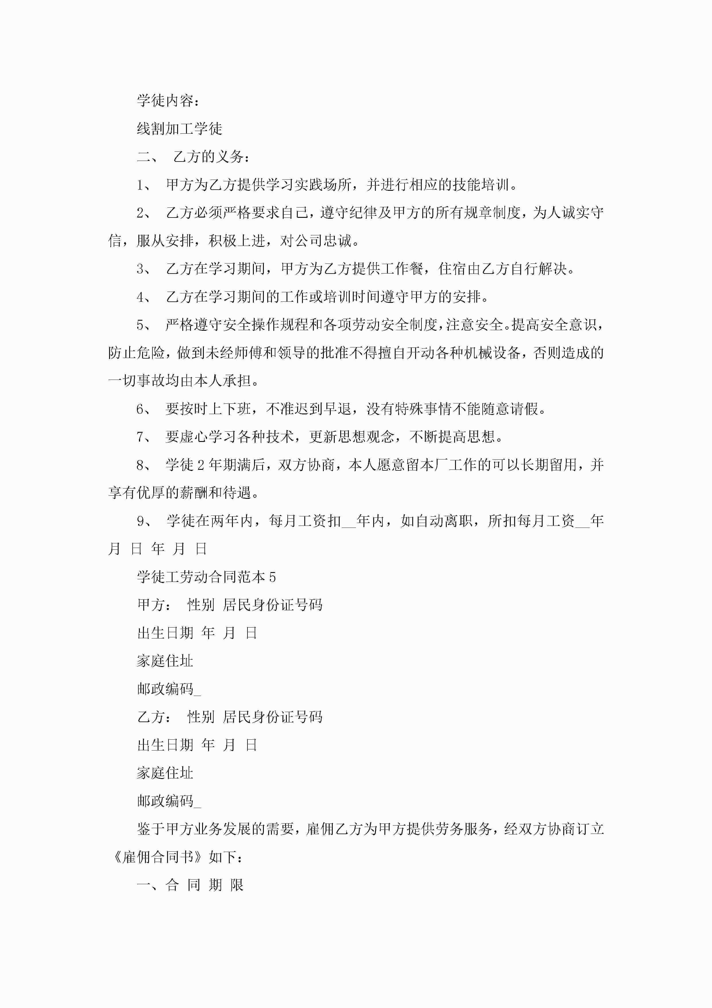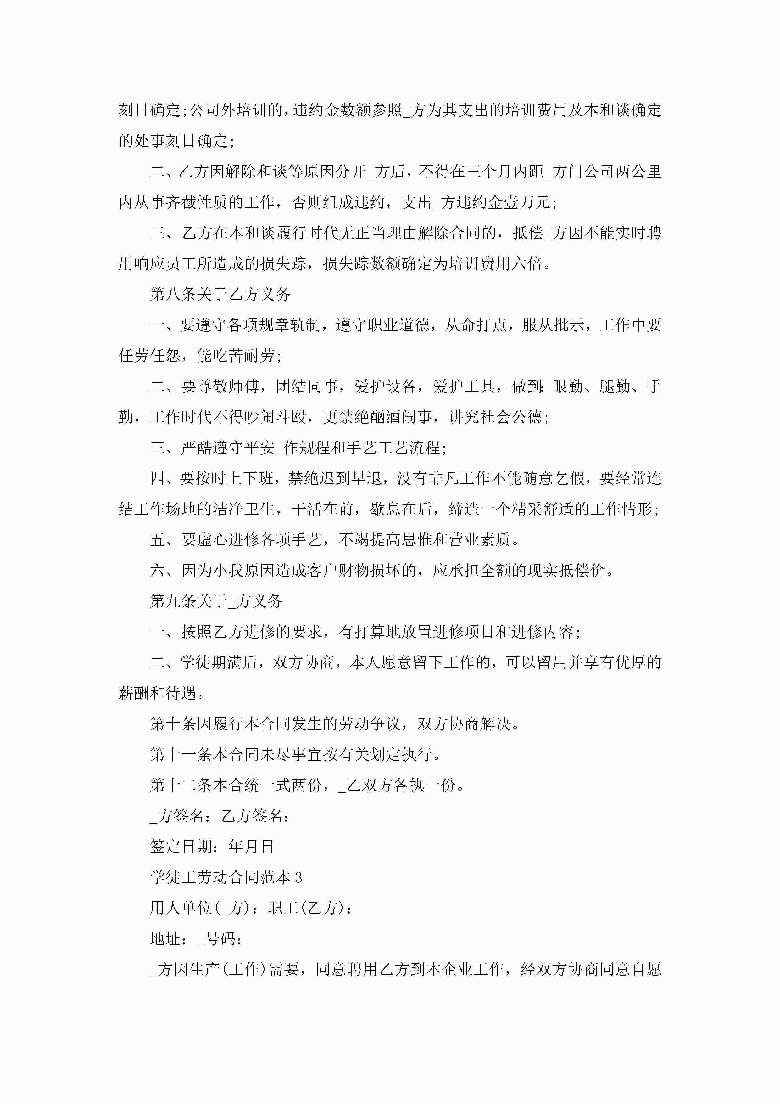 学徒工劳动合同范本5篇jugei3月23日 01:45发布关注208 学徒工劳动合同范本5篇此内容为付费资源,请付费后查看¥10.9 单篇文档限时特惠¥15个人会员开通企业会员开通立即下载无需登陆!可直接快捷下载单个模板付费资源© 版权声明THE ENDWord模板# 实用文档# 实用模板# 合同模板# 劳动合同 如有问题,可点击最底部“联系我们”联系客服 分享QQ空间微博QQ好友海报分享复制链接收藏