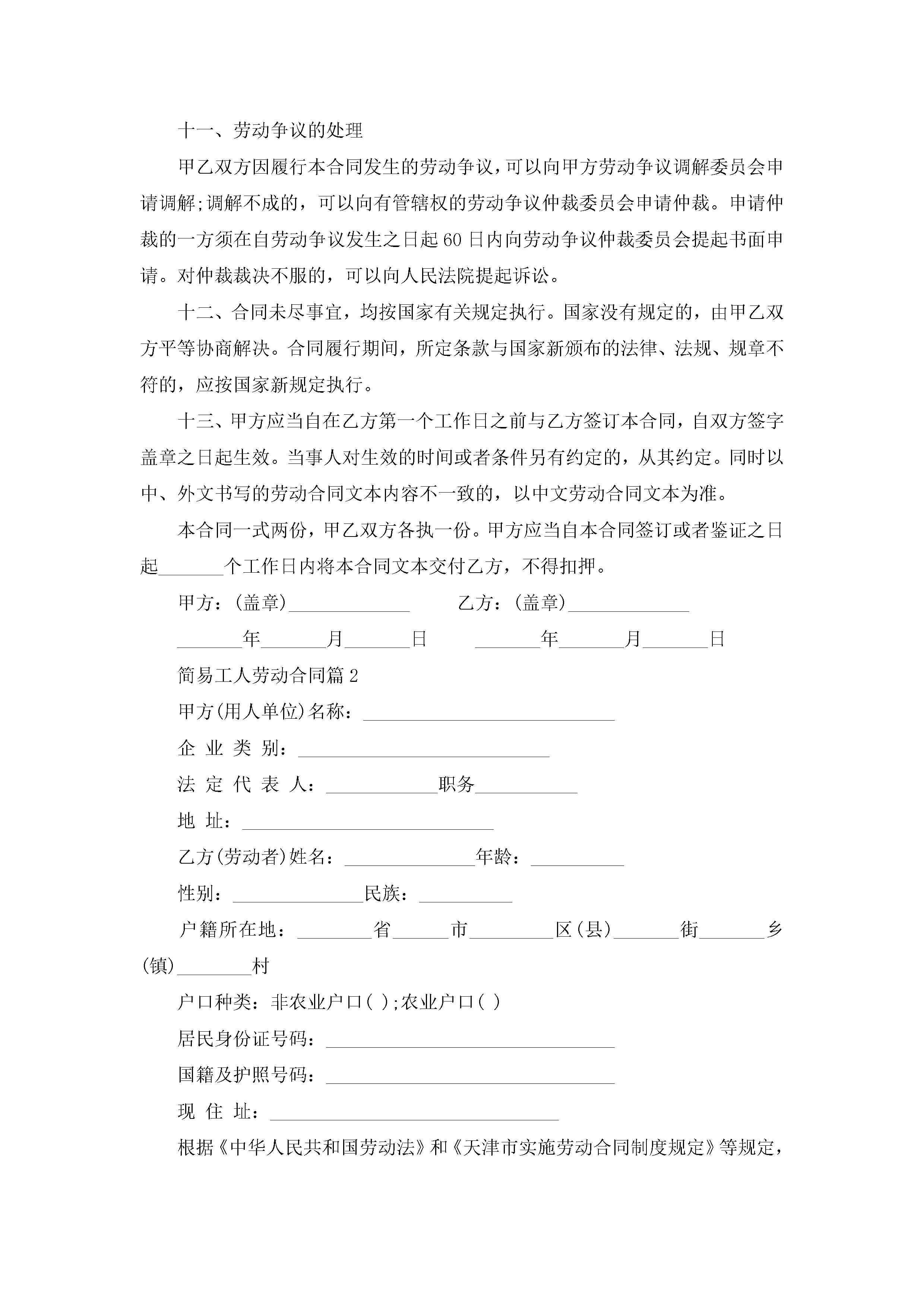 简易工人劳动合同大全8篇jugei3月23日 01:45发布关注187 简易工人劳动合同大全8篇此内容为付费资源,请付费后查看¥10.9 单篇文档限时特惠¥15个人会员开通企业会员开通立即下载无需登陆!可直接快捷下载单个模板付费资源© 版权声明THE ENDWord模板# 实用文档# 实用模板# 合同模板# 劳动合同 如有问题,可点击最底部“联系我们”联系客服 分享QQ空间微博QQ好友海报分享复制链接收藏