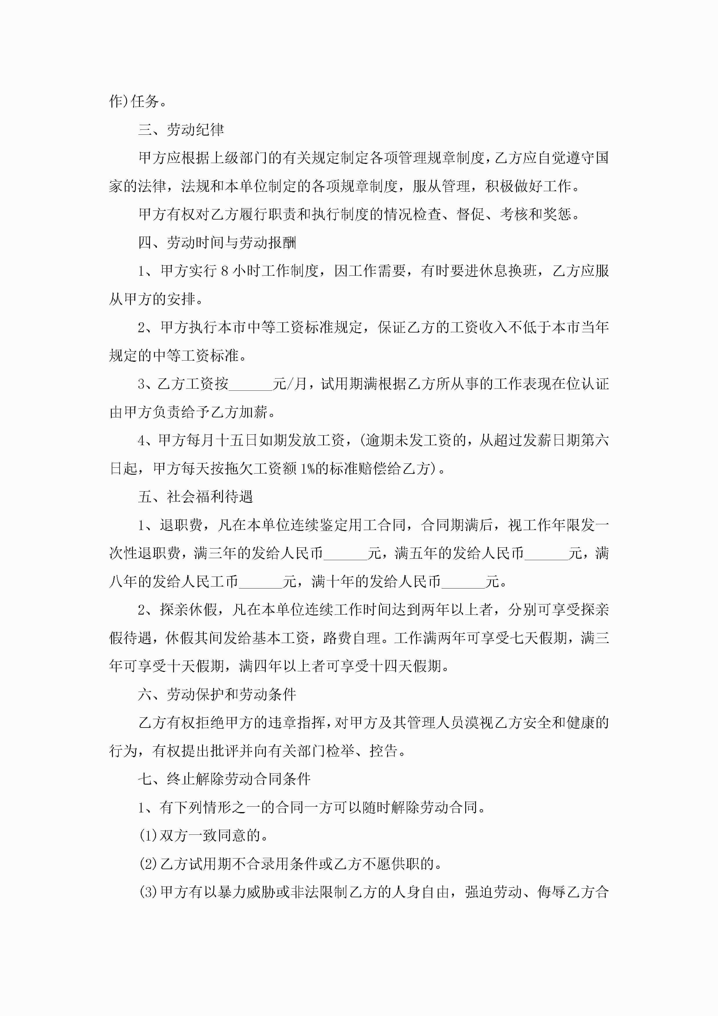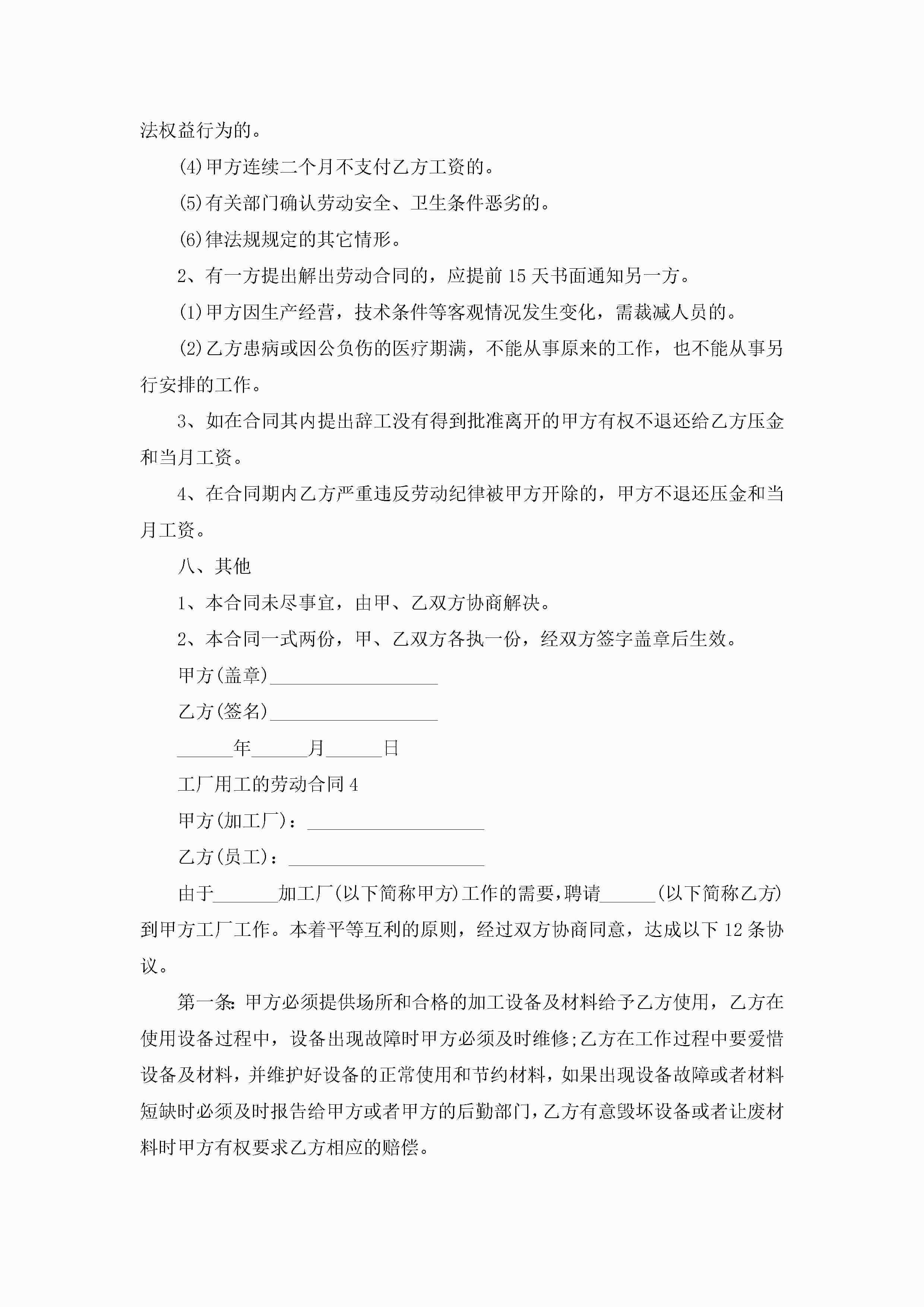 工厂用工的劳动合同模板5篇jugei3月23日 01:45发布关注198 工厂用工的劳动合同模板5篇此内容为付费资源,请付费后查看¥10.9 单篇文档限时特惠¥15个人会员开通企业会员开通立即下载无需登陆!可直接快捷下载单个模板付费资源© 版权声明THE ENDWord模板# 实用文档# 实用模板# 合同模板# 劳动合同 如有问题,可点击最底部“联系我们”联系客服 分享QQ空间微博QQ好友海报分享复制链接收藏