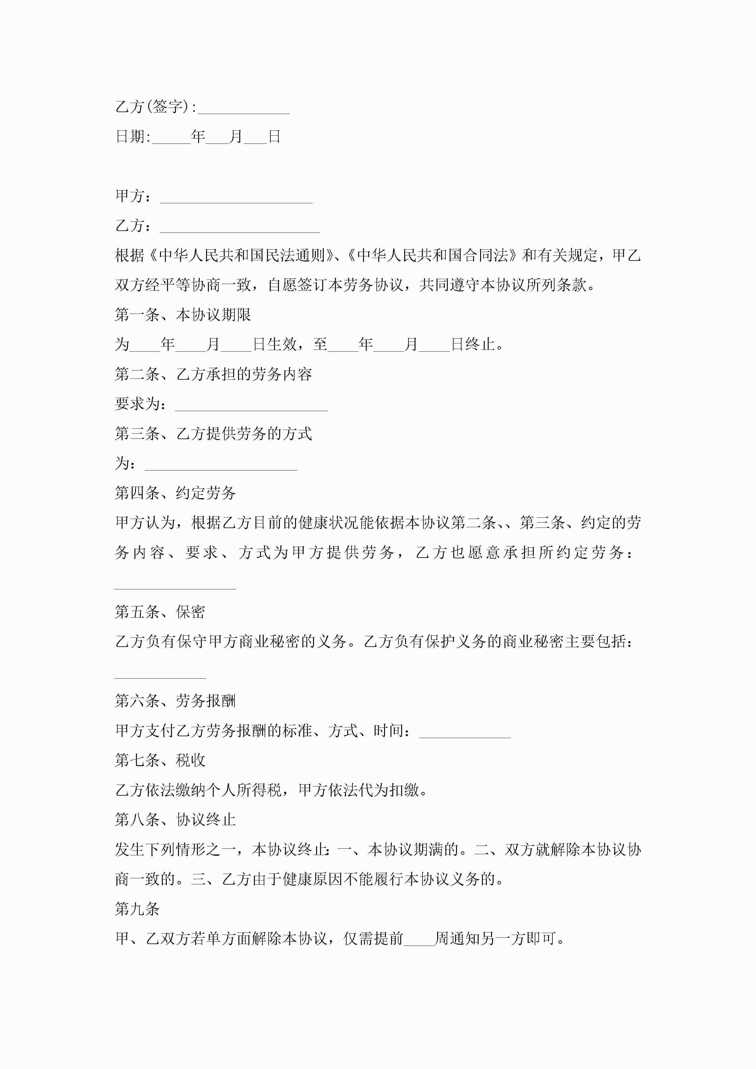 员工个人劳务合同简单版5篇jugei3月23日 01:45发布关注197 员工个人劳务合同简单版5篇此内容为付费资源,请付费后查看¥10.9 单篇文档限时特惠¥15个人会员开通企业会员开通立即下载无需登陆!可直接快捷下载单个模板付费资源© 版权声明THE ENDWord模板# 实用文档# 实用模板# 合同模板# 劳动合同 如有问题,可点击最底部“联系我们”联系客服 分享QQ空间微博QQ好友海报分享复制链接收藏