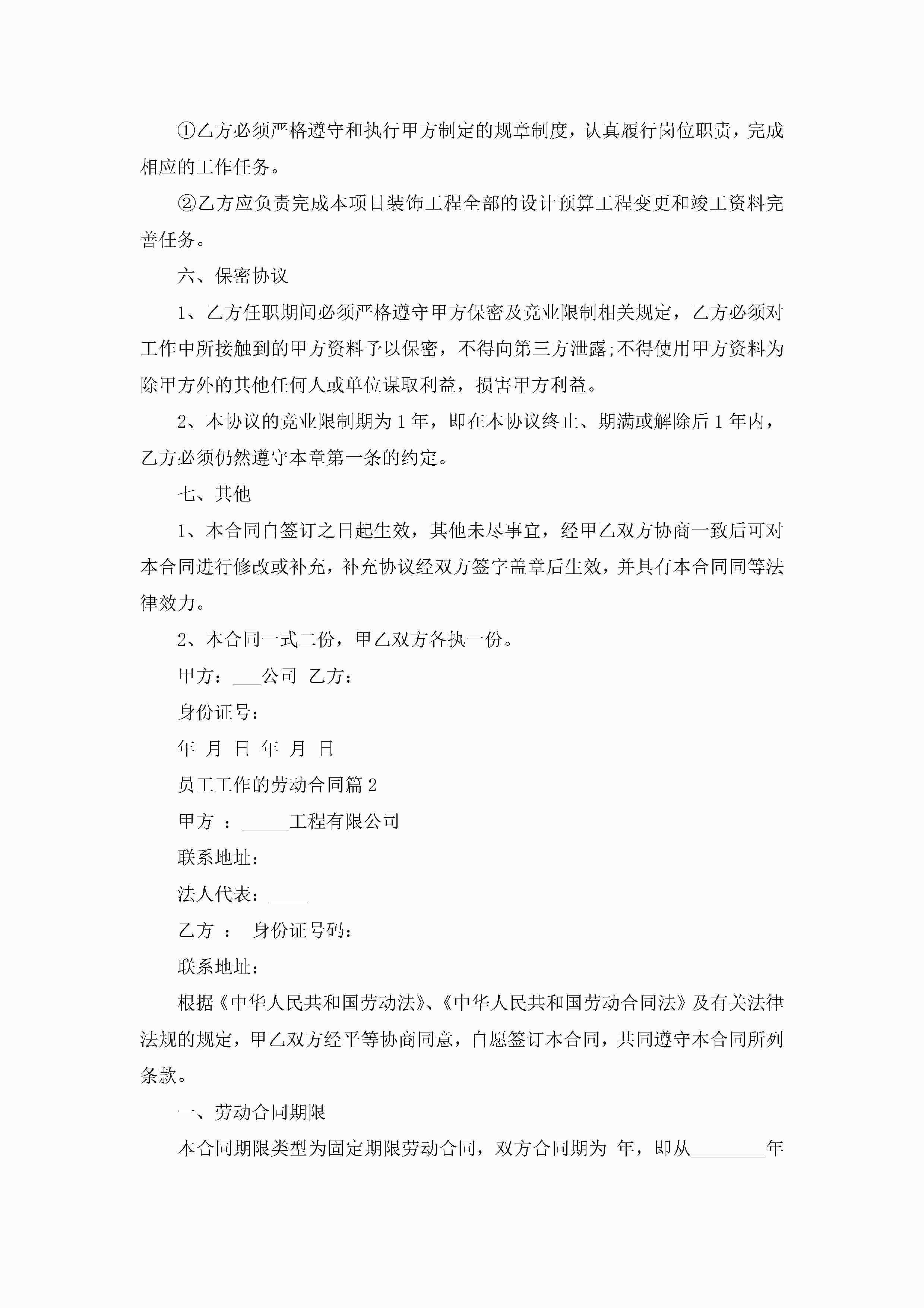 员工工作的劳动合同(10篇大全)jugei3月23日 01:45发布关注230 员工工作的劳动合同(10篇大全)此内容为付费资源,请付费后查看¥10.9 单篇文档限时特惠¥15个人会员开通企业会员开通立即下载无需登陆!可直接快捷下载单个模板付费资源© 版权声明THE ENDWord模板# 实用文档# 实用模板# 合同模板# 劳动合同 如有问题,可点击最底部“联系我们”联系客服 分享QQ空间微博QQ好友海报分享复制链接收藏