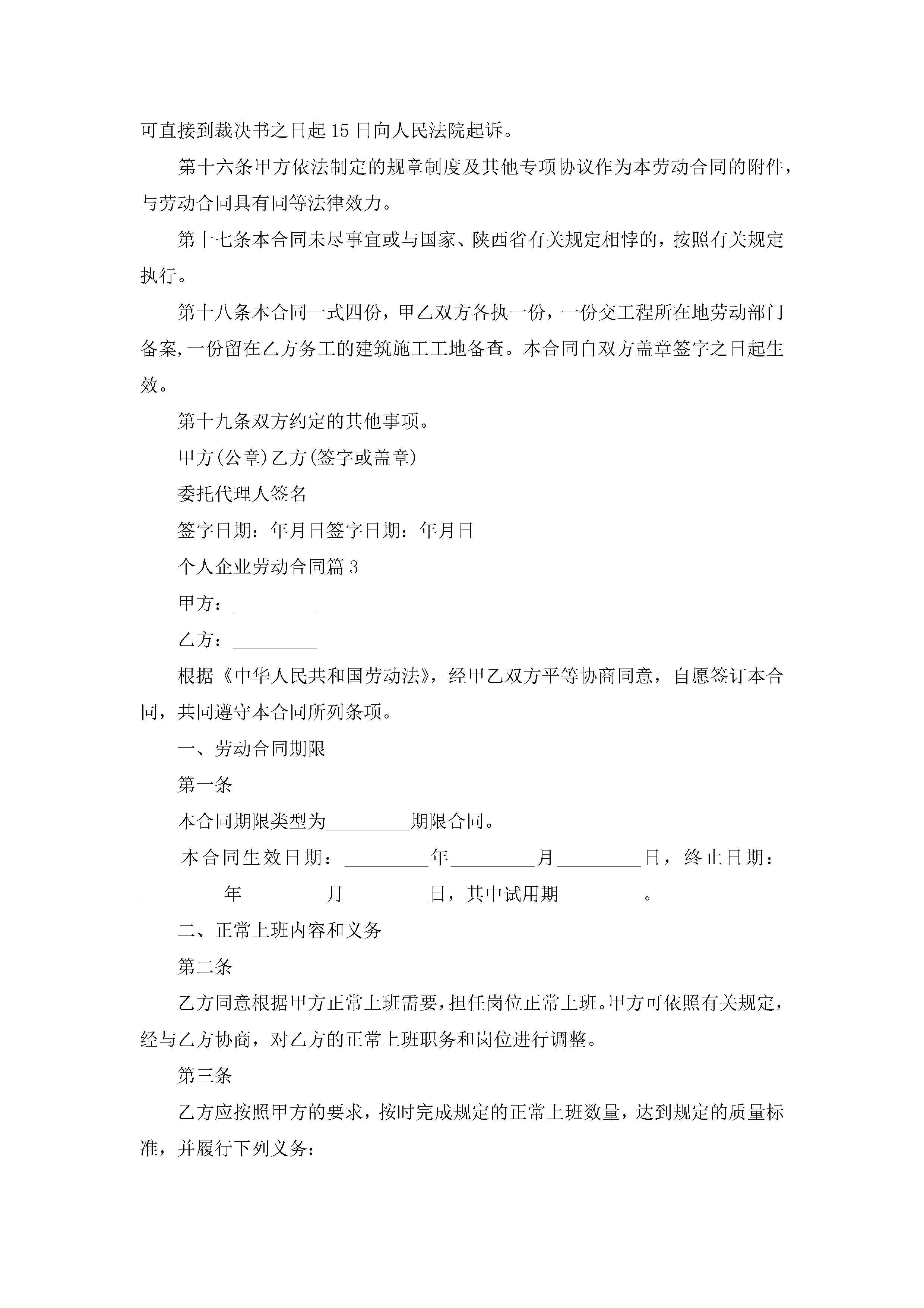 个人企业劳动合同范本6篇jugei3月23日 01:45发布关注196 个人企业劳动合同范本6篇此内容为付费资源,请付费后查看¥10.9 单篇文档限时特惠¥15个人会员开通企业会员开通立即下载无需登陆!可直接快捷下载单个模板付费资源© 版权声明THE ENDWord模板# 实用文档# 实用模板# 合同模板# 劳动合同 如有问题,可点击最底部“联系我们”联系客服 分享QQ空间微博QQ好友海报分享复制链接收藏