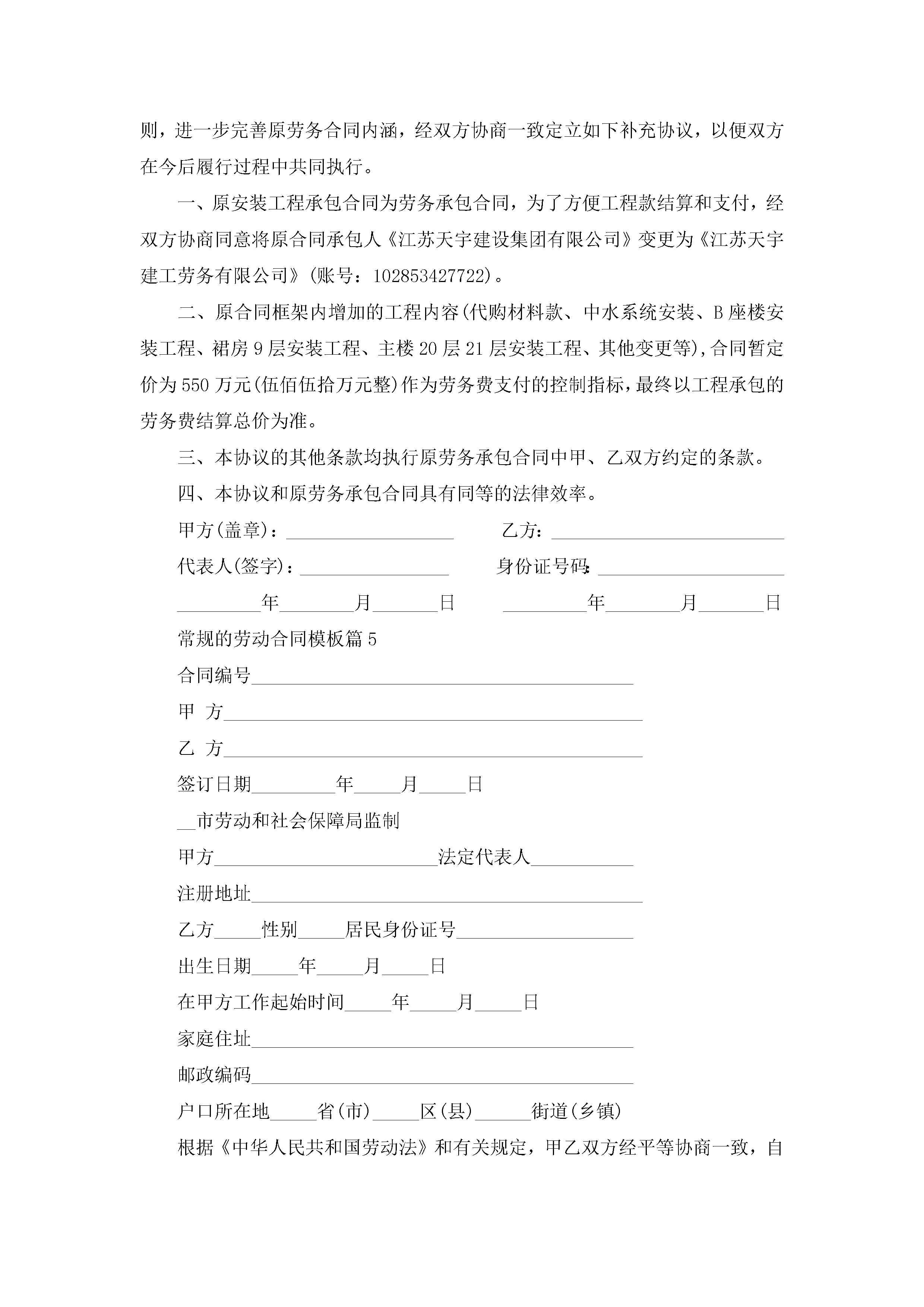 常规的劳动合同模板6篇jugei3月23日 01:45发布关注185 常规的劳动合同模板6篇此内容为付费资源,请付费后查看¥10.9 单篇文档限时特惠¥15个人会员开通企业会员开通立即下载无需登陆!可直接快捷下载单个模板付费资源© 版权声明THE ENDWord模板# 实用文档# 实用模板# 合同模板# 劳动合同 如有问题,可点击最底部“联系我们”联系客服 分享QQ空间微博QQ好友海报分享复制链接收藏