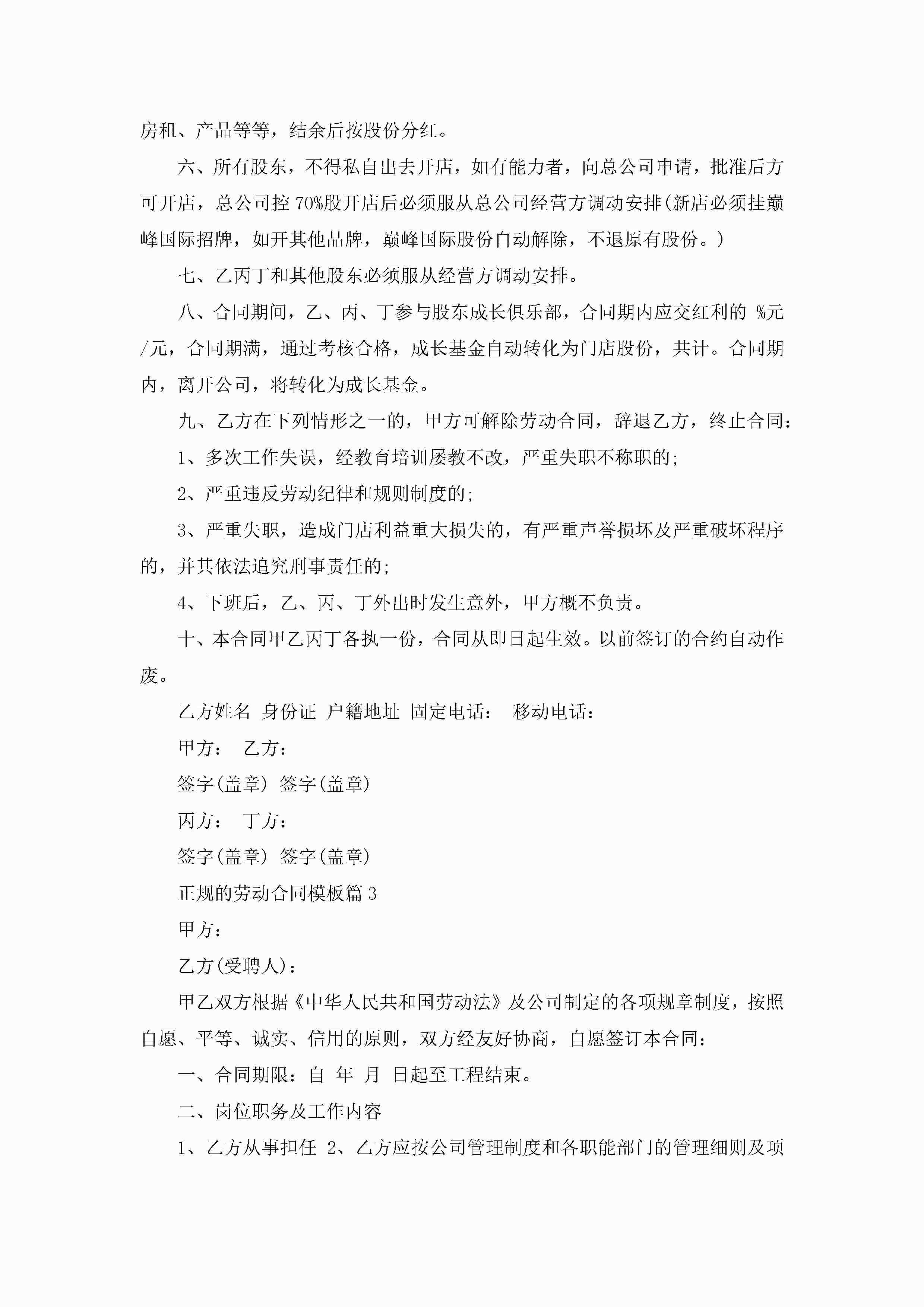 正规的劳动合同模板6篇jugei3月23日 01:45发布关注258 正规的劳动合同模板6篇此内容为付费资源,请付费后查看¥10.9 单篇文档限时特惠¥15个人会员开通企业会员开通立即下载无需登陆!可直接快捷下载单个模板付费资源© 版权声明THE ENDWord模板# 实用文档# 实用模板# 合同模板# 劳动合同 如有问题,可点击最底部“联系我们”联系客服 分享QQ空间微博QQ好友海报分享复制链接收藏