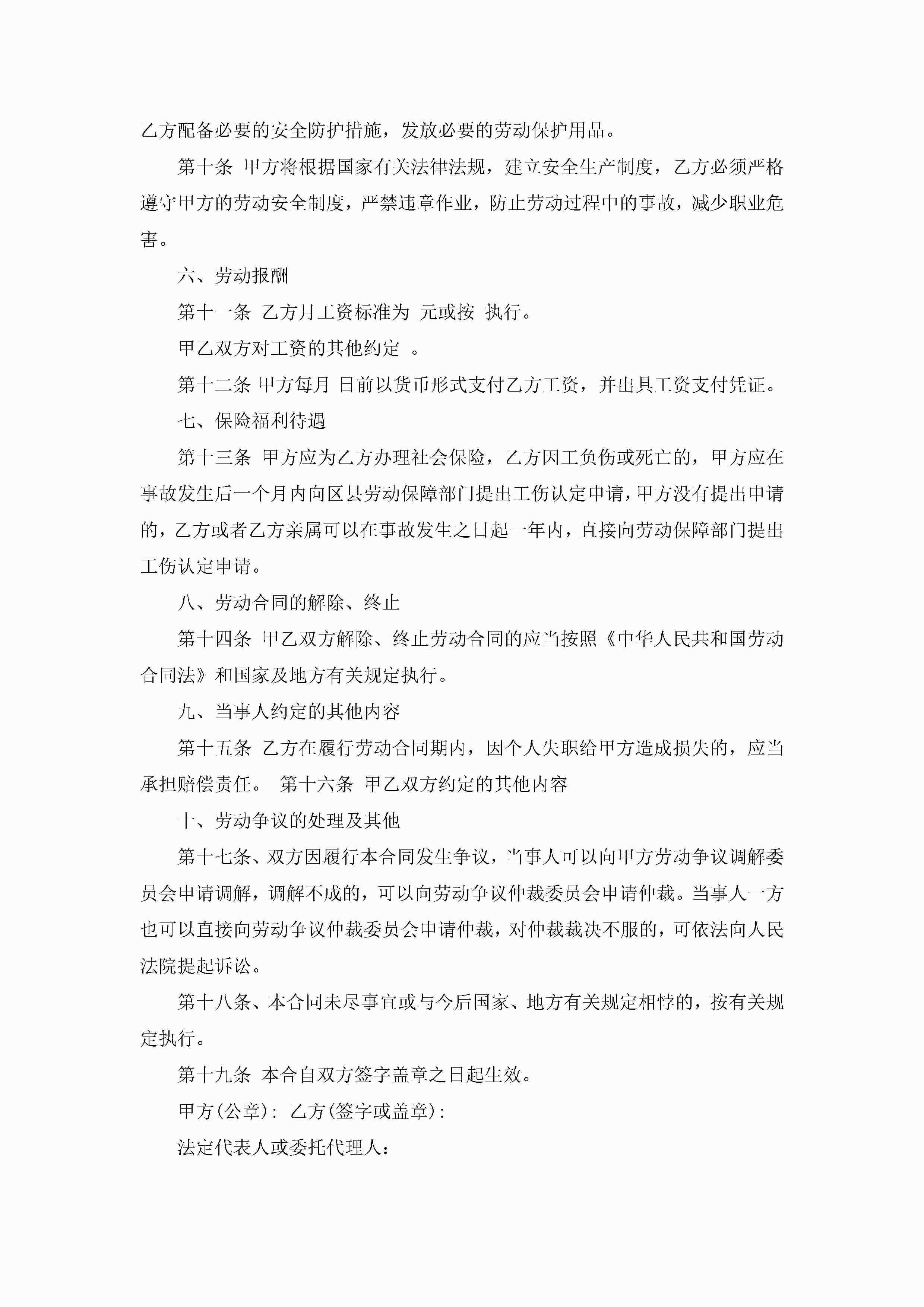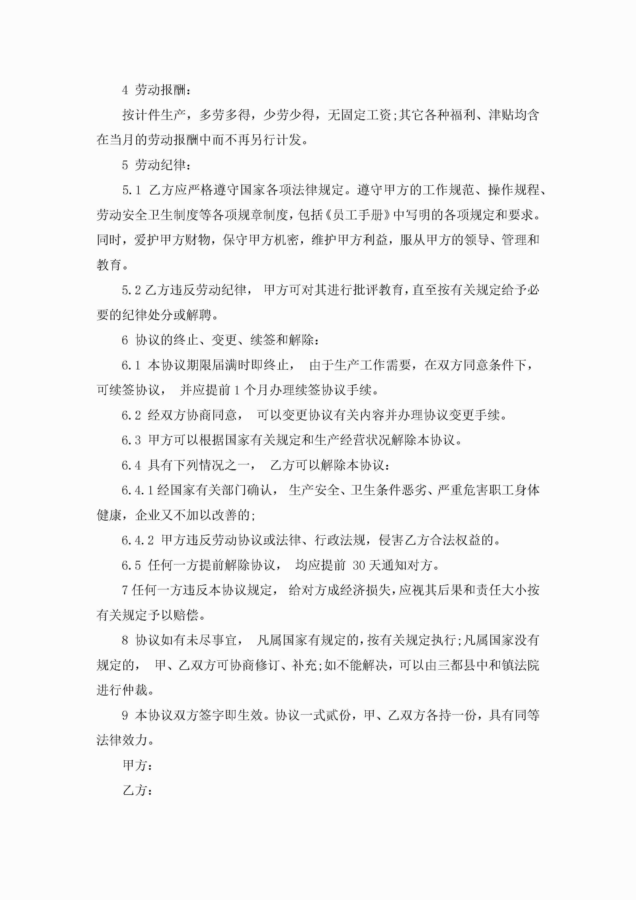 正规的个人劳动合同模板6篇大全jugei3月23日 01:45发布关注189 正规的个人劳动合同模板6篇大全此内容为付费资源,请付费后查看¥10.9 单篇文档限时特惠¥15个人会员开通企业会员开通立即下载无需登陆!可直接快捷下载单个模板付费资源© 版权声明THE ENDWord模板# 实用文档# 实用模板# 合同模板# 劳动合同 如有问题,可点击最底部“联系我们”联系客服 分享QQ空间微博QQ好友海报分享复制链接收藏