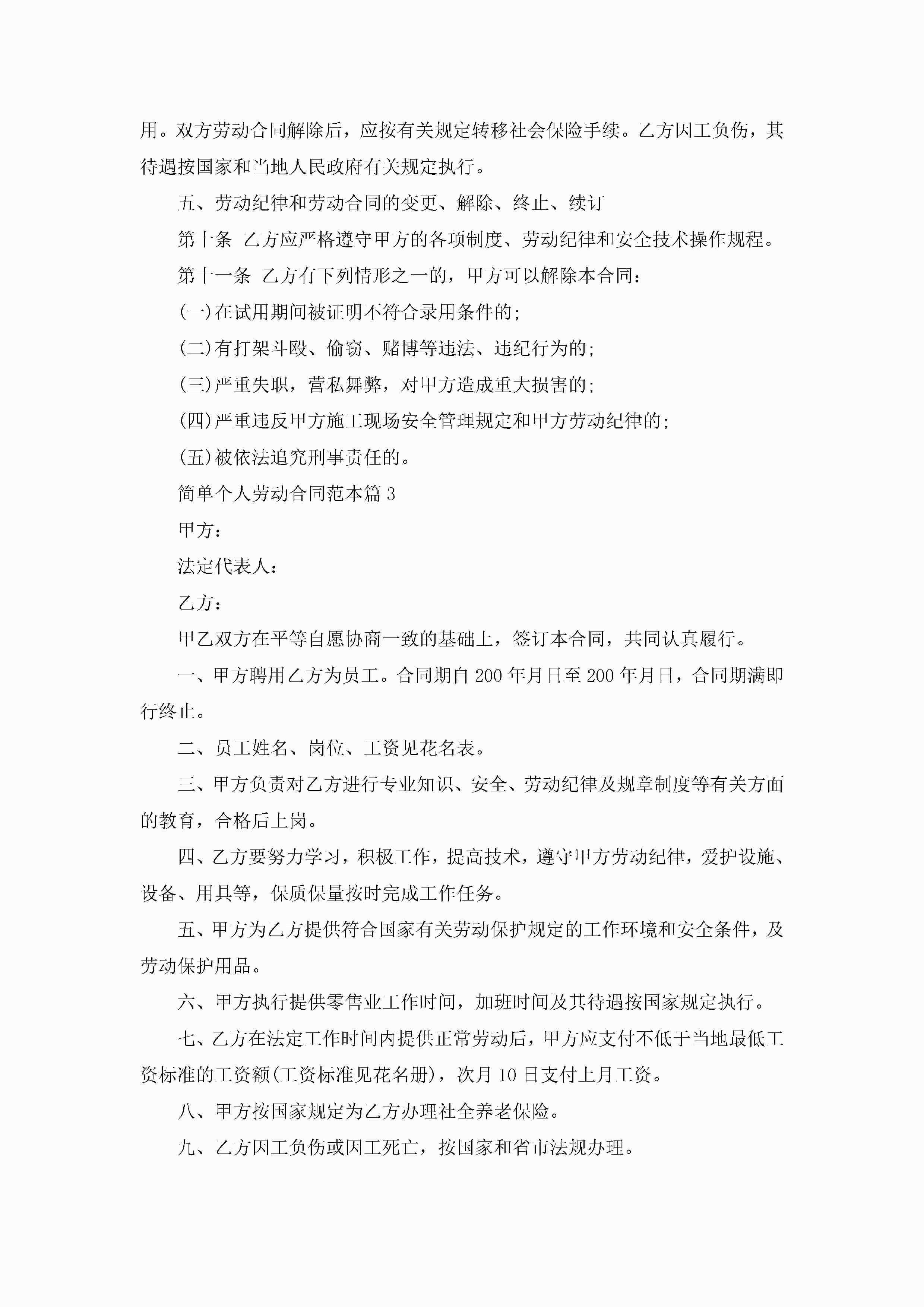 简单个人劳动合同范本6篇jugei3月23日 01:45发布关注191 简单个人劳动合同范本6篇此内容为付费资源,请付费后查看¥10.9 单篇文档限时特惠¥15个人会员开通企业会员开通立即下载无需登陆!可直接快捷下载单个模板付费资源© 版权声明THE ENDWord模板# 实用文档# 实用模板# 合同模板# 劳动合同 如有问题,可点击最底部“联系我们”联系客服 分享QQ空间微博QQ好友海报分享复制链接收藏