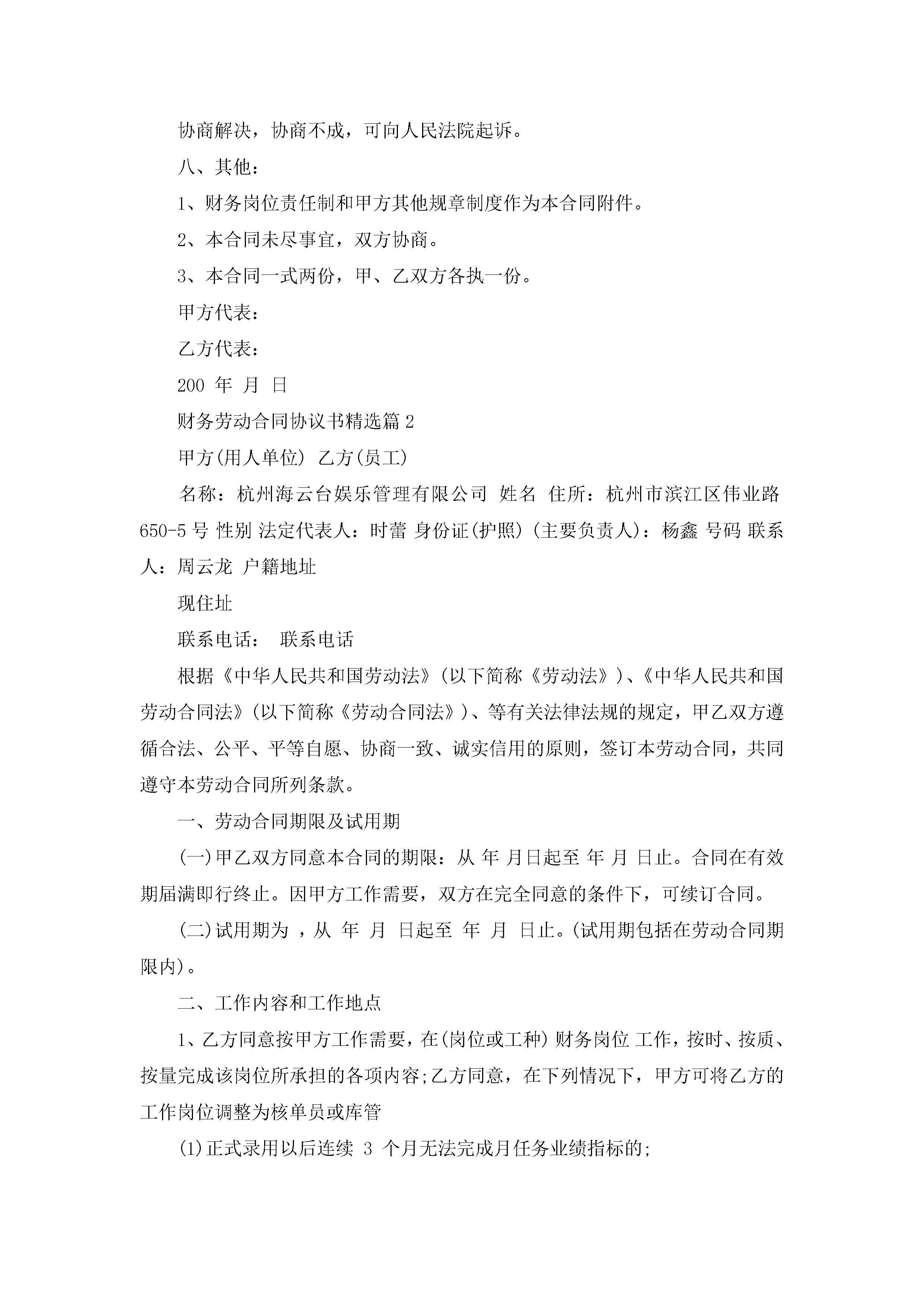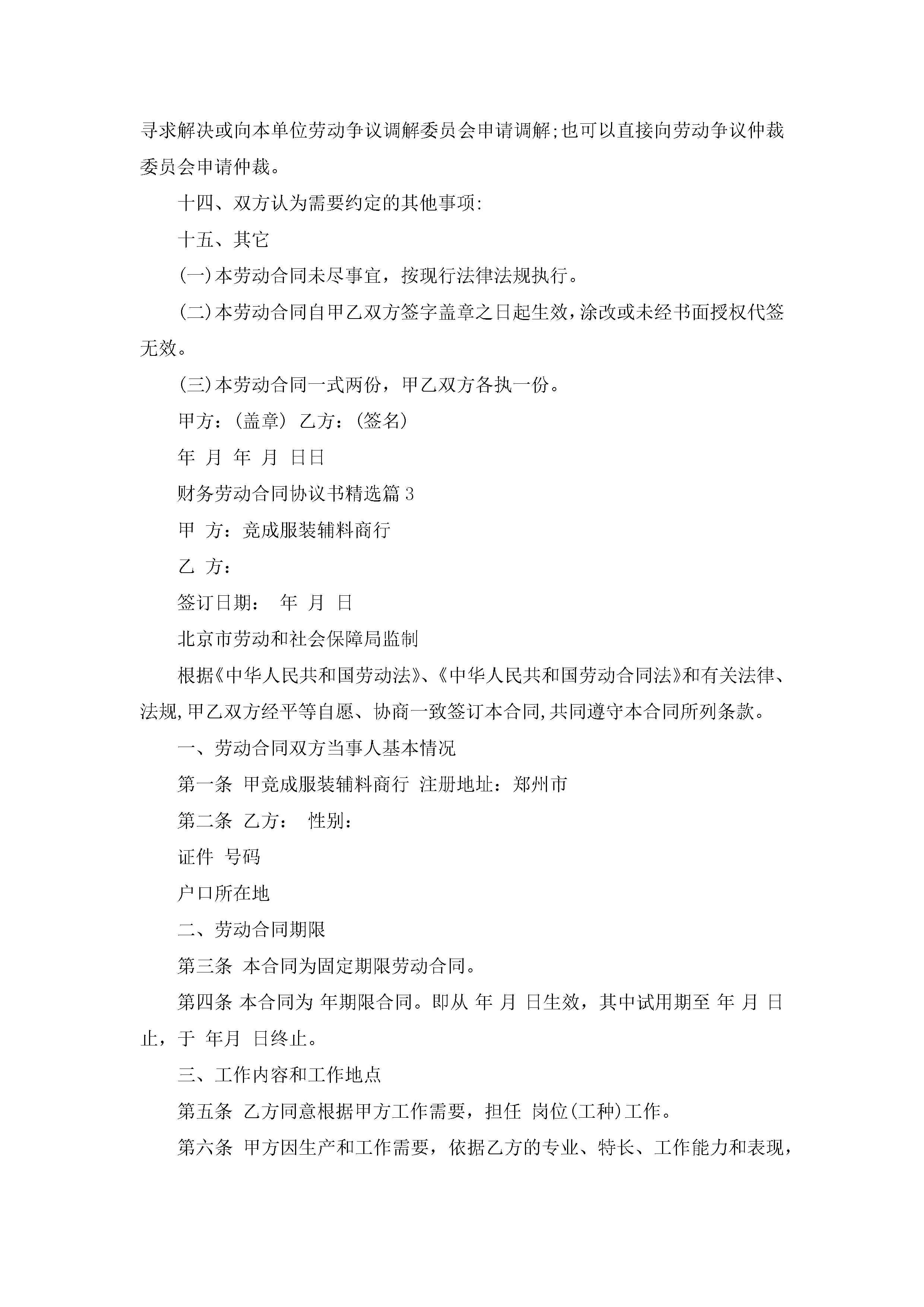 财务劳动合同协议书精选8篇jugei3月23日 01:45发布关注186 财务劳动合同协议书精选8篇此内容为付费资源,请付费后查看¥10.9 单篇文档限时特惠¥15个人会员开通企业会员开通立即下载无需登陆!可直接快捷下载单个模板付费资源© 版权声明THE ENDWord模板# 实用文档# 实用模板# 合同模板# 劳动合同 如有问题,可点击最底部“联系我们”联系客服 分享QQ空间微博QQ好友海报分享复制链接收藏