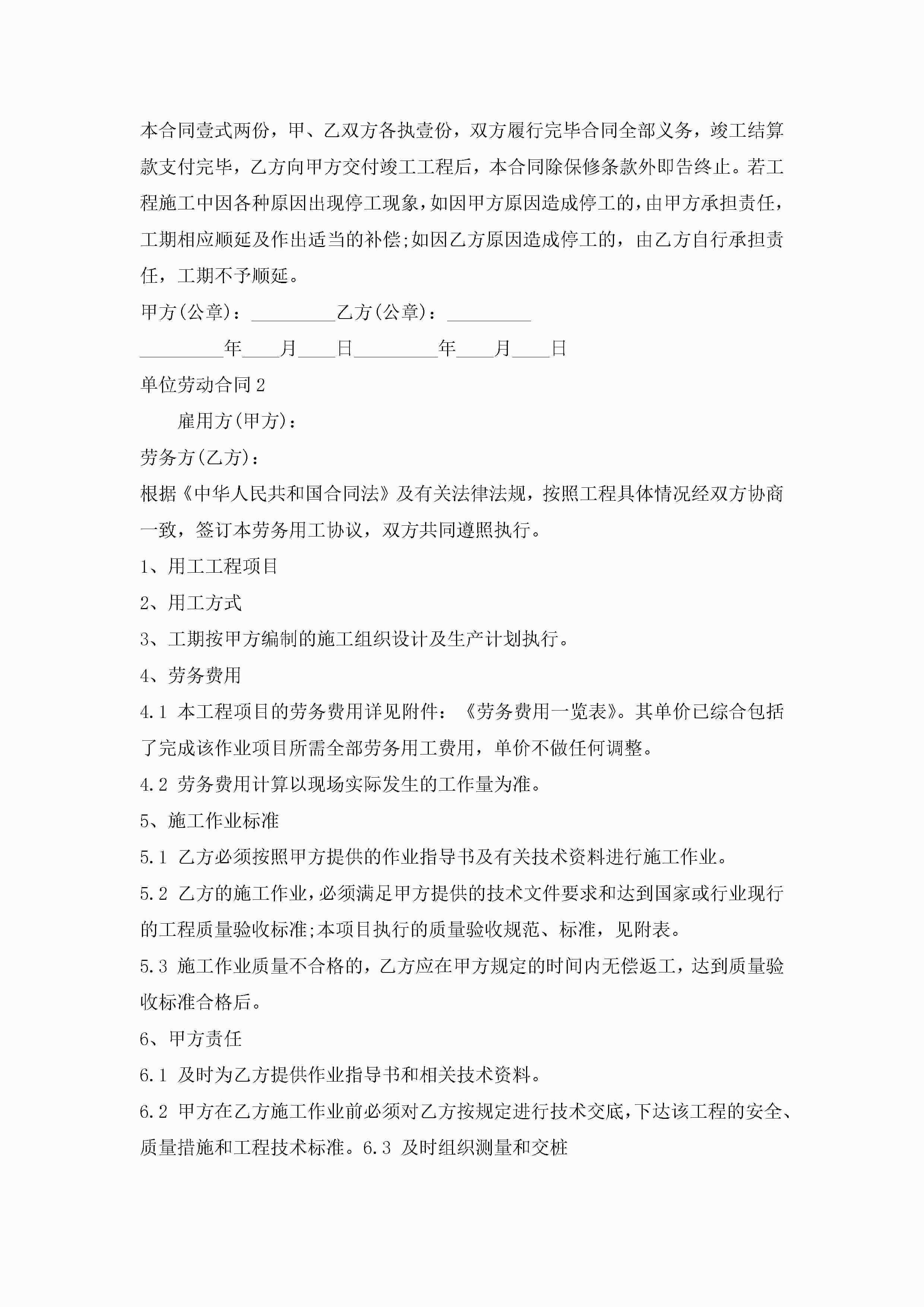 最新单位劳动合同5篇jugei3月23日 01:45发布关注195 最新单位劳动合同5篇此内容为付费资源,请付费后查看¥10.9 单篇文档限时特惠¥15个人会员开通企业会员开通立即下载无需登陆!可直接快捷下载单个模板付费资源© 版权声明THE ENDWord模板# 实用文档# 实用模板# 合同模板# 劳动合同 如有问题,可点击最底部“联系我们”联系客服 分享QQ空间微博QQ好友海报分享复制链接收藏