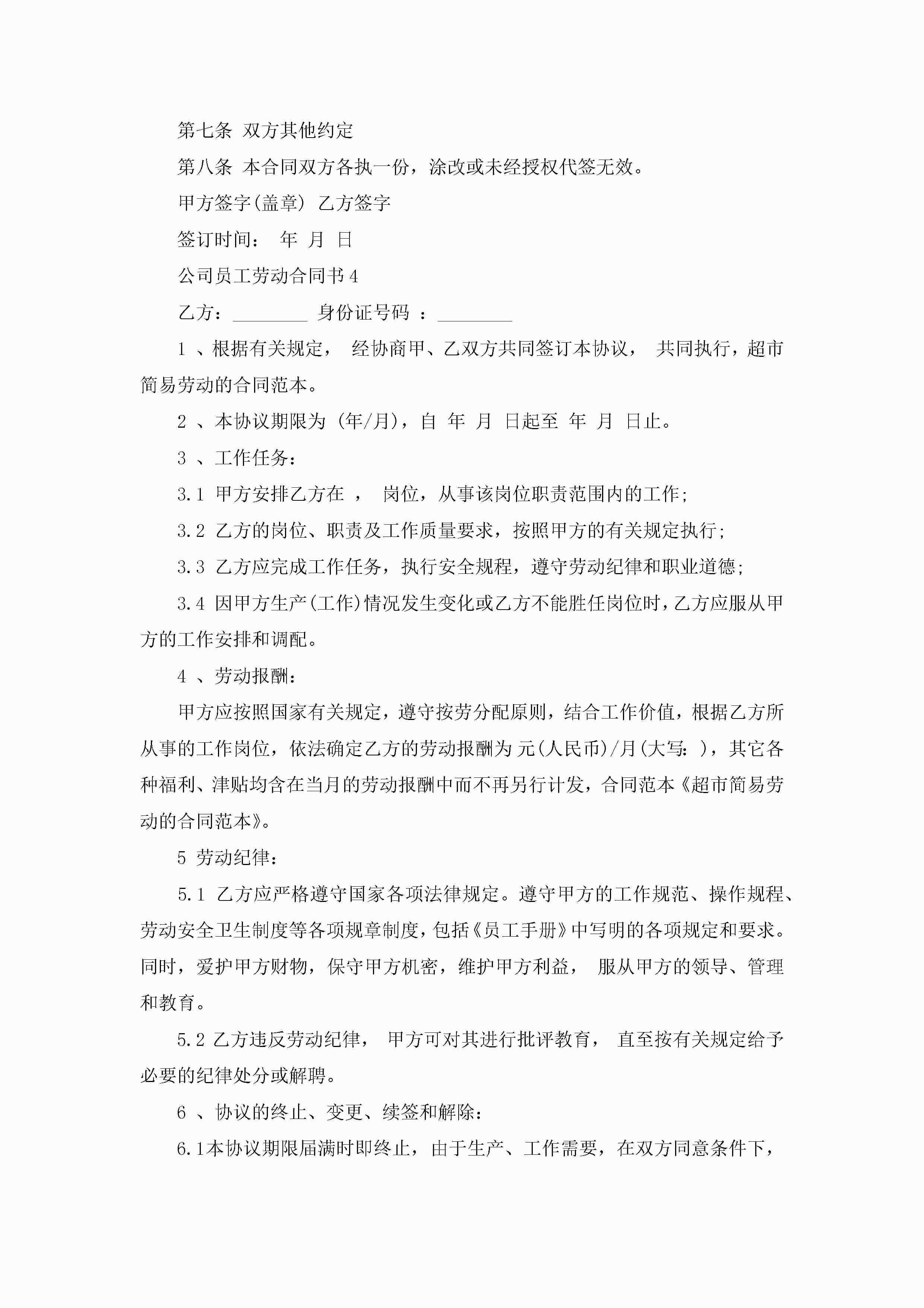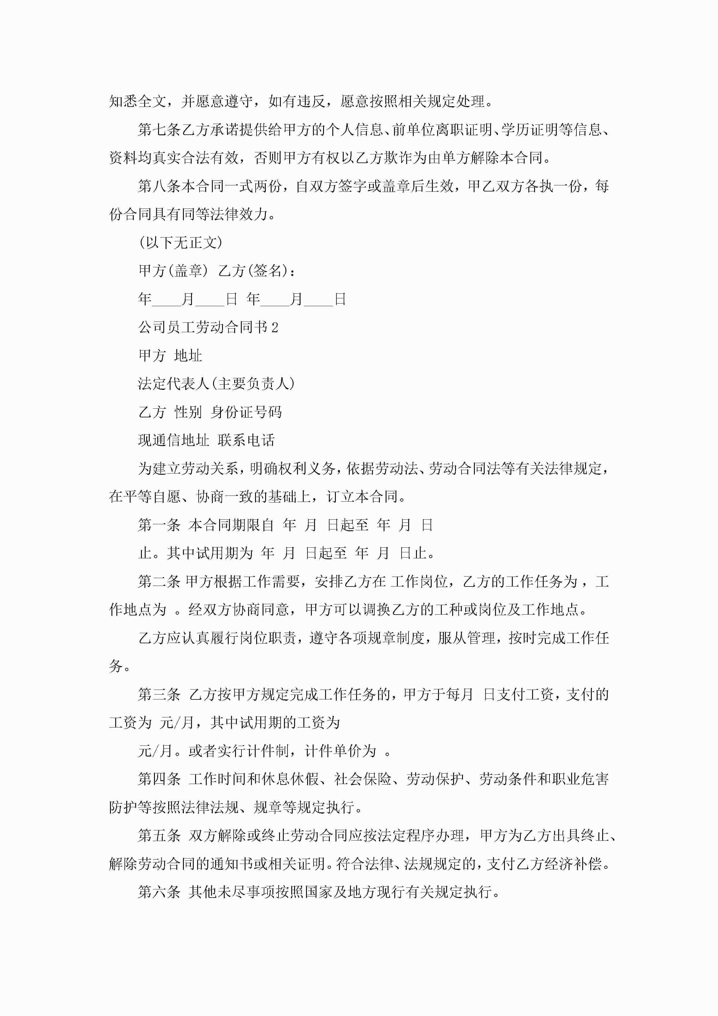 关于公司员工劳动合同书5篇jugei3月23日 01:45发布关注252 关于公司员工劳动合同书5篇此内容为付费资源,请付费后查看¥10.9 单篇文档限时特惠¥15个人会员开通企业会员开通立即下载无需登陆!可直接快捷下载单个模板付费资源© 版权声明THE ENDWord模板# 实用文档# 实用模板# 合同模板# 劳动合同 如有问题,可点击最底部“联系我们”联系客服 分享QQ空间微博QQ好友海报分享复制链接收藏
