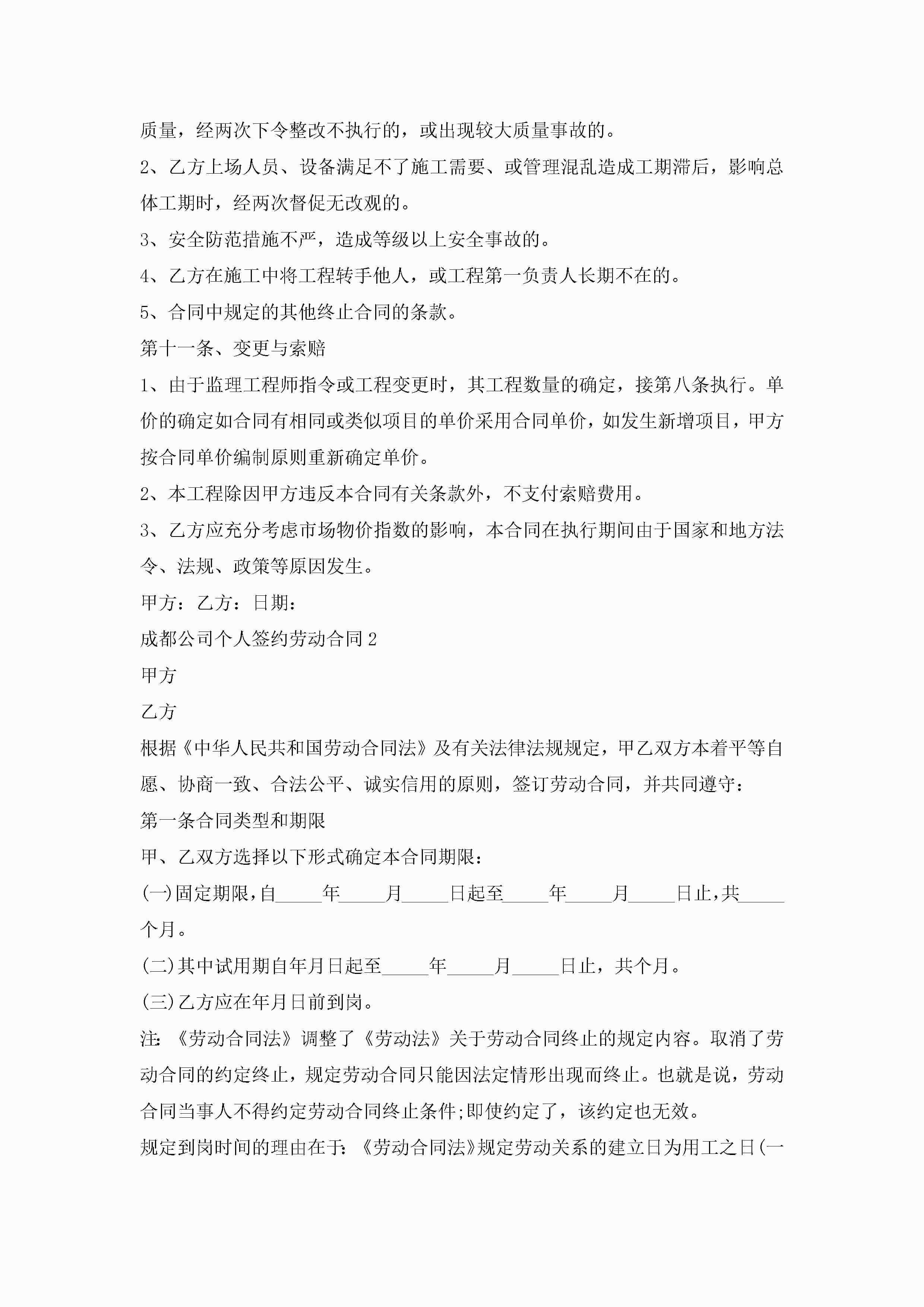 关于成都公司个人签约劳动合同5篇jugei3月23日 01:45发布关注201 关于成都公司个人签约劳动合同5篇此内容为付费资源,请付费后查看¥10.9 单篇文档限时特惠¥15个人会员开通企业会员开通立即下载无需登陆!可直接快捷下载单个模板付费资源© 版权声明THE ENDWord模板# 实用文档# 实用模板# 合同模板# 劳动合同 如有问题,可点击最底部“联系我们”联系客服 分享QQ空间微博QQ好友海报分享复制链接收藏