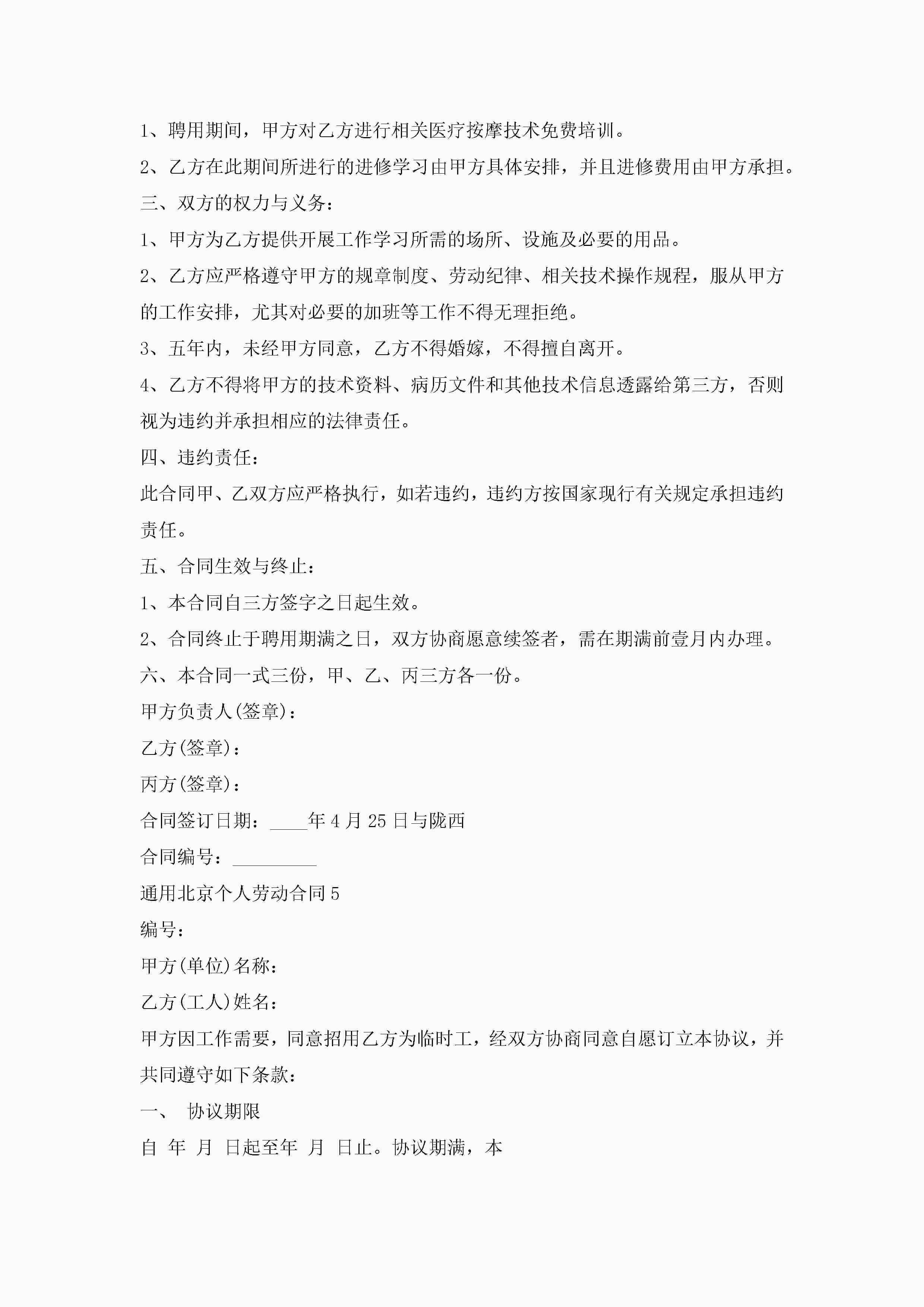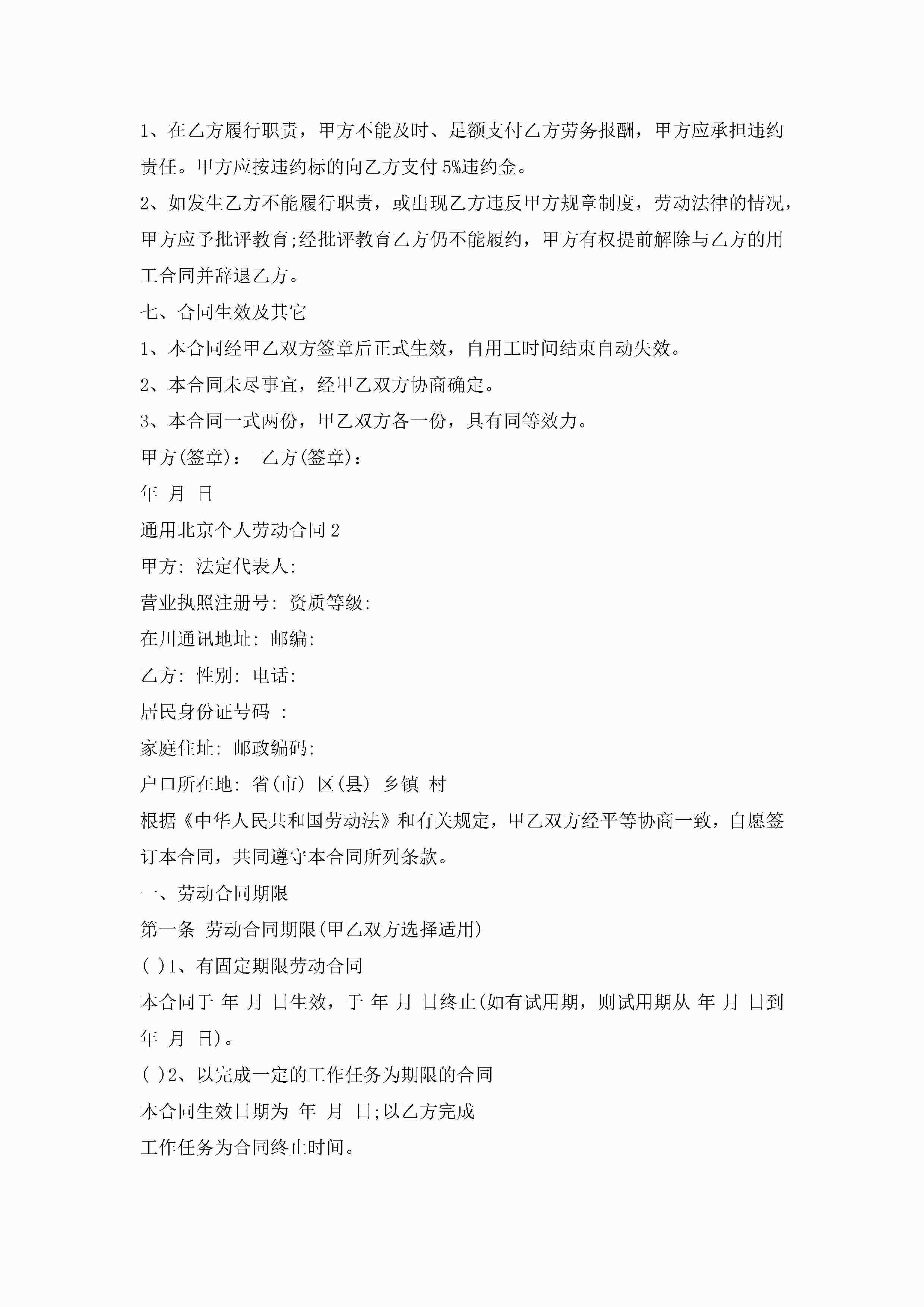 通用北京个人劳动合同5篇jugei3月23日 01:45发布关注187 通用北京个人劳动合同5篇此内容为付费资源,请付费后查看¥10.9 单篇文档限时特惠¥15个人会员开通企业会员开通立即下载无需登陆!可直接快捷下载单个模板付费资源© 版权声明THE ENDWord模板# 实用文档# 实用模板# 合同模板# 劳动合同 如有问题,可点击最底部“联系我们”联系客服 分享QQ空间微博QQ好友海报分享复制链接收藏