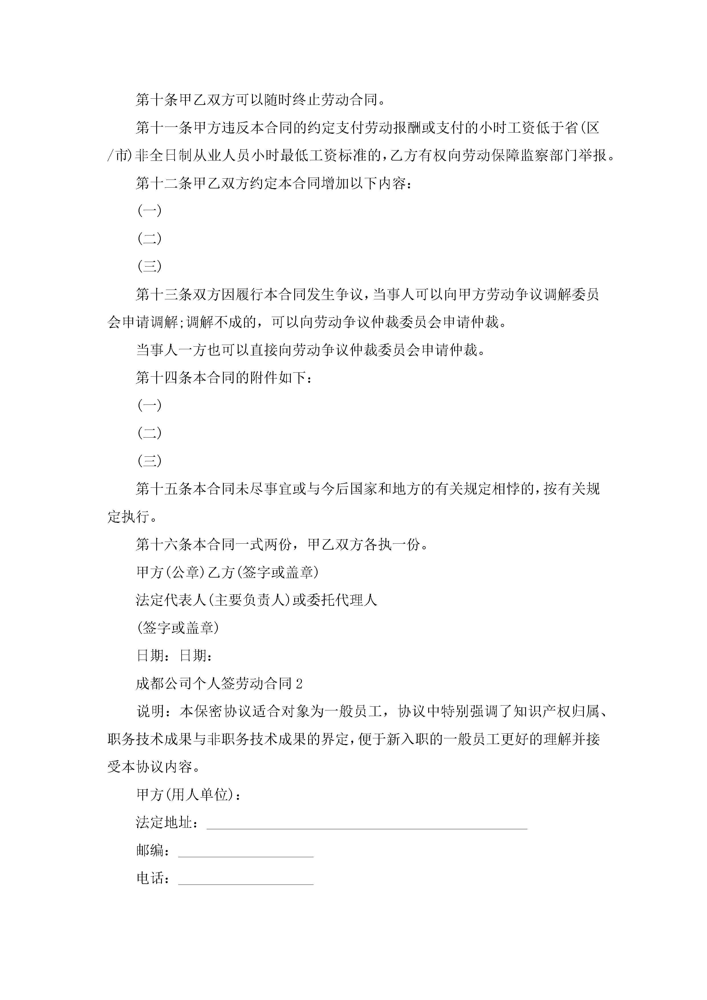 关于成都公司个人签劳动合同5篇jugei3月23日 01:45发布关注186 关于成都公司个人签劳动合同5篇此内容为付费资源,请付费后查看¥10.9 单篇文档限时特惠¥15个人会员开通企业会员开通立即下载无需登陆!可直接快捷下载单个模板付费资源© 版权声明THE ENDWord模板# 实用文档# 实用模板# 合同模板# 劳动合同 如有问题,可点击最底部“联系我们”联系客服 分享QQ空间微博QQ好友海报分享复制链接收藏
