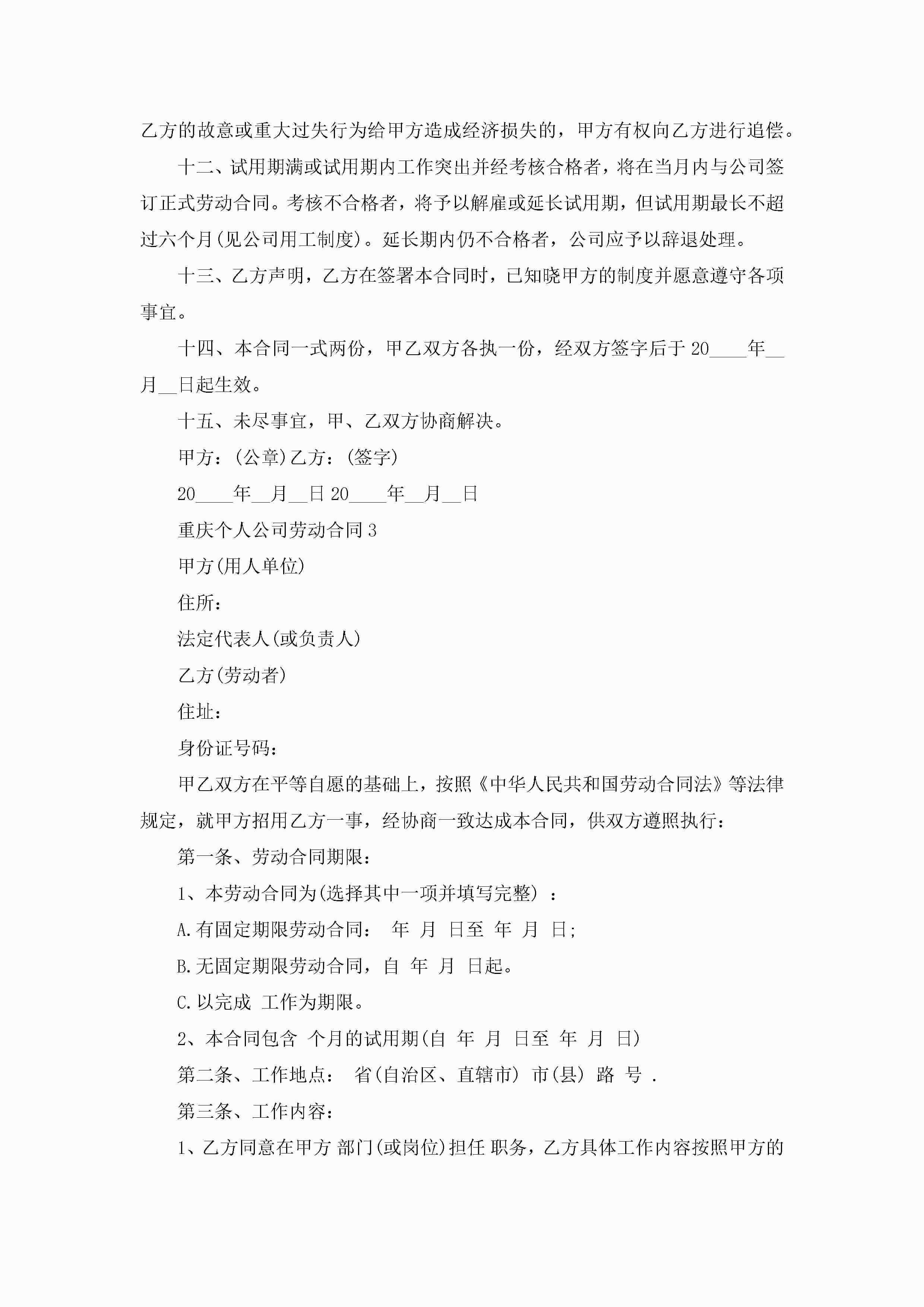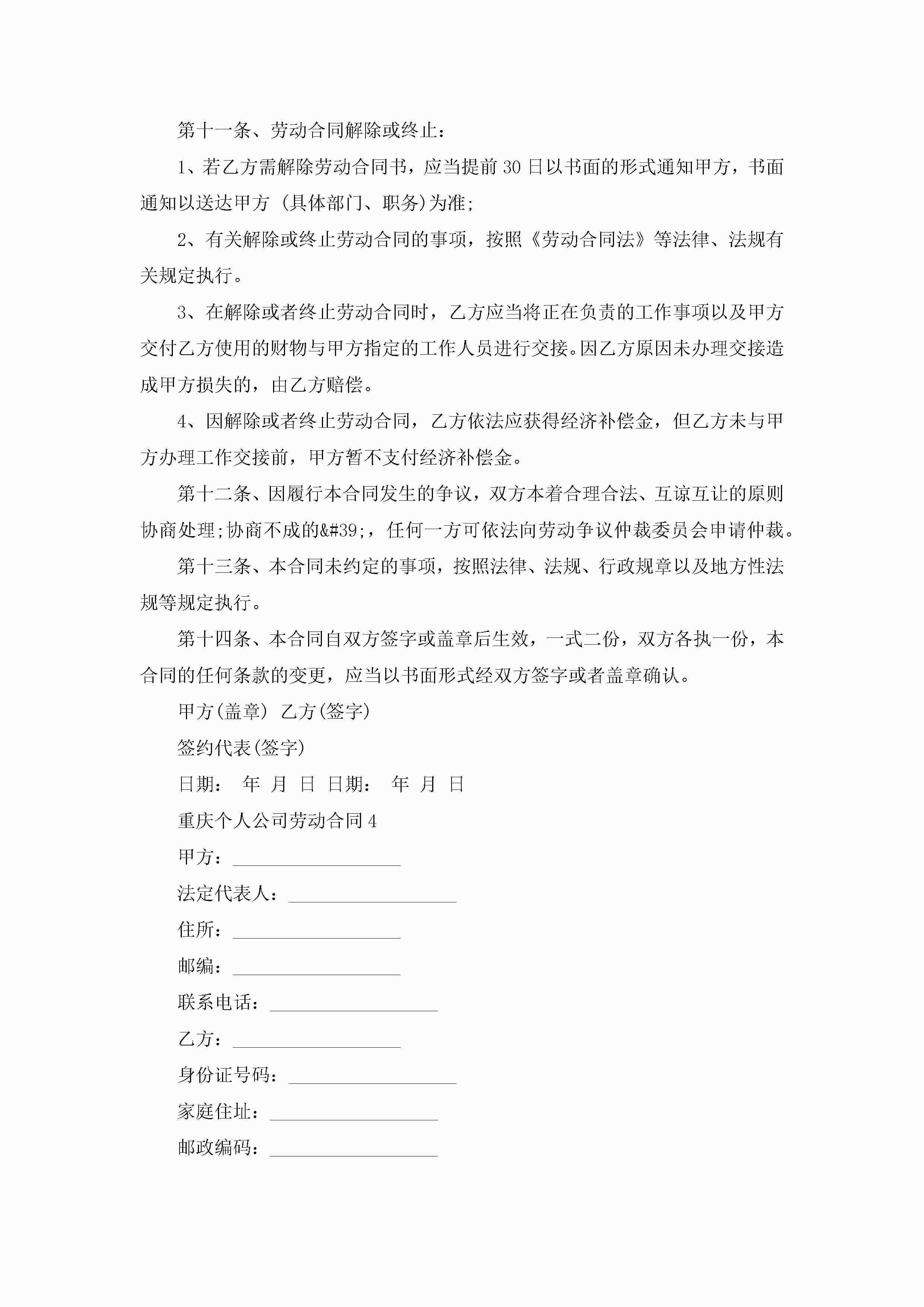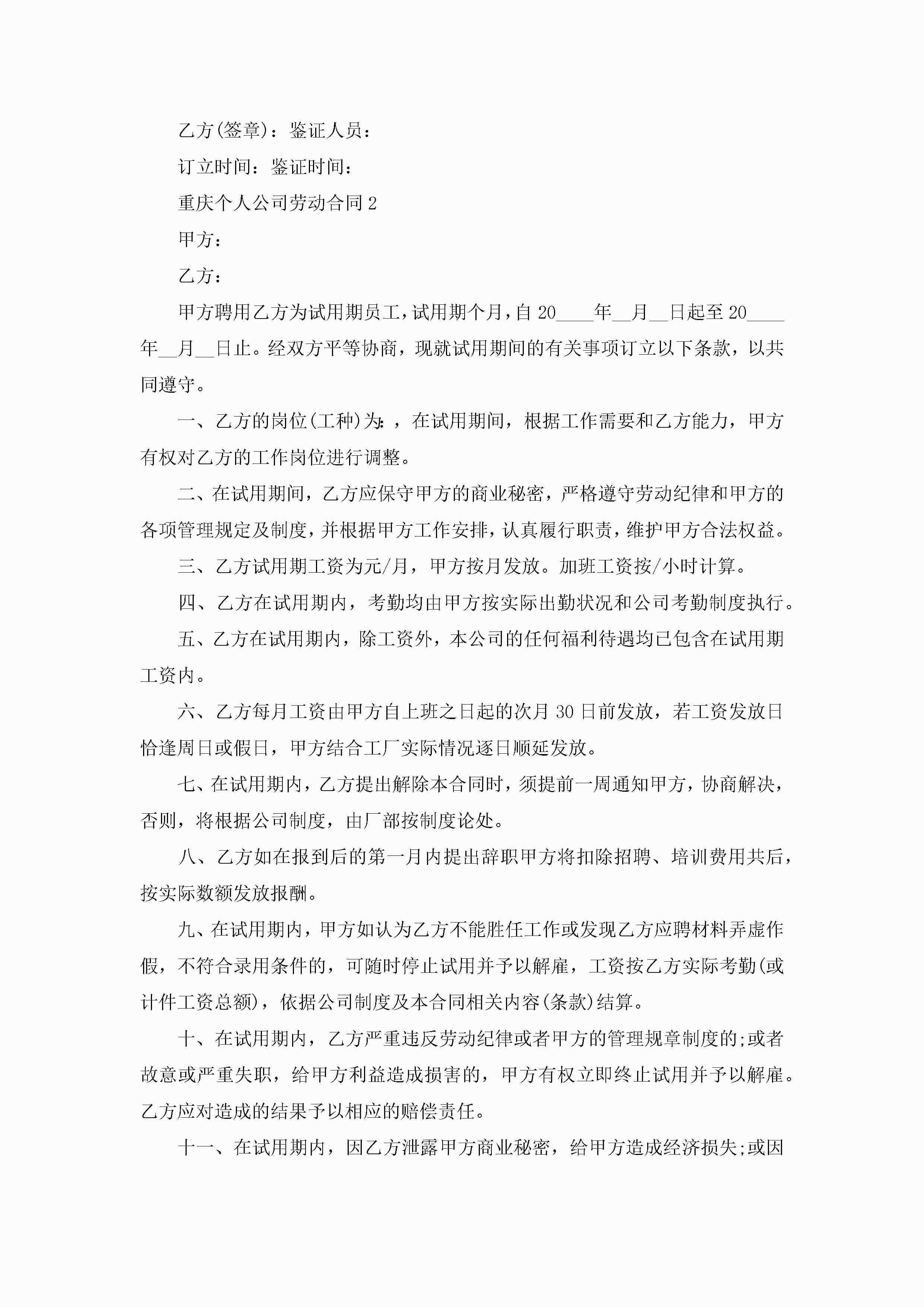 关于重庆个人公司劳动合同5篇jugei3月23日 01:45发布关注192 关于重庆个人公司劳动合同5篇此内容为付费资源,请付费后查看¥10.9 单篇文档限时特惠¥15个人会员开通企业会员开通立即下载无需登陆!可直接快捷下载单个模板付费资源© 版权声明THE ENDWord模板# 实用文档# 实用模板# 合同模板# 劳动合同 如有问题,可点击最底部“联系我们”联系客服 分享QQ空间微博QQ好友海报分享复制链接收藏