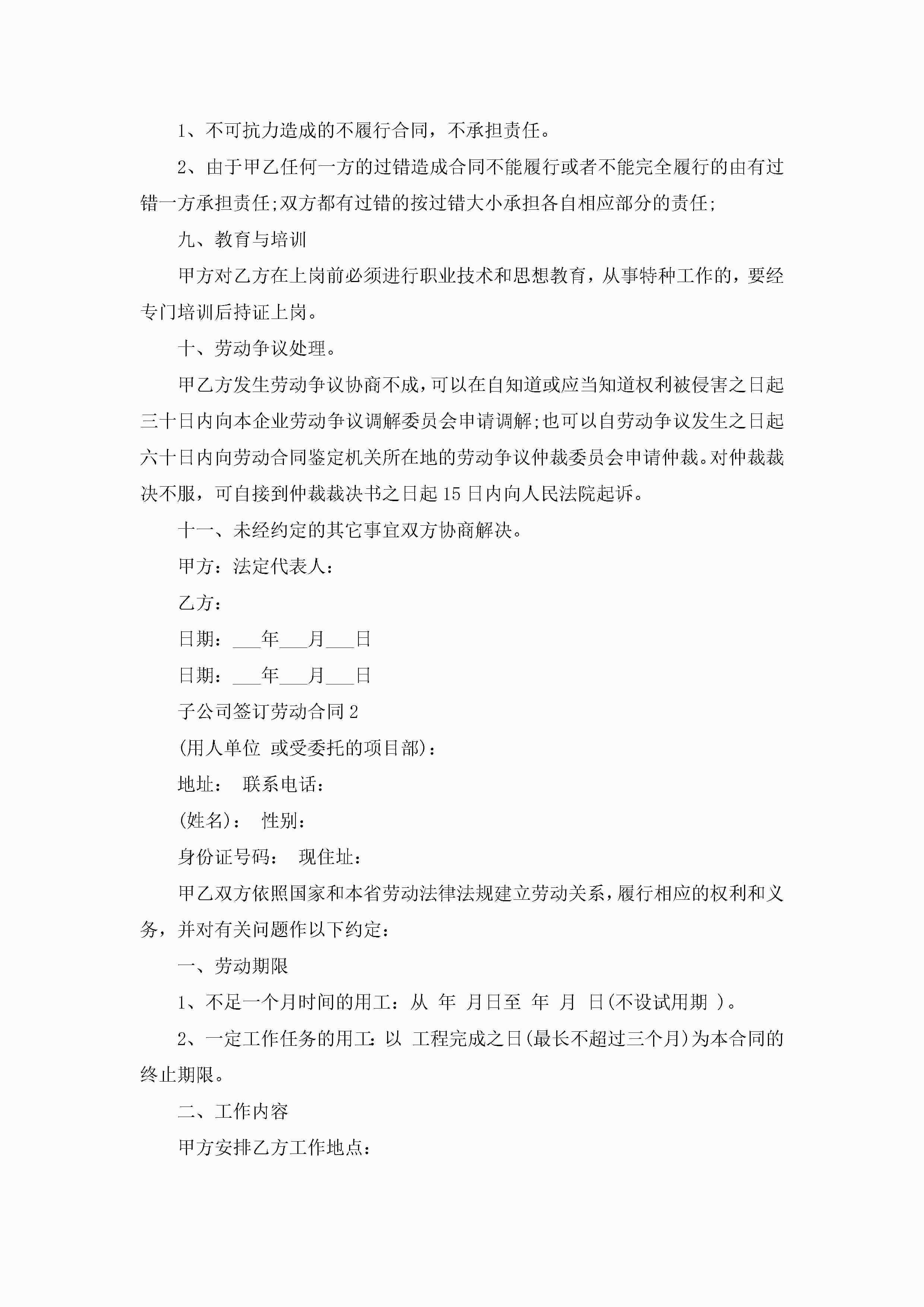关于子公司签订劳动合同5篇jugei3月23日 01:45发布关注206 关于子公司签订劳动合同5篇此内容为付费资源,请付费后查看¥10.9 单篇文档限时特惠¥15个人会员开通企业会员开通立即下载无需登陆!可直接快捷下载单个模板付费资源© 版权声明THE ENDWord模板# 实用文档# 实用模板# 合同模板# 劳动合同 如有问题,可点击最底部“联系我们”联系客服 分享QQ空间微博QQ好友海报分享复制链接收藏