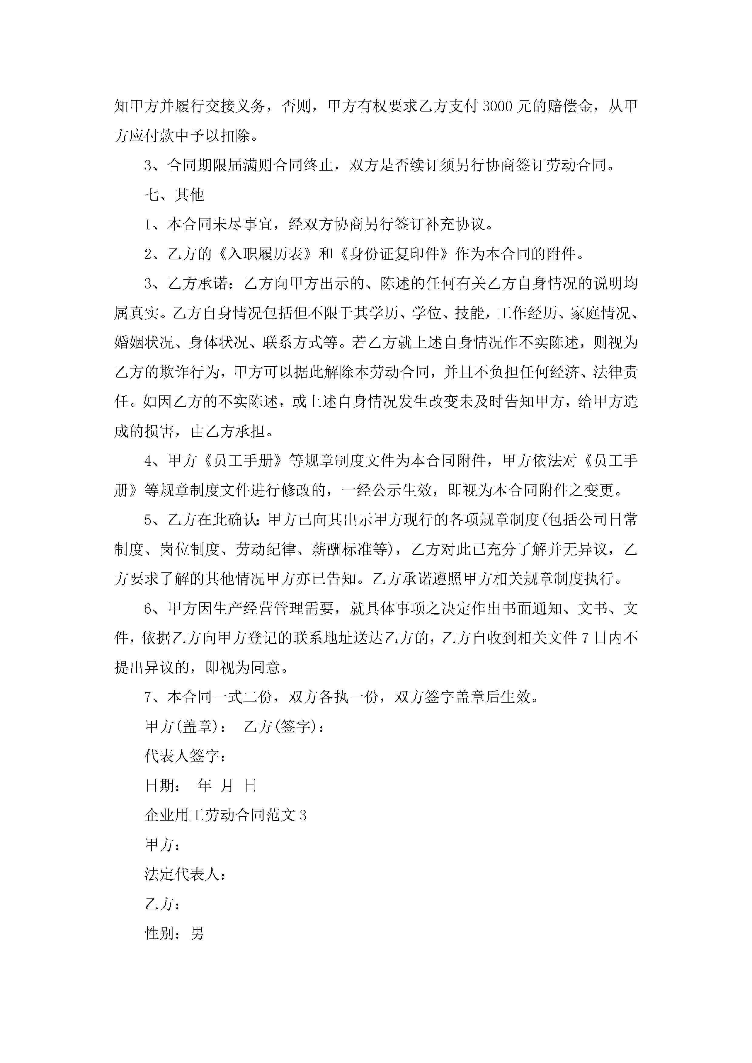 企业用工劳动合同范文5篇jugei3月23日 01:45发布关注346 企业用工劳动合同范文5篇此内容为付费资源,请付费后查看¥10.9 单篇文档限时特惠¥15个人会员开通企业会员开通立即下载无需登陆!可直接快捷下载单个模板付费资源© 版权声明THE ENDWord模板# 实用文档# 实用模板# 合同模板# 劳动合同 如有问题,可点击最底部“联系我们”联系客服 分享QQ空间微博QQ好友海报分享复制链接收藏