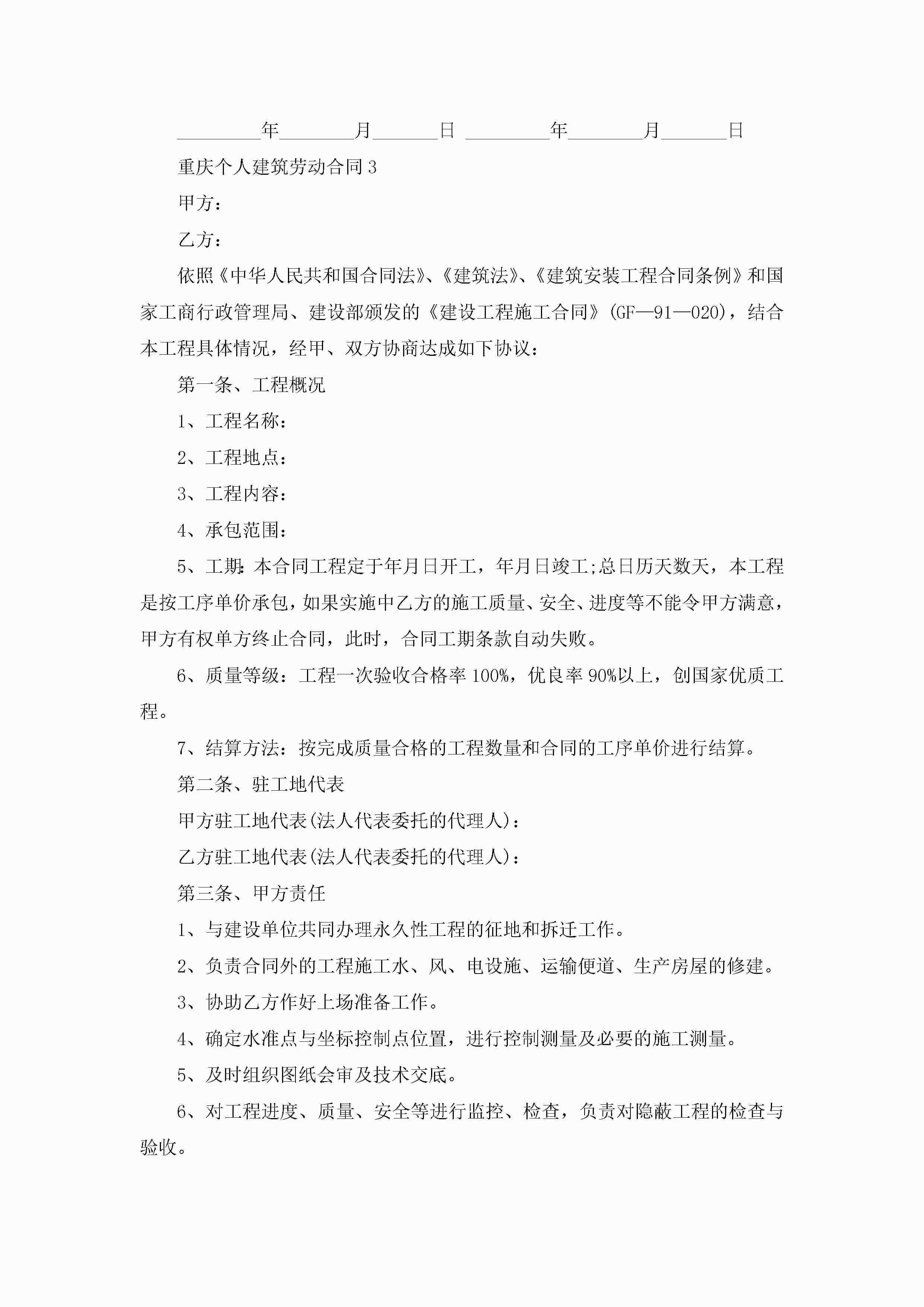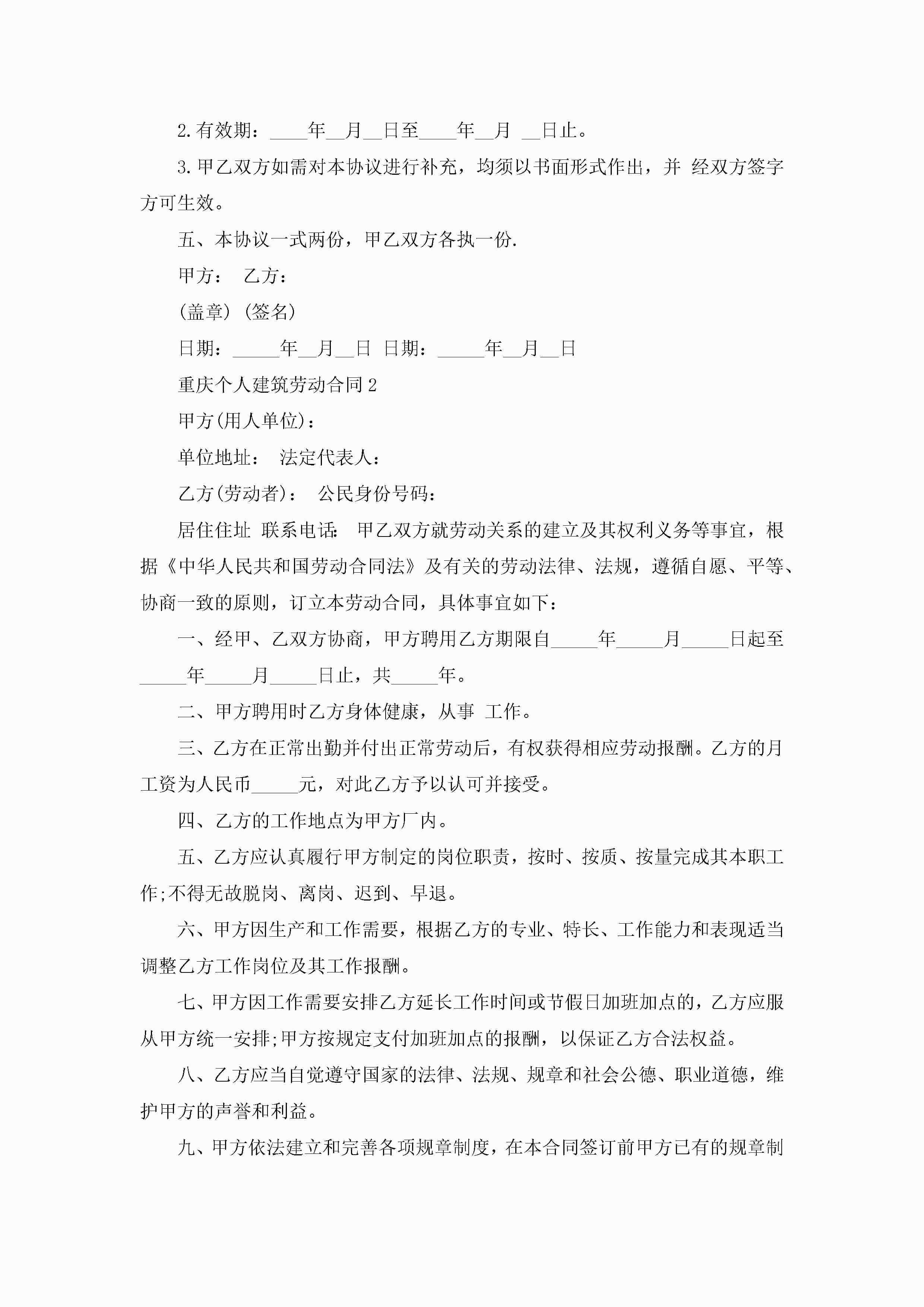 重庆个人建筑劳动合同5篇jugei3月23日 01:46发布关注221 重庆个人建筑劳动合同5篇此内容为付费资源,请付费后查看¥10.9 单篇文档限时特惠¥15个人会员开通企业会员开通立即下载无需登陆!可直接快捷下载单个模板付费资源© 版权声明THE ENDWord模板# 实用文档# 实用模板# 合同模板# 劳动合同 如有问题,可点击最底部“联系我们”联系客服 分享QQ空间微博QQ好友海报分享复制链接收藏