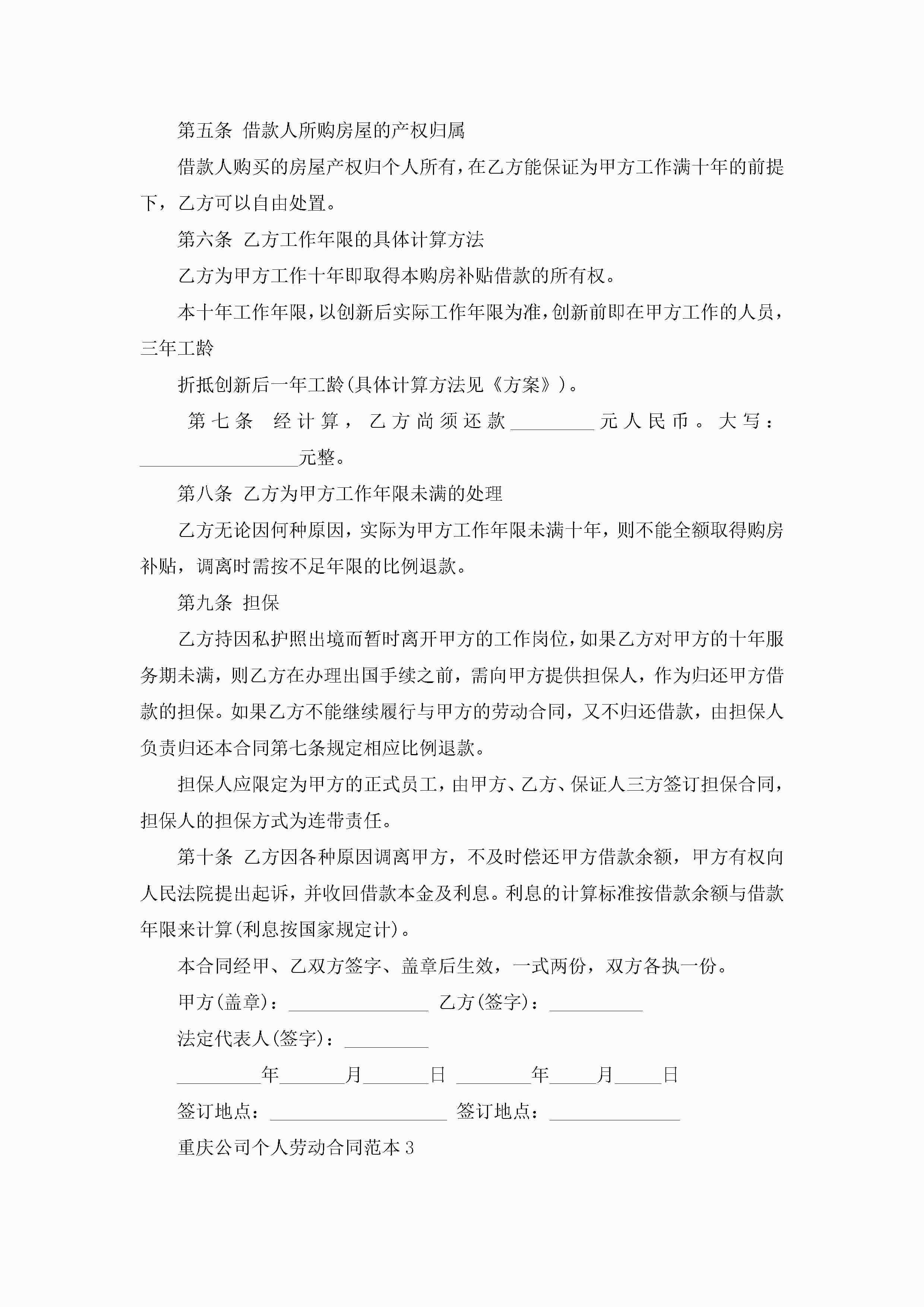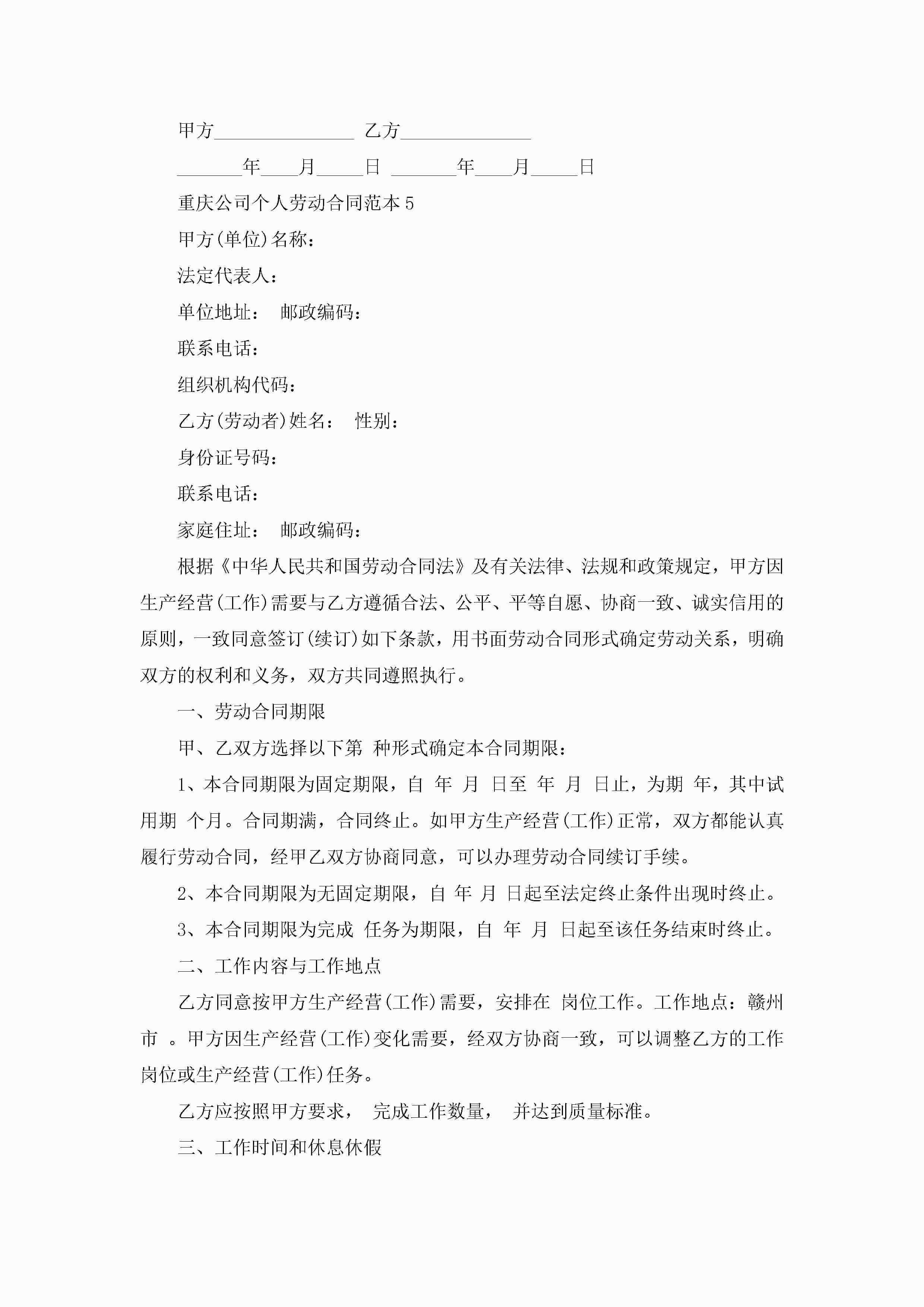 重庆公司个人劳动合同范本5篇jugei3月23日 01:46发布关注237 重庆公司个人劳动合同范本5篇此内容为付费资源,请付费后查看¥10.9 单篇文档限时特惠¥15个人会员开通企业会员开通立即下载无需登陆!可直接快捷下载单个模板付费资源© 版权声明THE ENDWord模板# 实用文档# 实用模板# 合同模板# 劳动合同 如有问题,可点击最底部“联系我们”联系客服 分享QQ空间微博QQ好友海报分享复制链接收藏