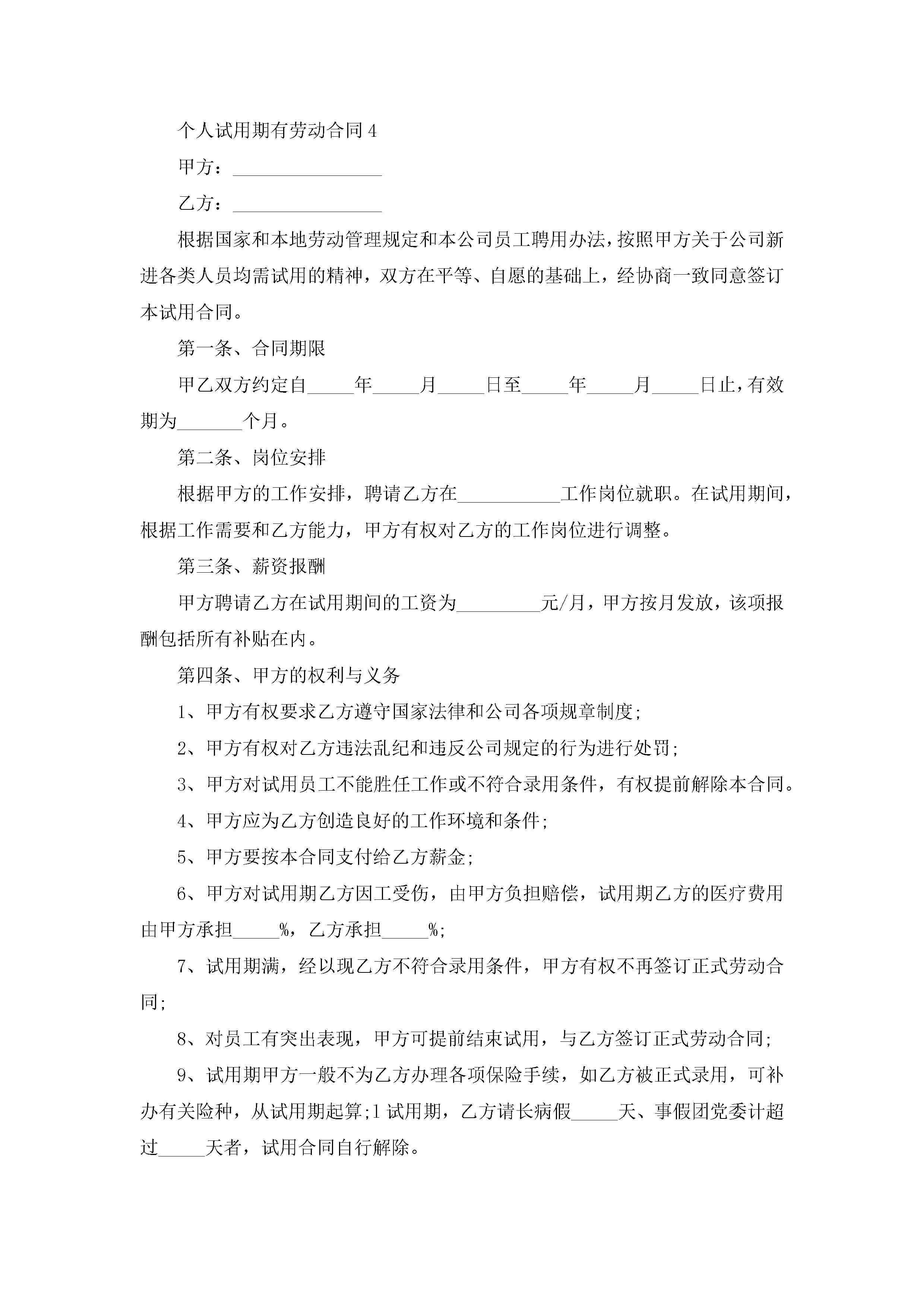 个人试用期有劳动合同5篇jugei3月23日 01:46发布关注189 个人试用期有劳动合同5篇此内容为付费资源,请付费后查看¥10.9 单篇文档限时特惠¥15个人会员开通企业会员开通立即下载无需登陆!可直接快捷下载单个模板付费资源© 版权声明THE ENDWord模板# 实用文档# 实用模板# 合同模板# 劳动合同 如有问题,可点击最底部“联系我们”联系客服 分享QQ空间微博QQ好友海报分享复制链接收藏