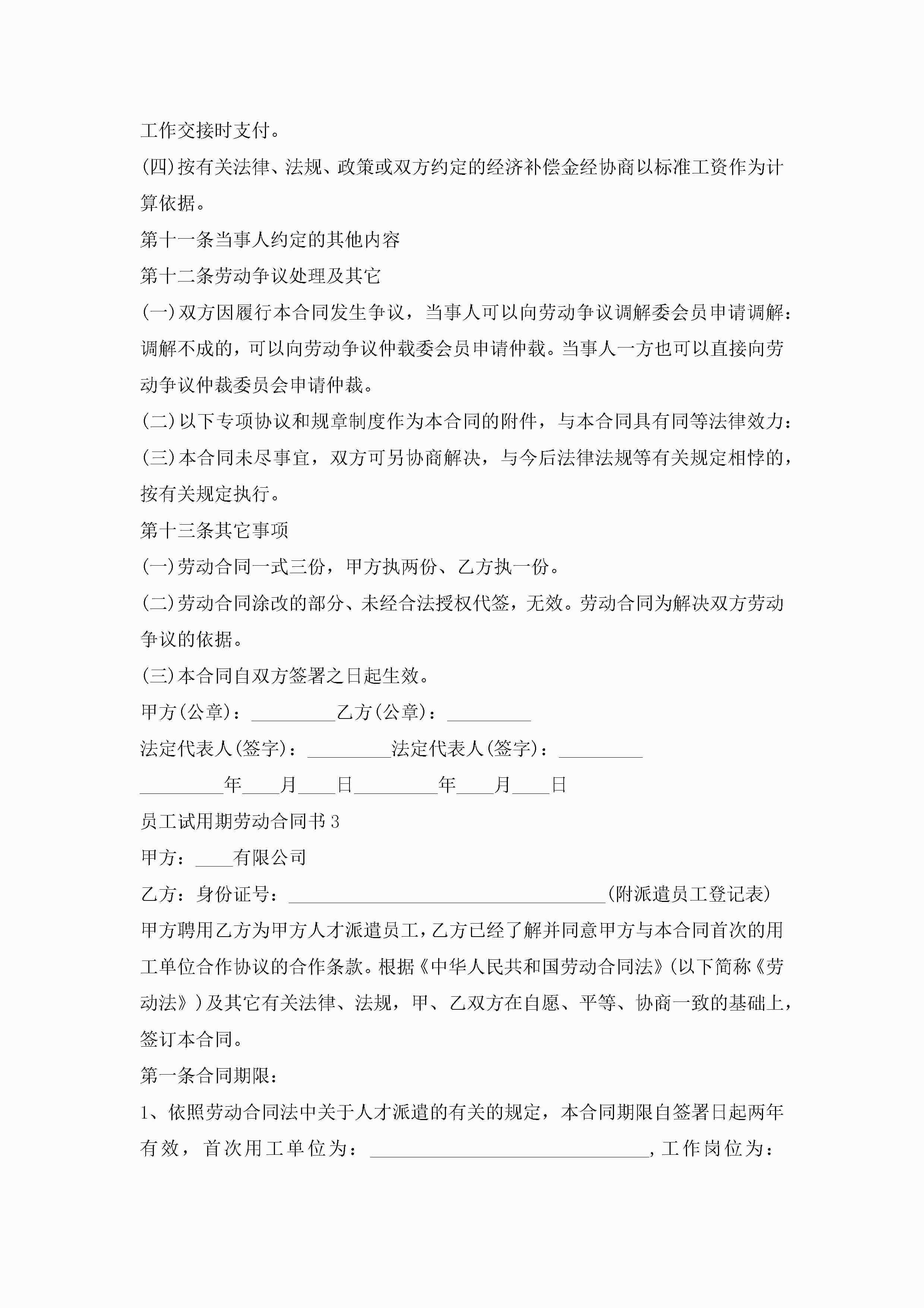 员工试用期劳动合同书5篇jugei3月23日 01:46发布关注190 员工试用期劳动合同书5篇此内容为付费资源,请付费后查看¥10.9 单篇文档限时特惠¥15个人会员开通企业会员开通立即下载无需登陆!可直接快捷下载单个模板付费资源© 版权声明THE ENDWord模板# 实用文档# 实用模板# 合同模板# 劳动合同 如有问题,可点击最底部“联系我们”联系客服 分享QQ空间微博QQ好友海报分享复制链接收藏
