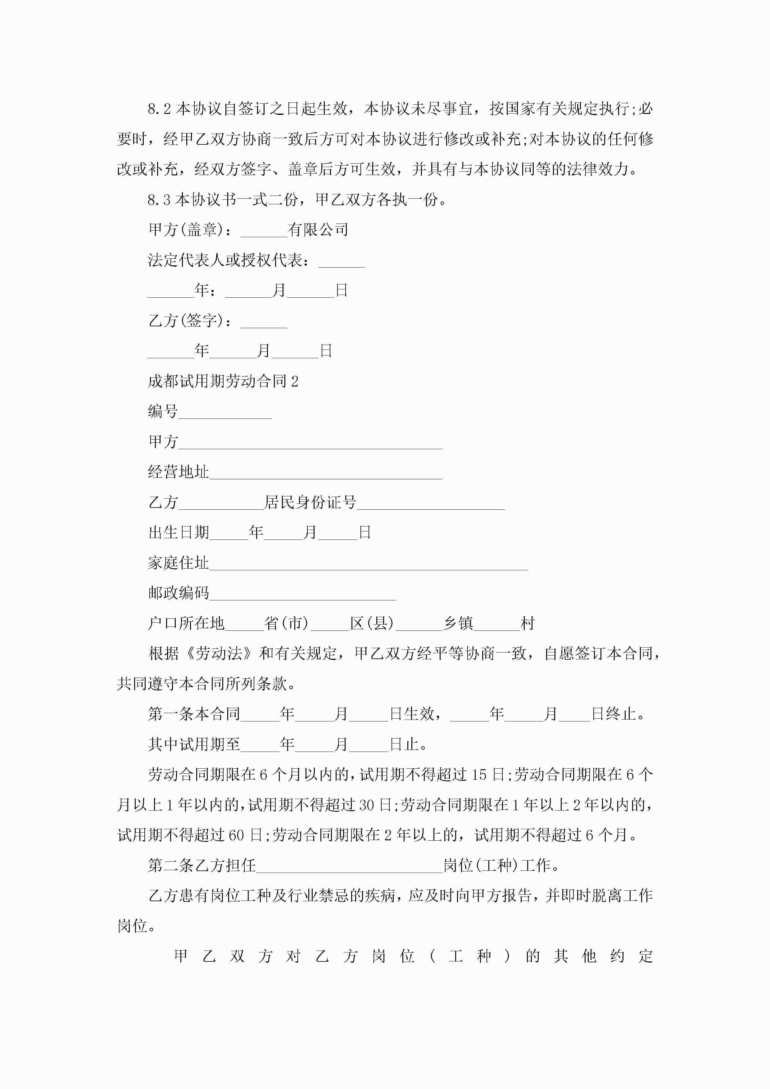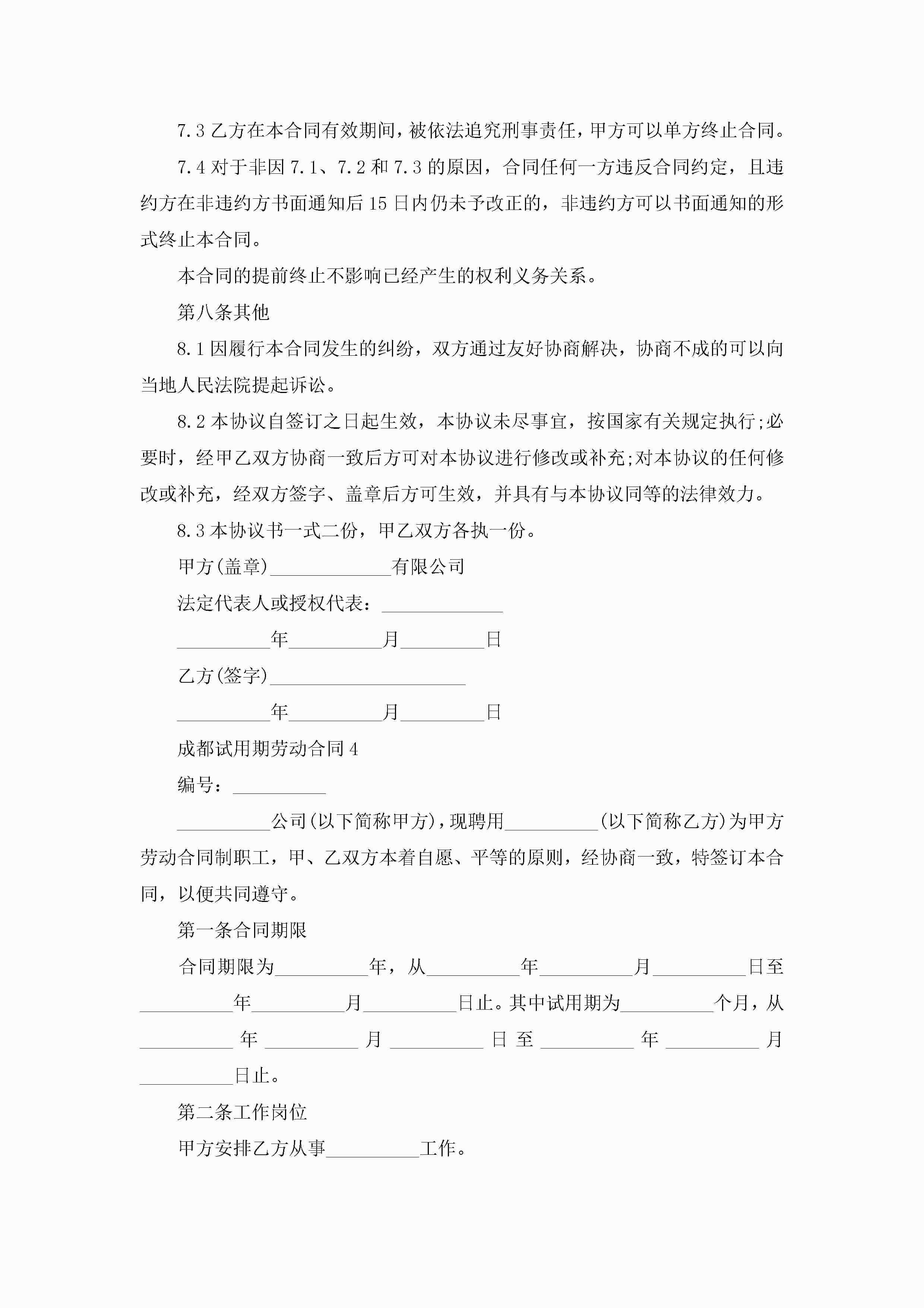 成都试用期劳动合同5篇jugei3月23日 01:46发布关注201 成都试用期劳动合同5篇此内容为付费资源,请付费后查看¥10.9 单篇文档限时特惠¥15个人会员开通企业会员开通立即下载无需登陆!可直接快捷下载单个模板付费资源© 版权声明THE ENDWord模板# 实用文档# 实用模板# 合同模板# 劳动合同 如有问题,可点击最底部“联系我们”联系客服 分享QQ空间微博QQ好友海报分享复制链接收藏