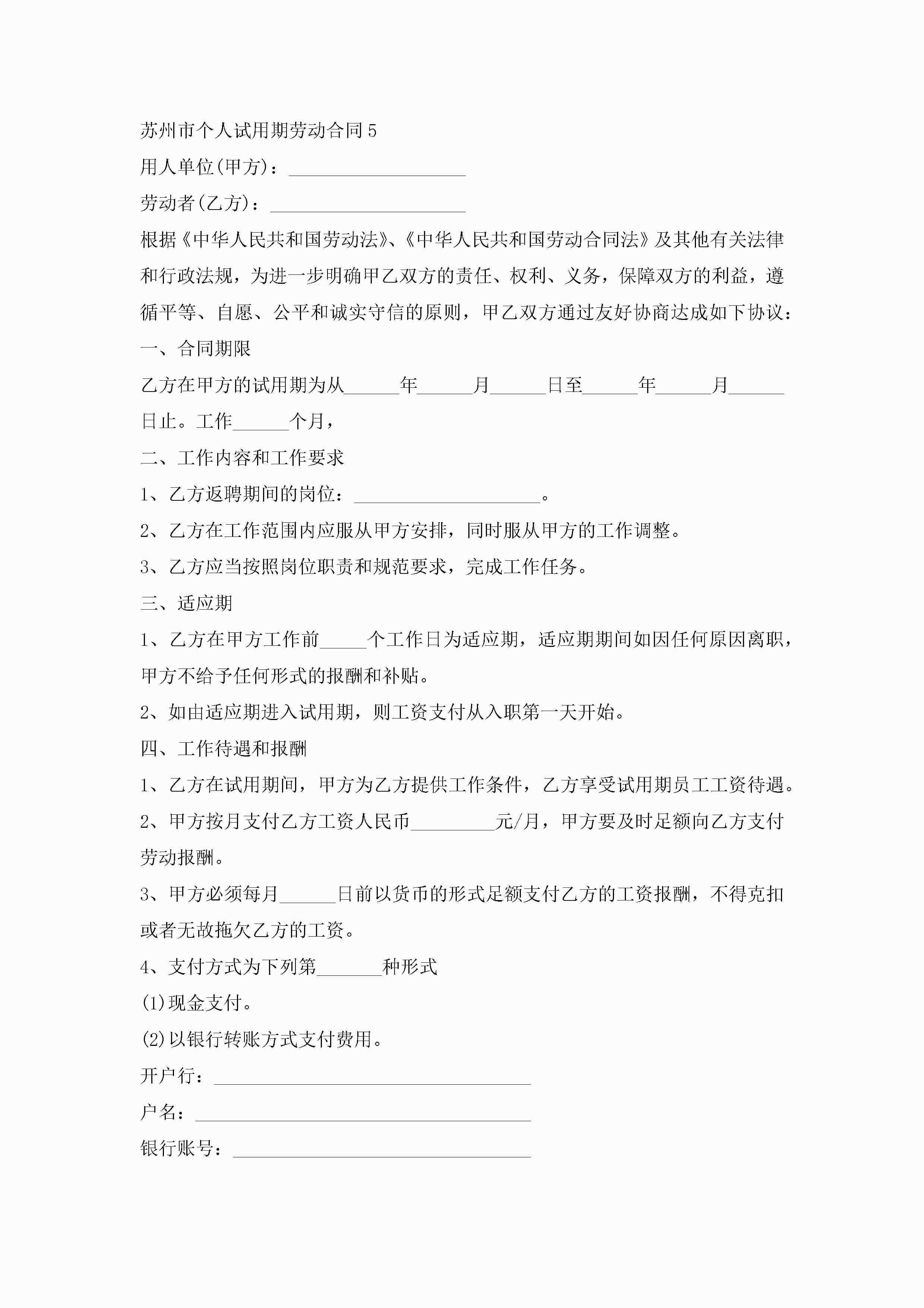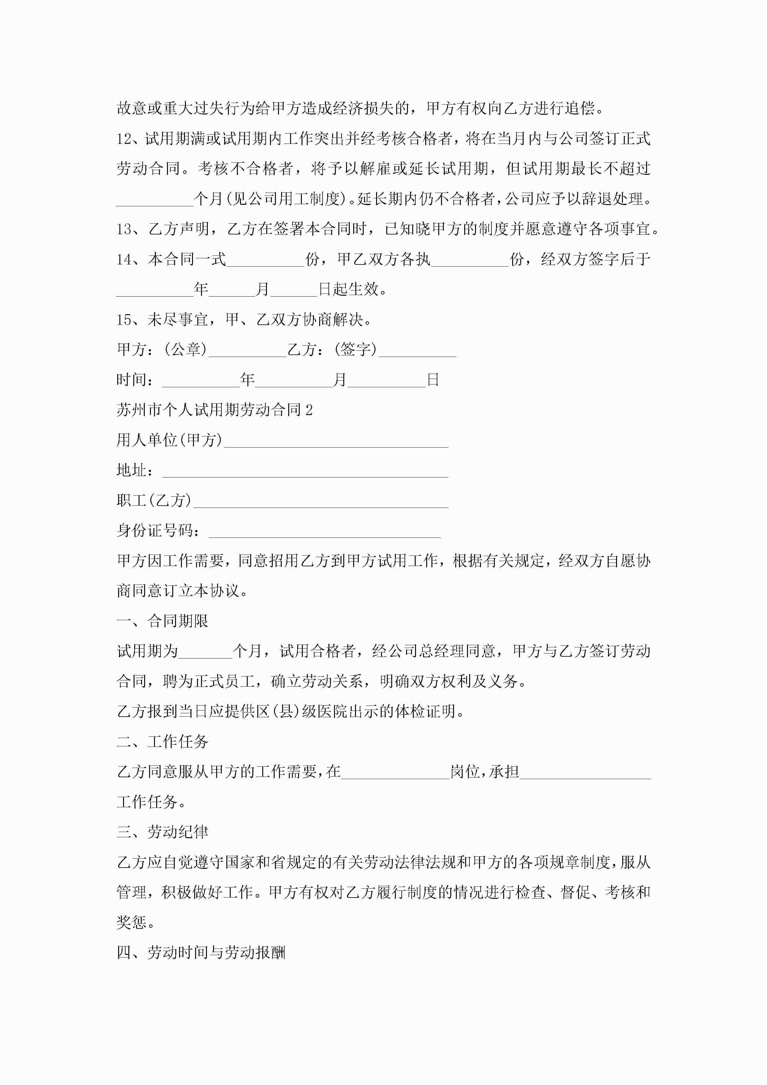 苏州市个人试用期劳动合同5篇jugei3月23日 01:46发布关注237 苏州市个人试用期劳动合同5篇此内容为付费资源,请付费后查看¥10.9 单篇文档限时特惠¥15个人会员开通企业会员开通立即下载无需登陆!可直接快捷下载单个模板付费资源© 版权声明THE ENDWord模板# 实用文档# 实用模板# 合同模板# 劳动合同 如有问题,可点击最底部“联系我们”联系客服 分享QQ空间微博QQ好友海报分享复制链接收藏