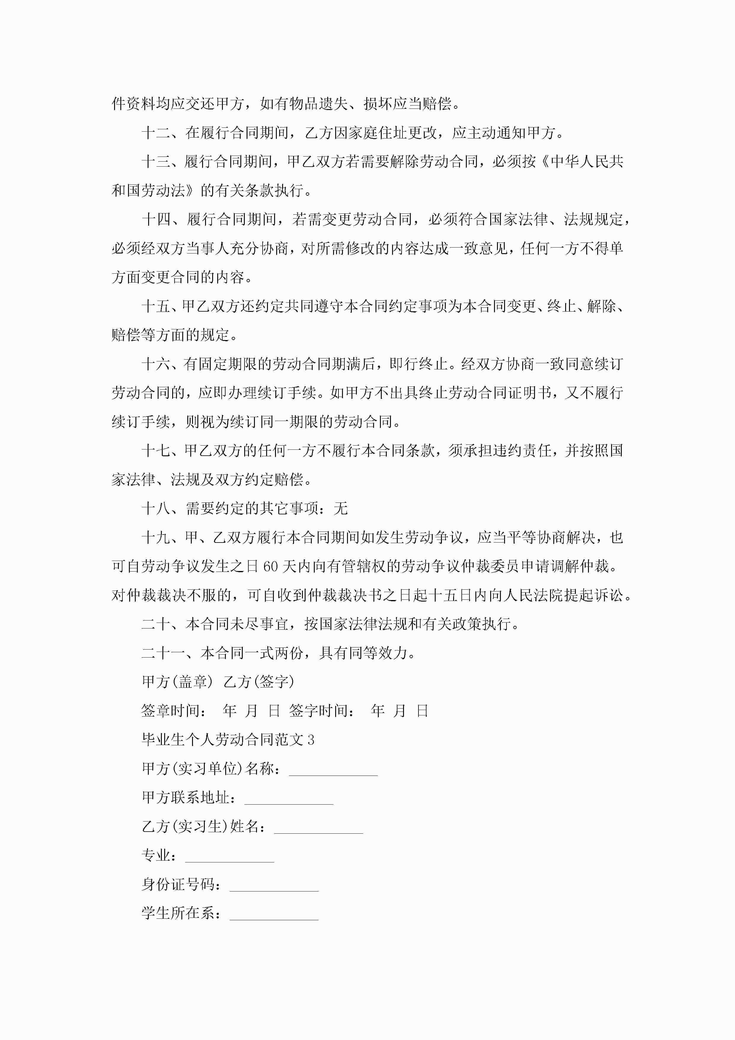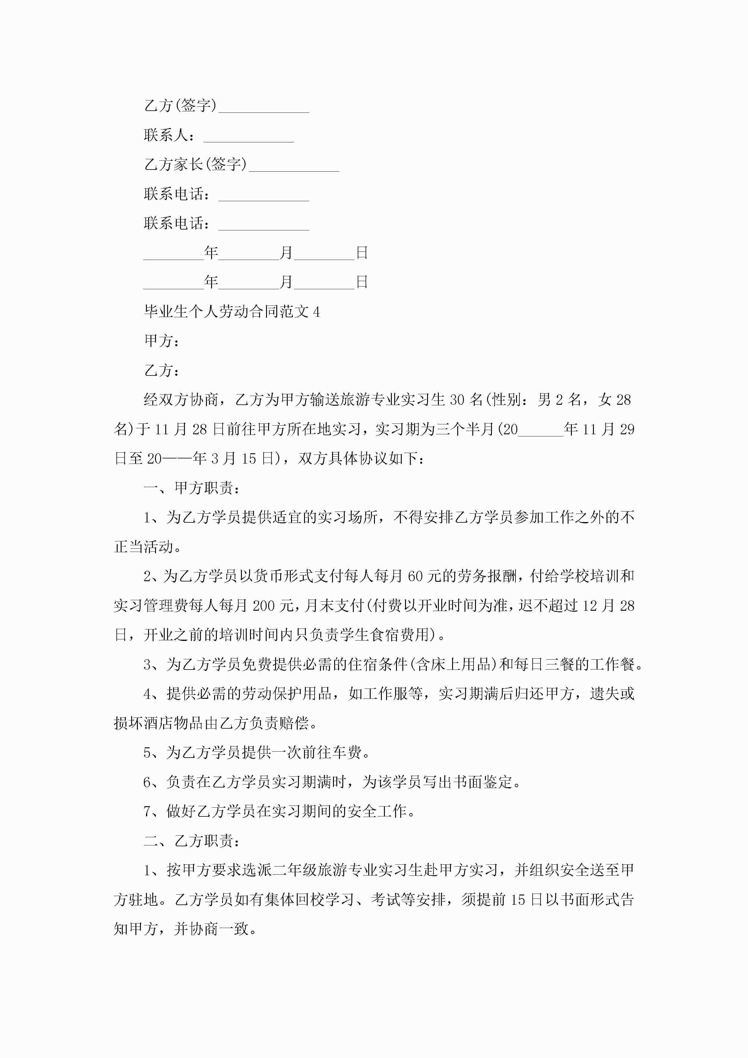 毕业生个人劳动合同范文5篇jugei3月23日 01:46发布关注241 毕业生个人劳动合同范文5篇此内容为付费资源,请付费后查看¥10.9 单篇文档限时特惠¥15个人会员开通企业会员开通立即下载无需登陆!可直接快捷下载单个模板付费资源© 版权声明THE ENDWord模板# 实用文档# 实用模板# 合同模板# 劳动合同 如有问题,可点击最底部“联系我们”联系客服 分享QQ空间微博QQ好友海报分享复制链接收藏