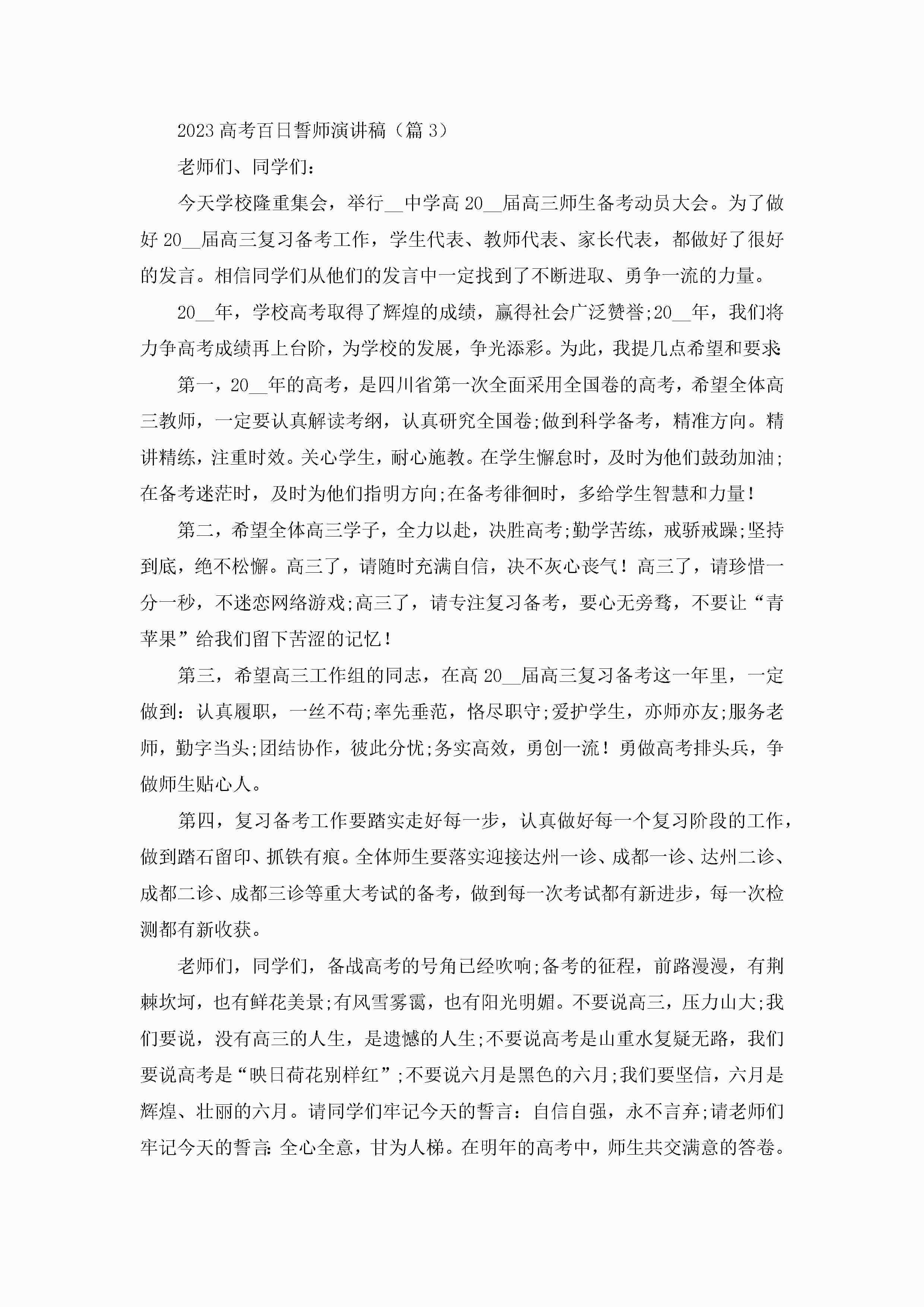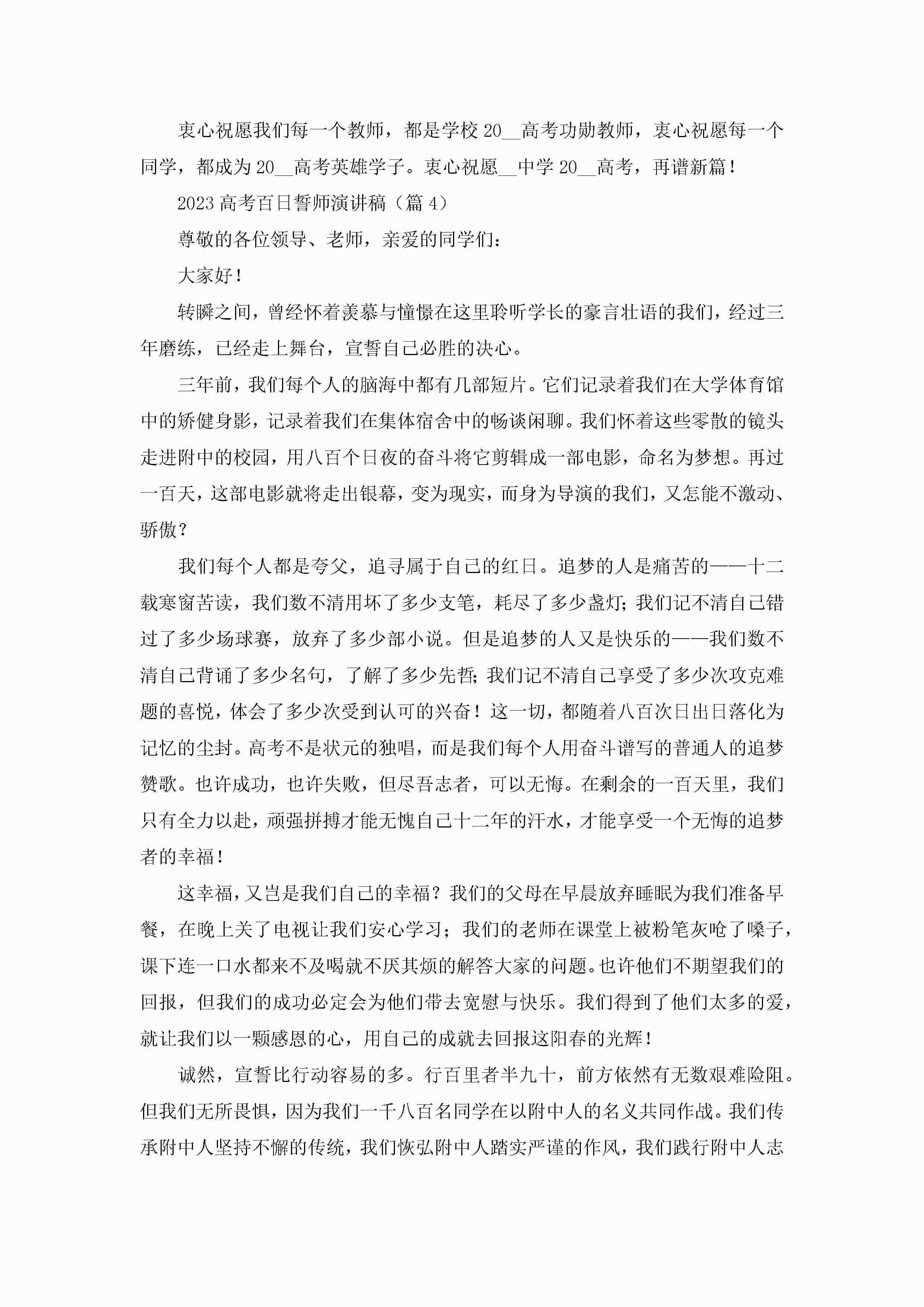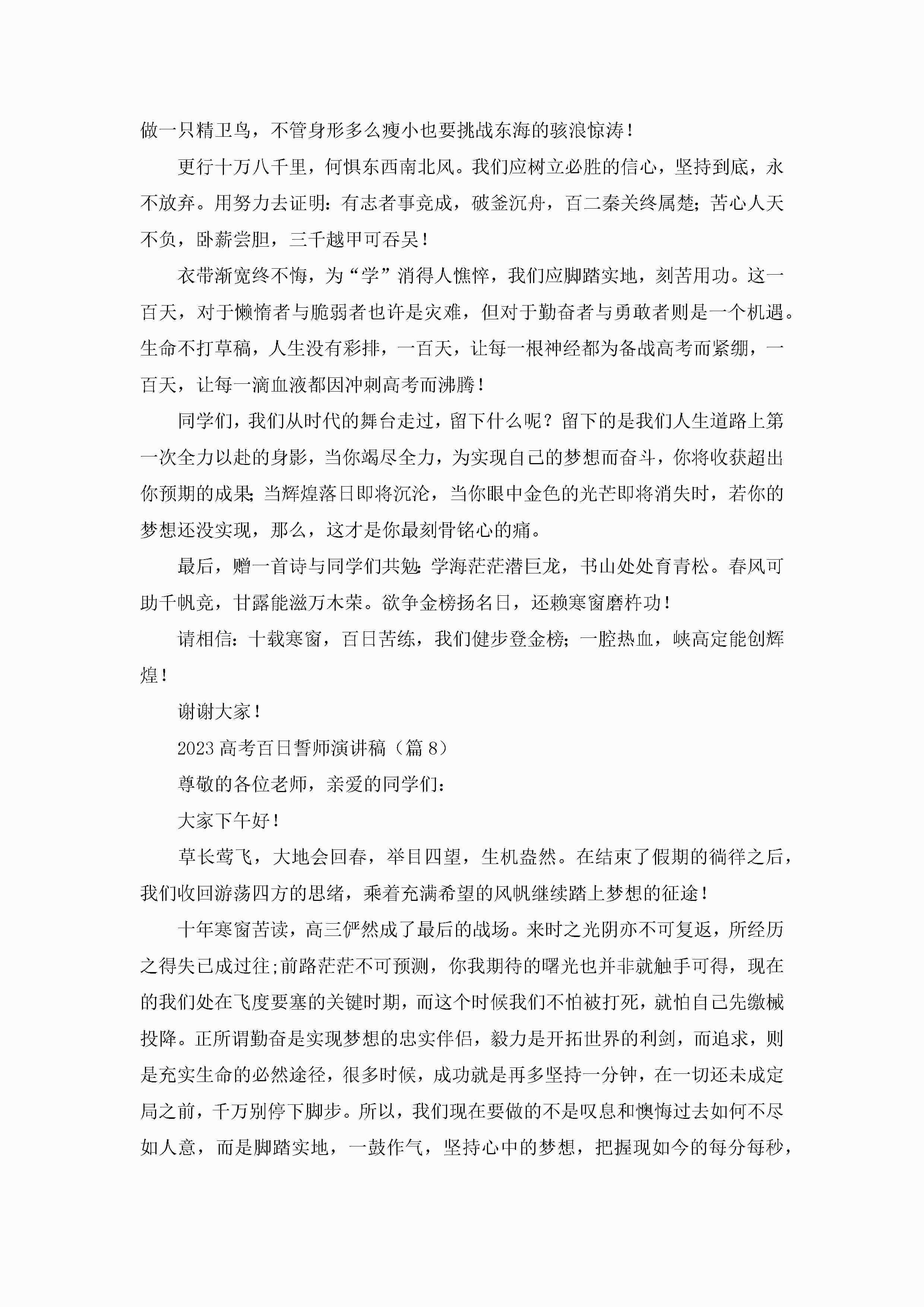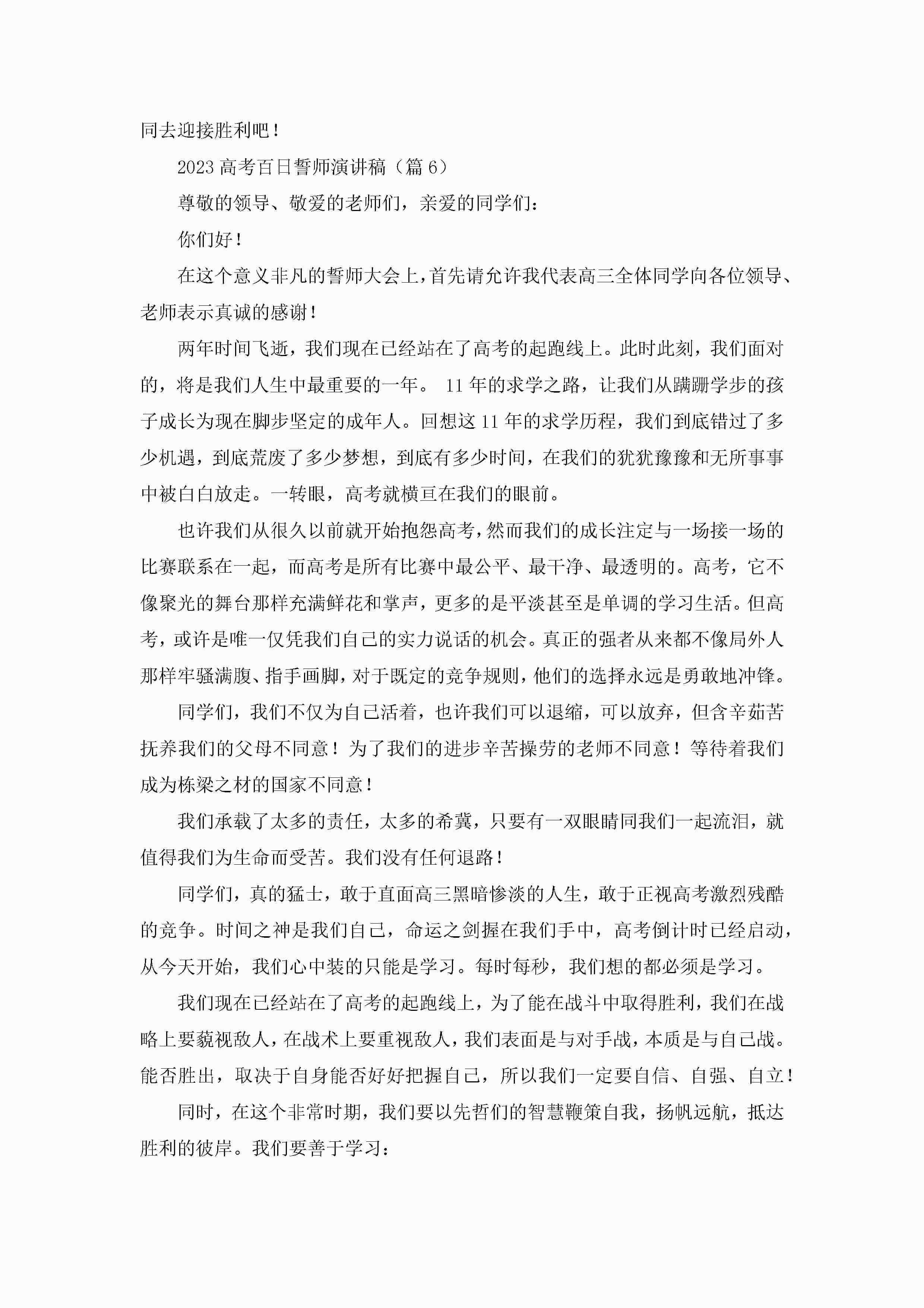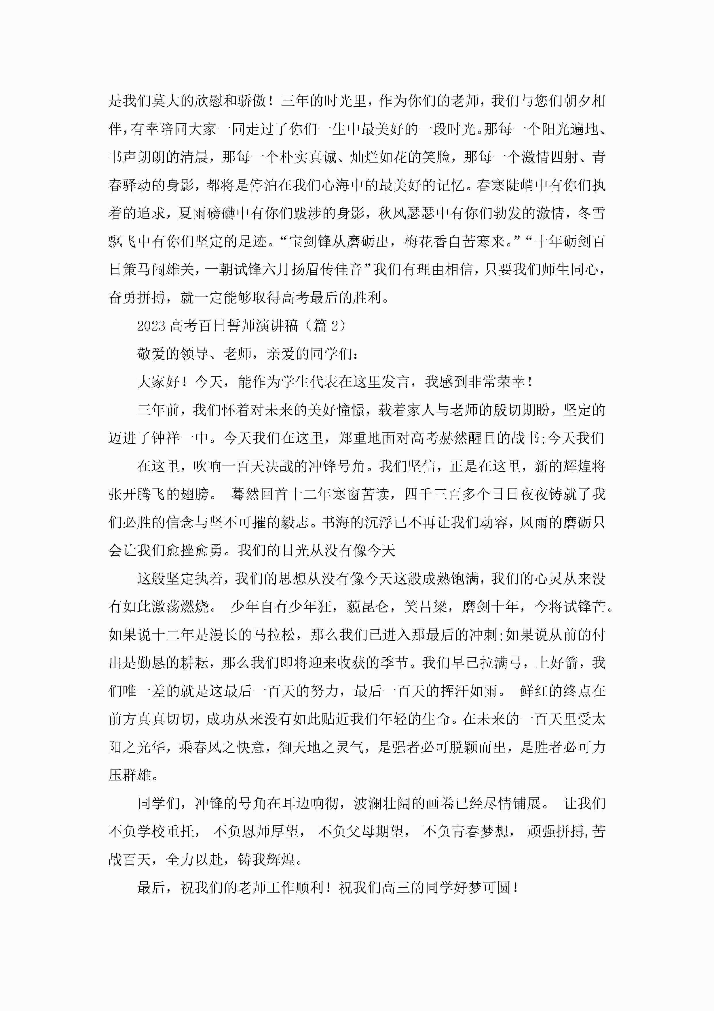 2023高考百日誓师演讲稿【13篇】jugei3月23日 01:46发布关注194 2023高考百日誓师演讲稿【13篇】此内容为付费资源,请付费后查看¥10.9 单篇文档限时特惠¥15个人会员开通企业会员开通立即下载无需登陆!可直接快捷下载单个模板付费资源© 版权声明THE ENDWord模板# 实用文档# 演讲稿# 经典演讲稿# 实用写作# 2023高考百日誓师演讲稿13篇 如有问题,可点击最底部“联系我们”联系客服 分享QQ空间微博QQ好友海报分享复制链接收藏
