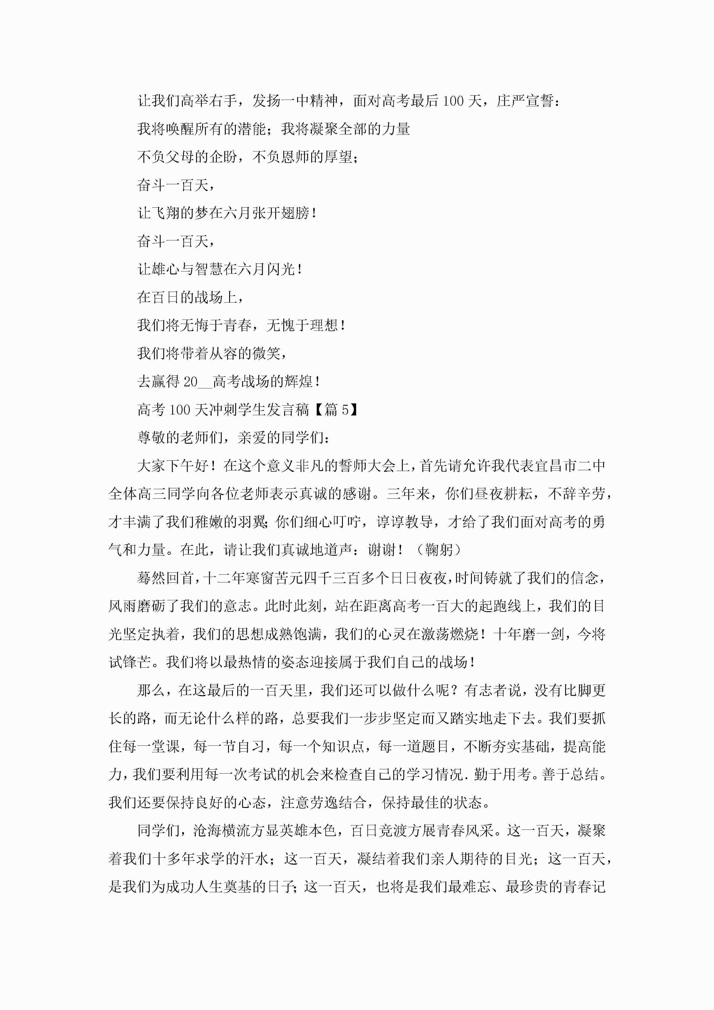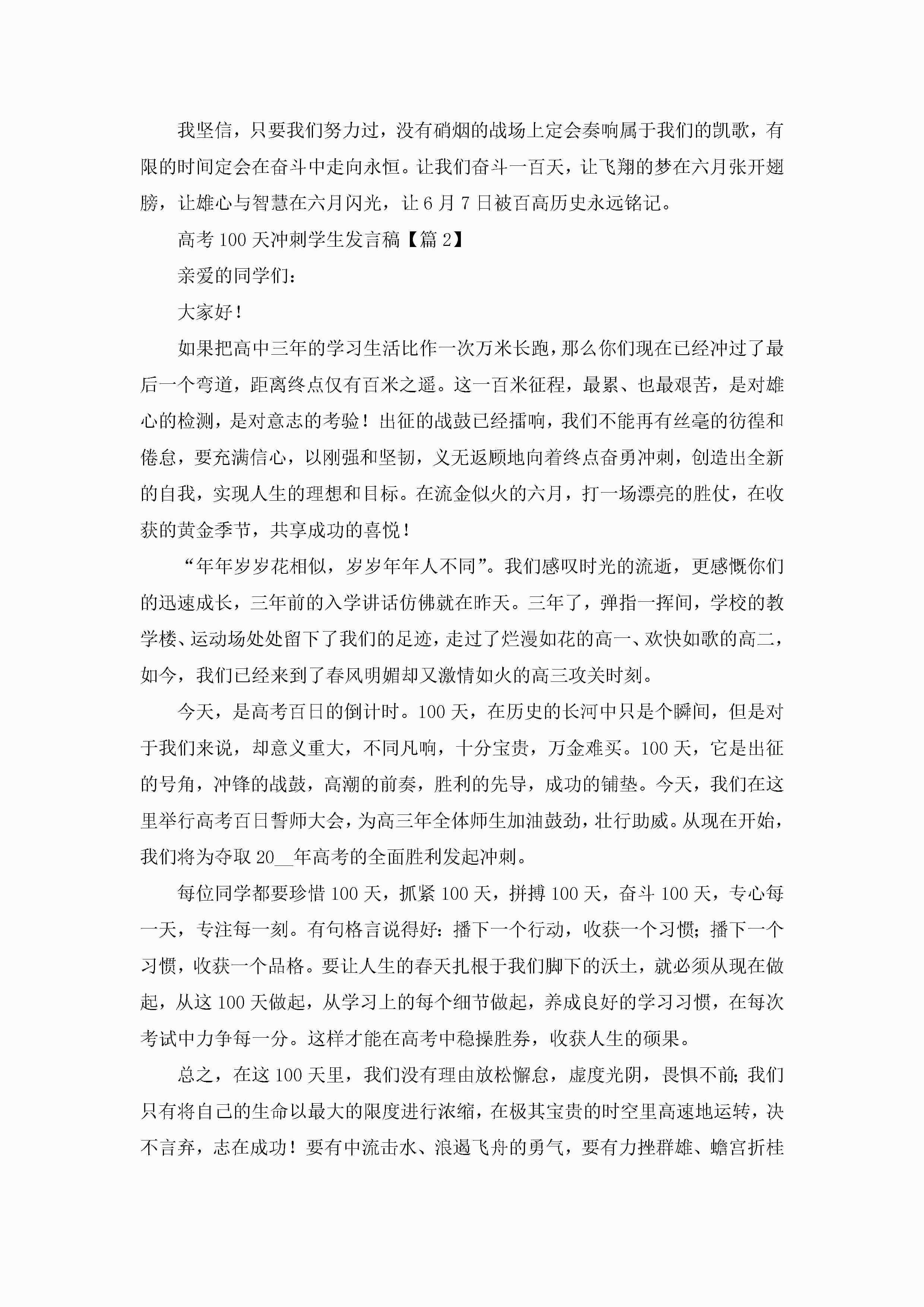 高考100天冲刺学生发言稿范文10篇jugei3月23日 01:46发布关注195 高考100天冲刺学生发言稿范文10篇此内容为付费资源,请付费后查看¥10.9 单篇文档限时特惠¥15个人会员开通企业会员开通立即下载无需登陆!可直接快捷下载单个模板付费资源© 版权声明THE ENDWord模板# 实用文档# 演讲稿# 经典演讲稿# 实用写作# 高考100天冲刺学生发言稿10篇 如有问题,可点击最底部“联系我们”联系客服 分享QQ空间微博QQ好友海报分享复制链接收藏