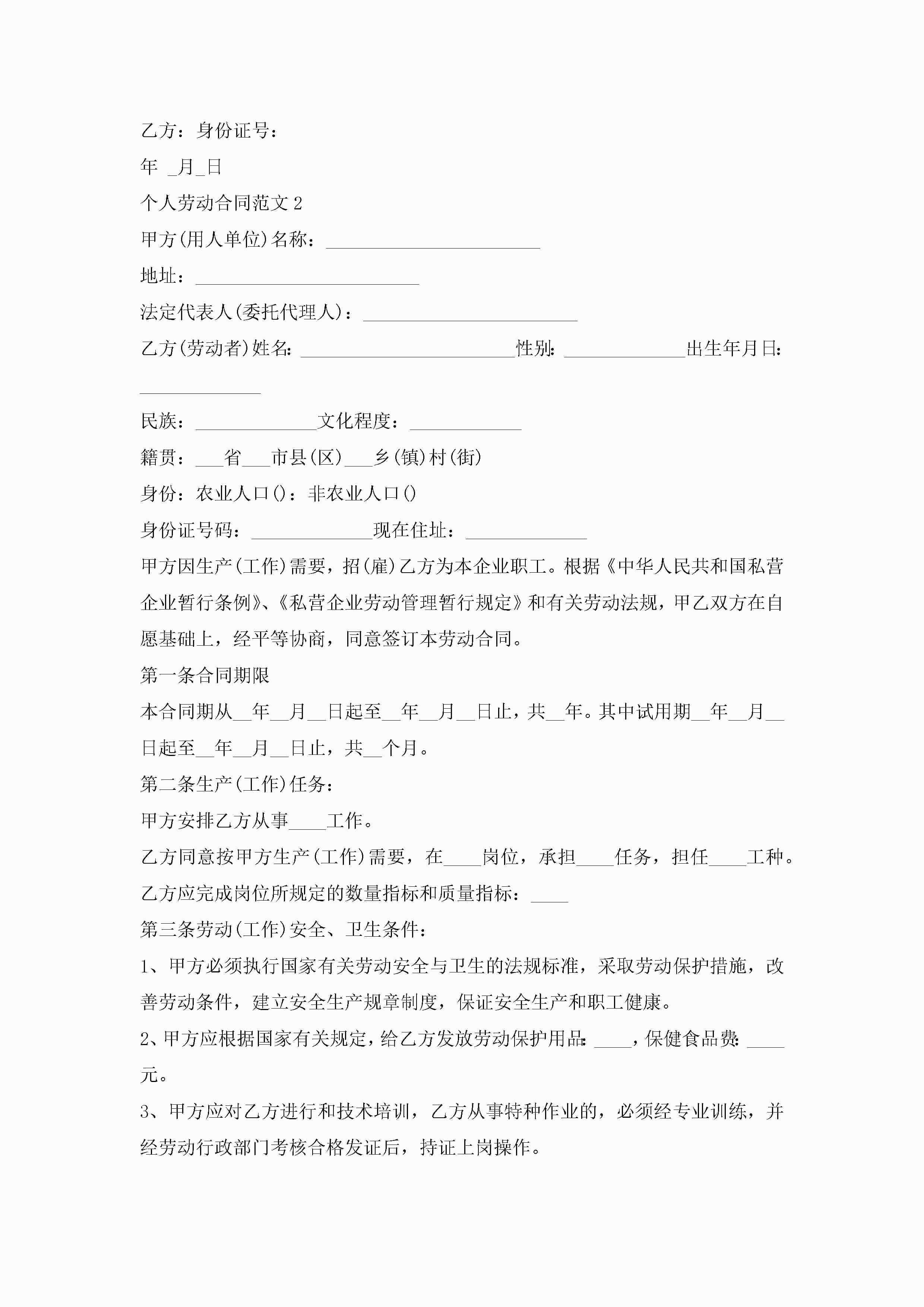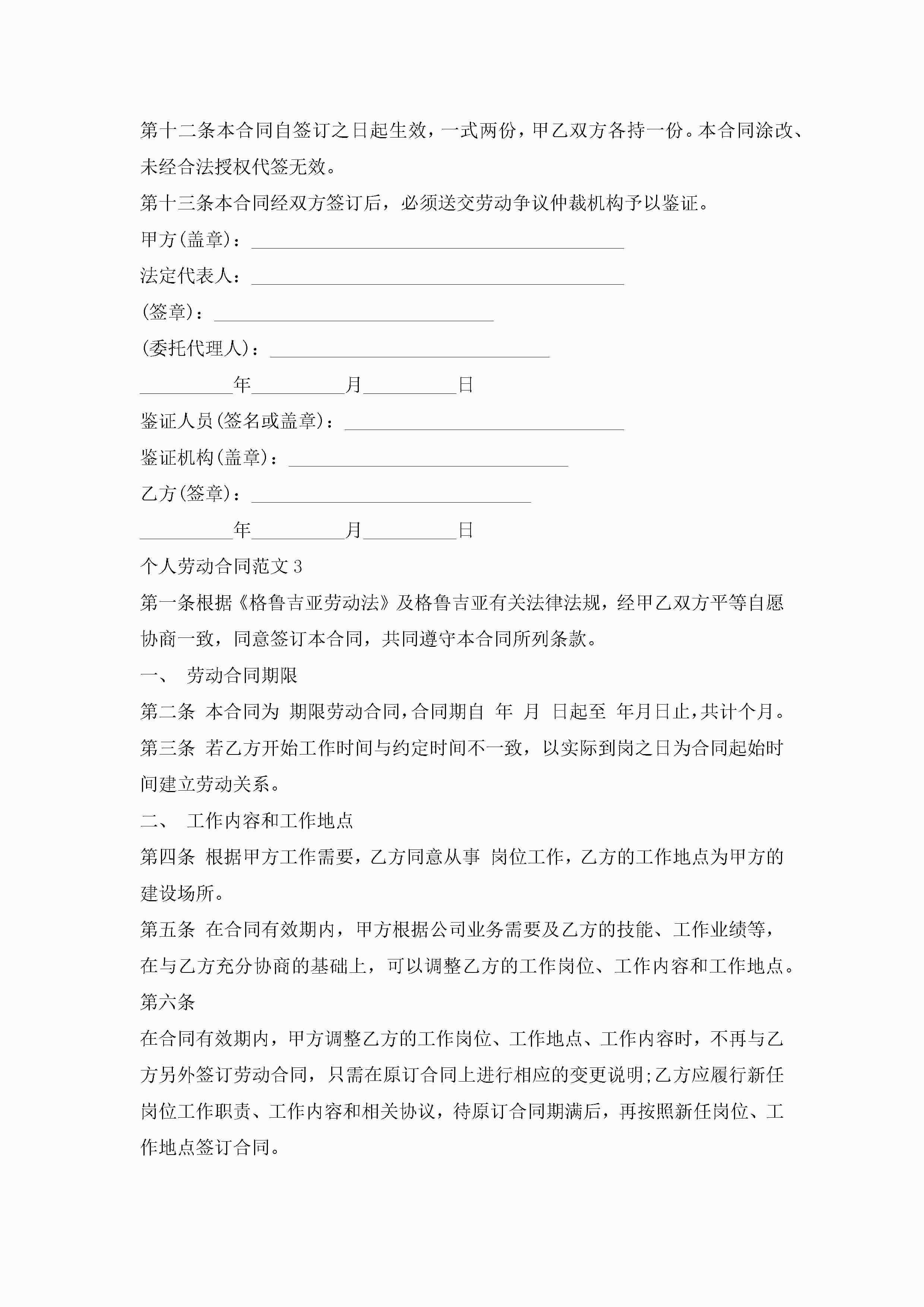 个人劳动合同范文5篇jugei3月23日 01:46发布关注187 个人劳动合同范文5篇此内容为付费资源,请付费后查看¥10.9 单篇文档限时特惠¥15个人会员开通企业会员开通立即下载无需登陆!可直接快捷下载单个模板付费资源© 版权声明THE ENDWord模板# 实用文档# 实用模板# 合同模板# 劳动合同 如有问题,可点击最底部“联系我们”联系客服 分享QQ空间微博QQ好友海报分享复制链接收藏