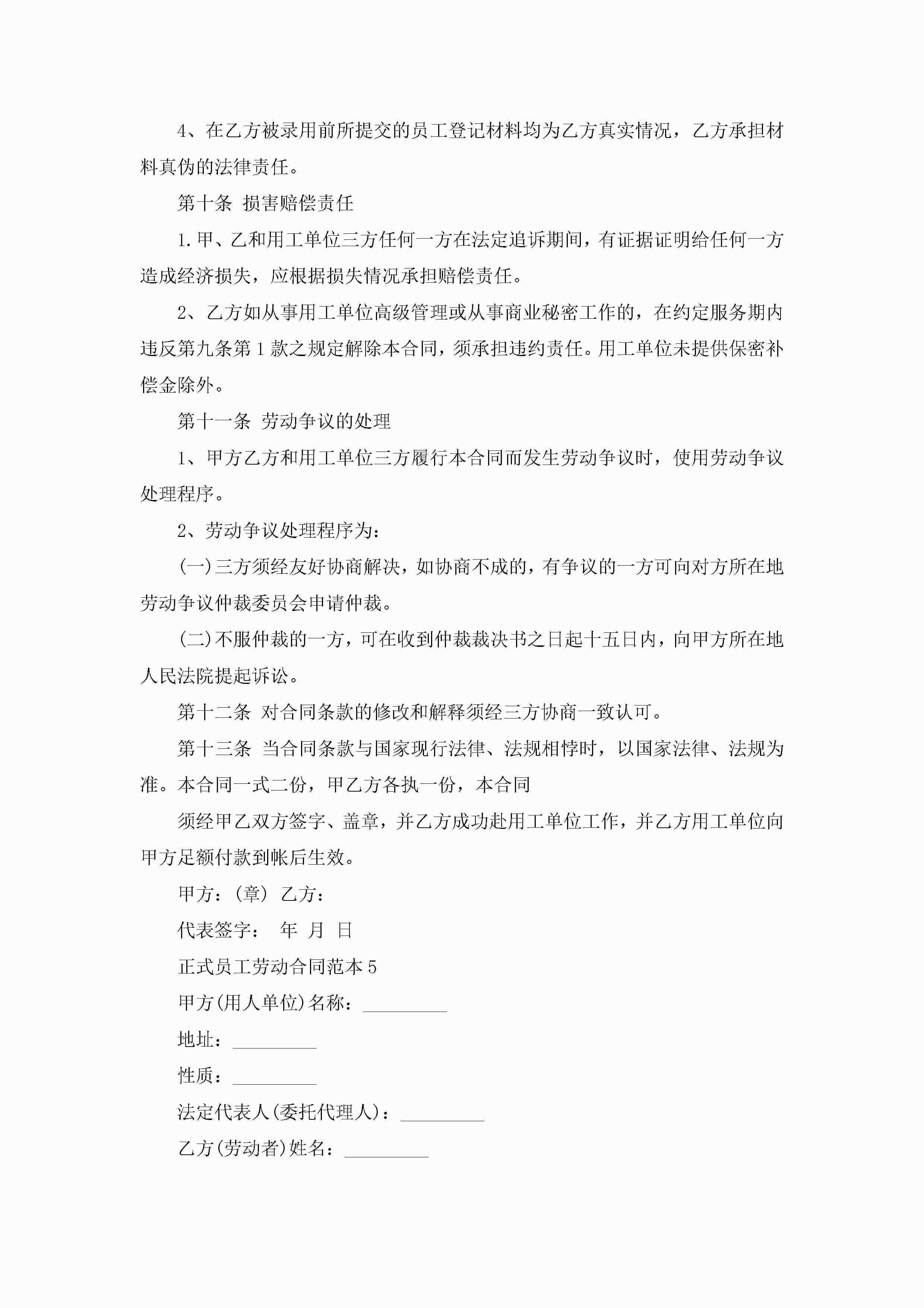 关于正式员工劳动合同范本5篇jugei3月23日 01:46发布关注189 关于正式员工劳动合同范本5篇此内容为付费资源,请付费后查看¥10.9 单篇文档限时特惠¥15个人会员开通企业会员开通立即下载无需登陆!可直接快捷下载单个模板付费资源© 版权声明THE ENDWord模板# 实用文档# 实用模板# 合同模板# 劳动合同 如有问题,可点击最底部“联系我们”联系客服 分享QQ空间微博QQ好友海报分享复制链接收藏