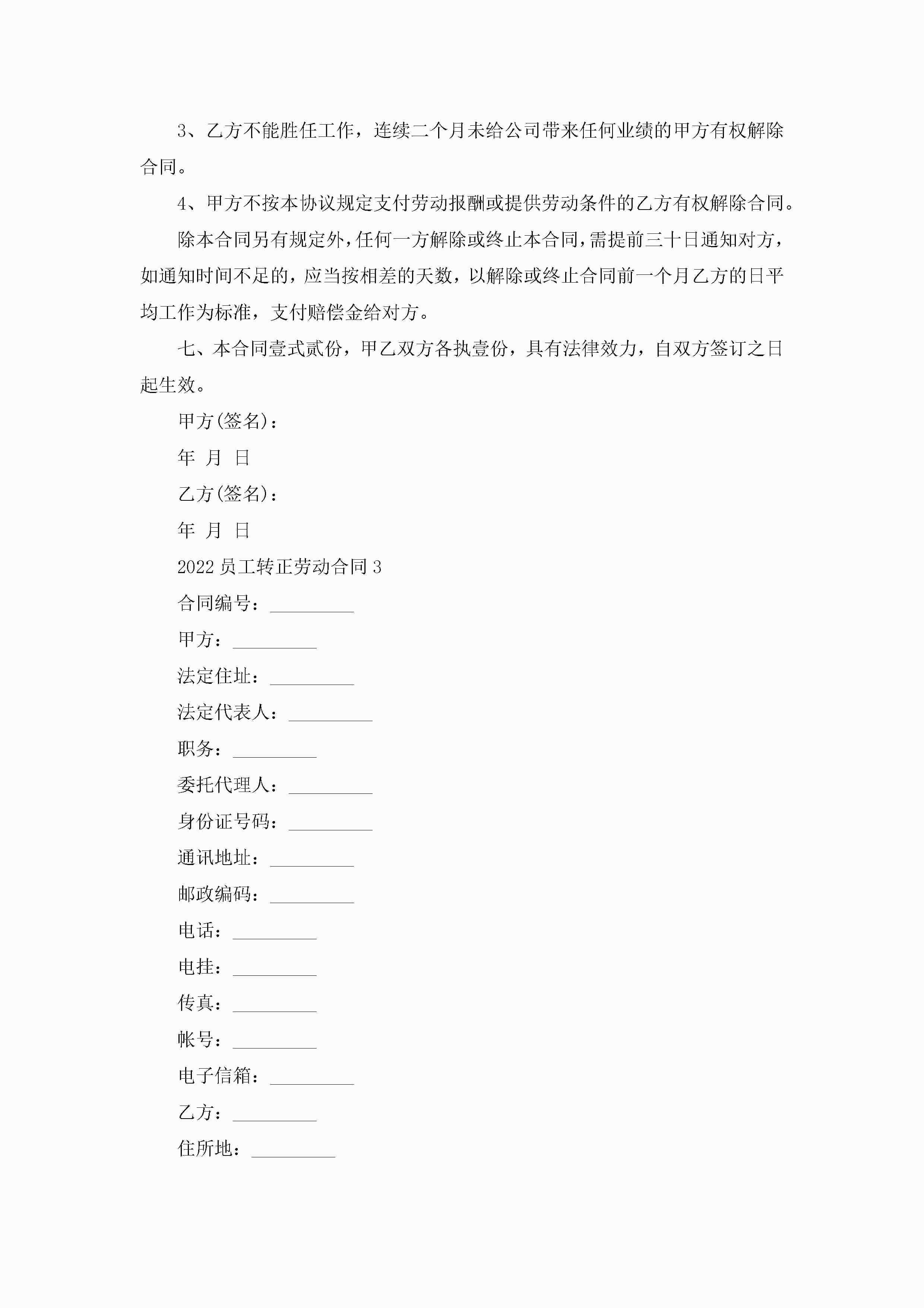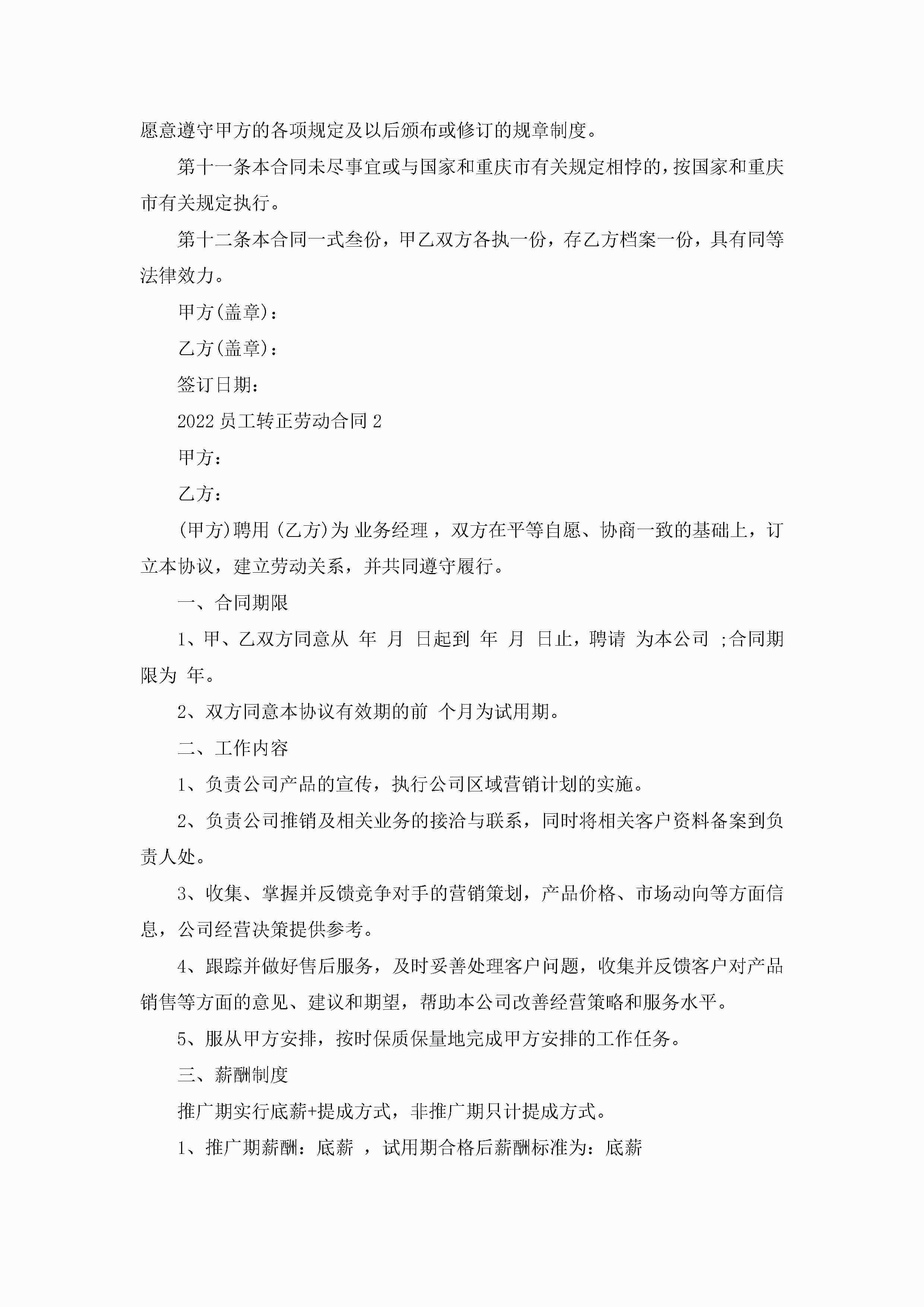 2022员工转正劳动合同5篇jugei3月23日 01:46发布关注184 2022员工转正劳动合同5篇此内容为付费资源,请付费后查看¥10.9 单篇文档限时特惠¥15个人会员开通企业会员开通立即下载无需登陆!可直接快捷下载单个模板付费资源© 版权声明THE ENDWord模板# 实用文档# 实用模板# 合同模板# 劳动合同 如有问题,可点击最底部“联系我们”联系客服 分享QQ空间微博QQ好友海报分享复制链接收藏