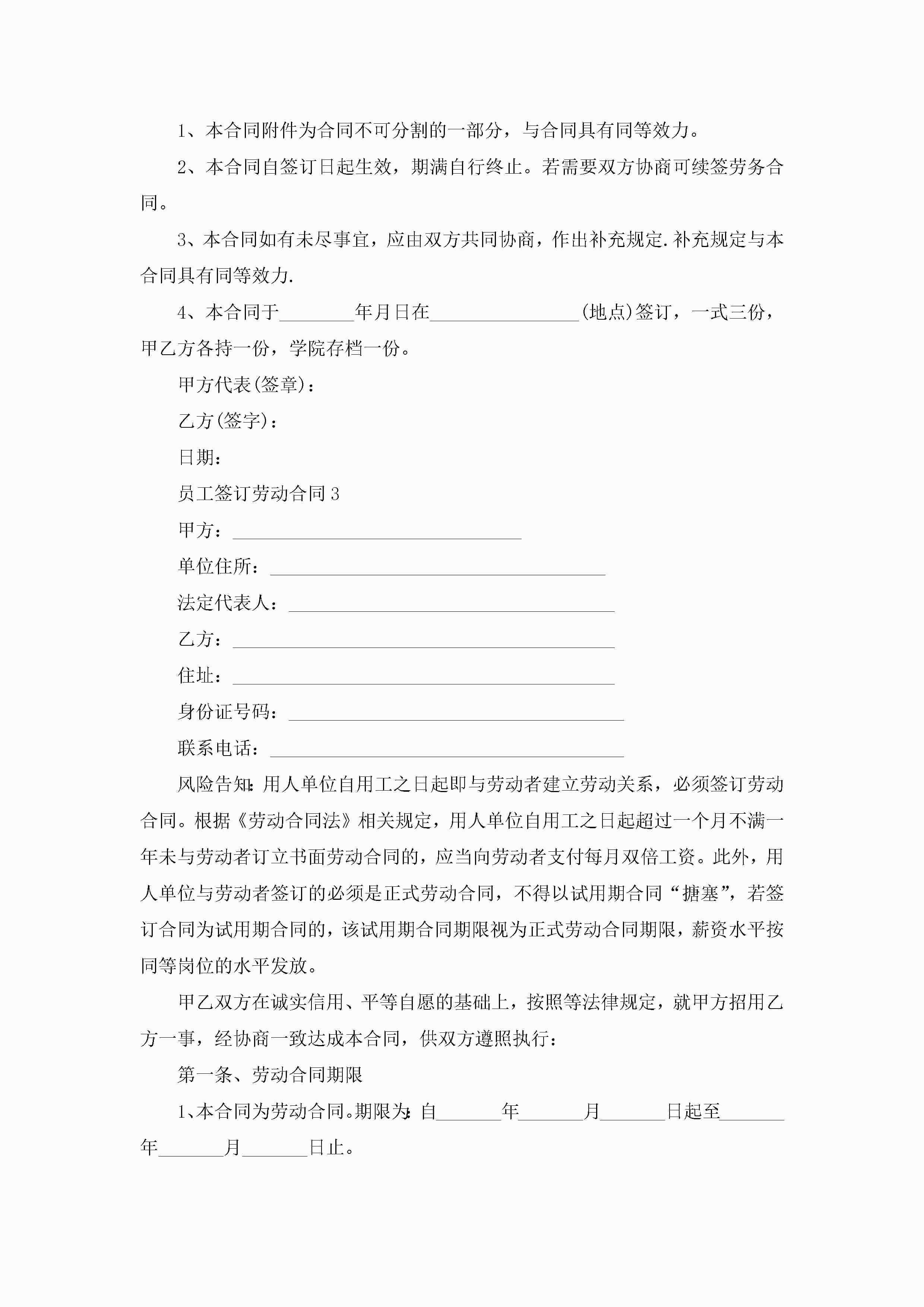 关于员工签订劳动合同5篇jugei3月23日 01:46发布关注193 关于员工签订劳动合同5篇此内容为付费资源,请付费后查看¥10.9 单篇文档限时特惠¥15个人会员开通企业会员开通立即下载无需登陆!可直接快捷下载单个模板付费资源© 版权声明THE ENDWord模板# 实用文档# 实用模板# 合同模板# 劳动合同 如有问题,可点击最底部“联系我们”联系客服 分享QQ空间微博QQ好友海报分享复制链接收藏