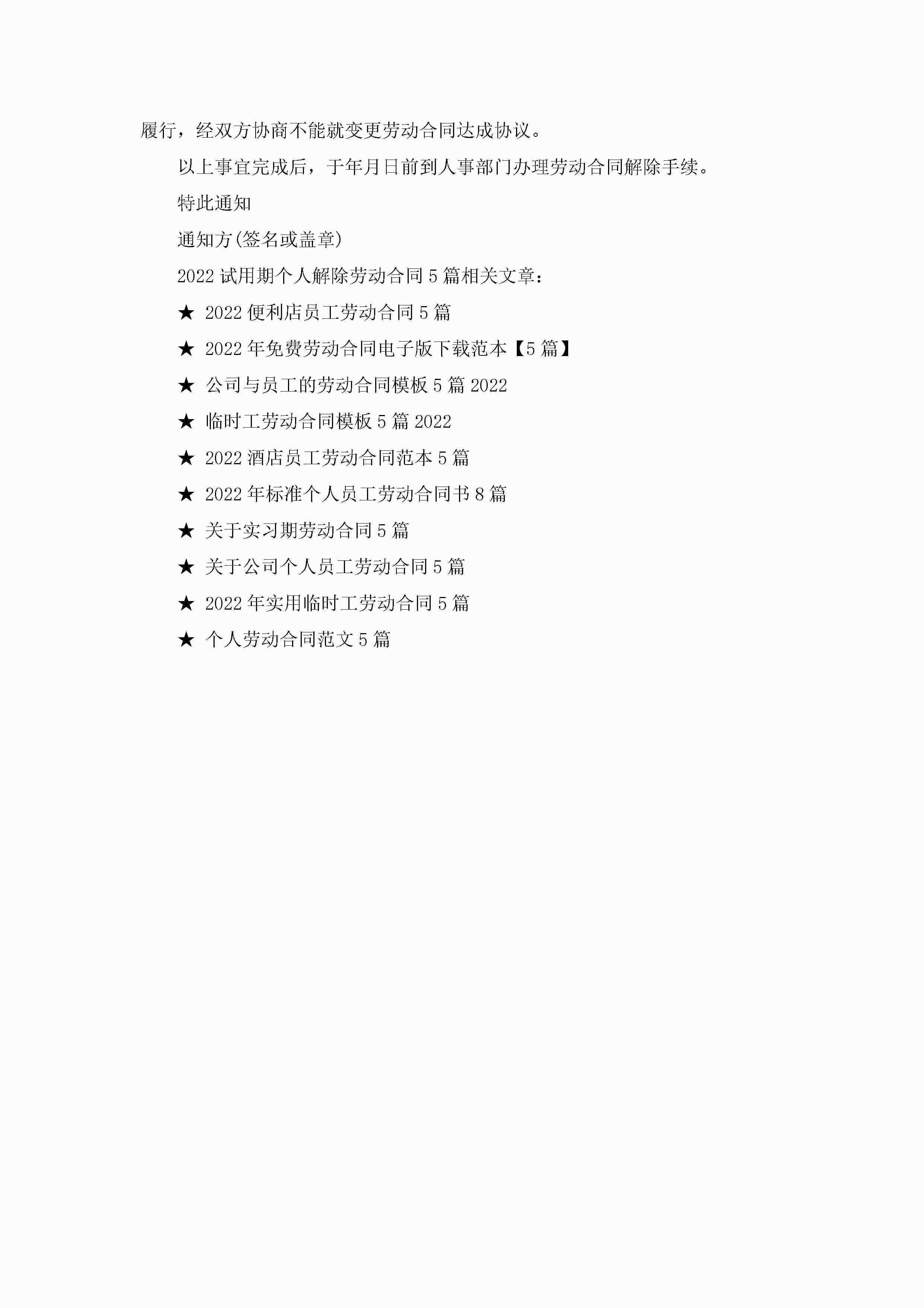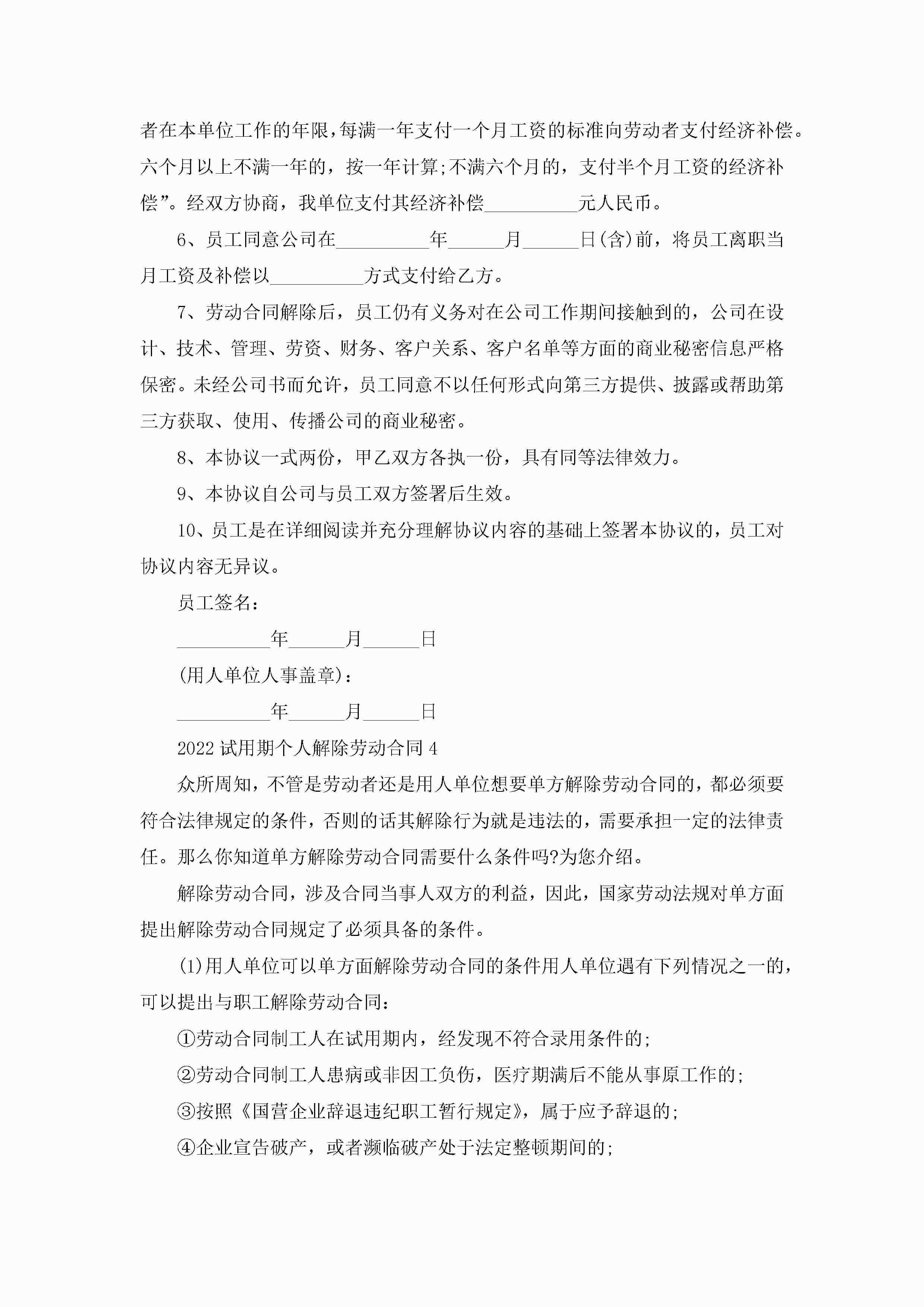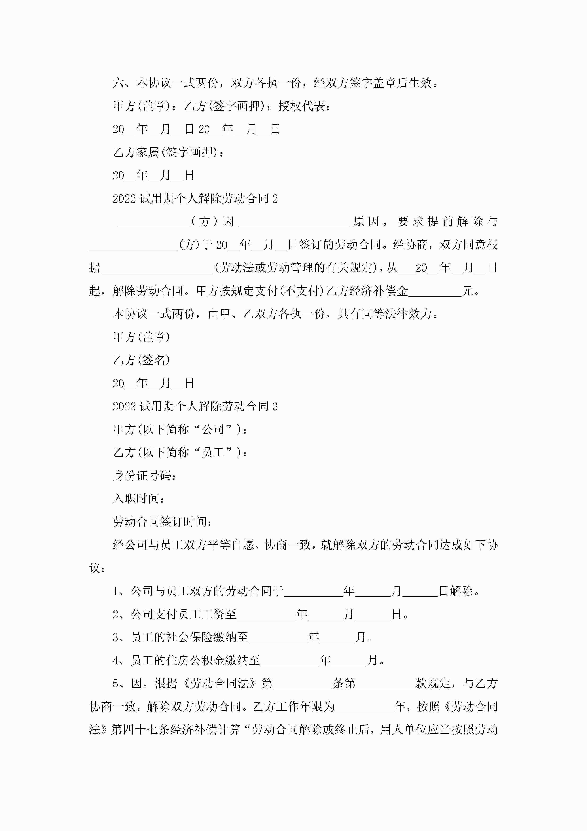 2022试用期个人解除劳动合同范文5篇jugei3月23日 01:46发布关注232 2022试用期个人解除劳动合同范文5篇此内容为付费资源,请付费后查看¥10.9 单篇文档限时特惠¥15个人会员开通企业会员开通立即下载无需登陆!可直接快捷下载单个模板付费资源© 版权声明THE ENDWord模板# 实用文档# 实用模板# 合同模板# 劳动合同 如有问题,可点击最底部“联系我们”联系客服 分享QQ空间微博QQ好友海报分享复制链接收藏
