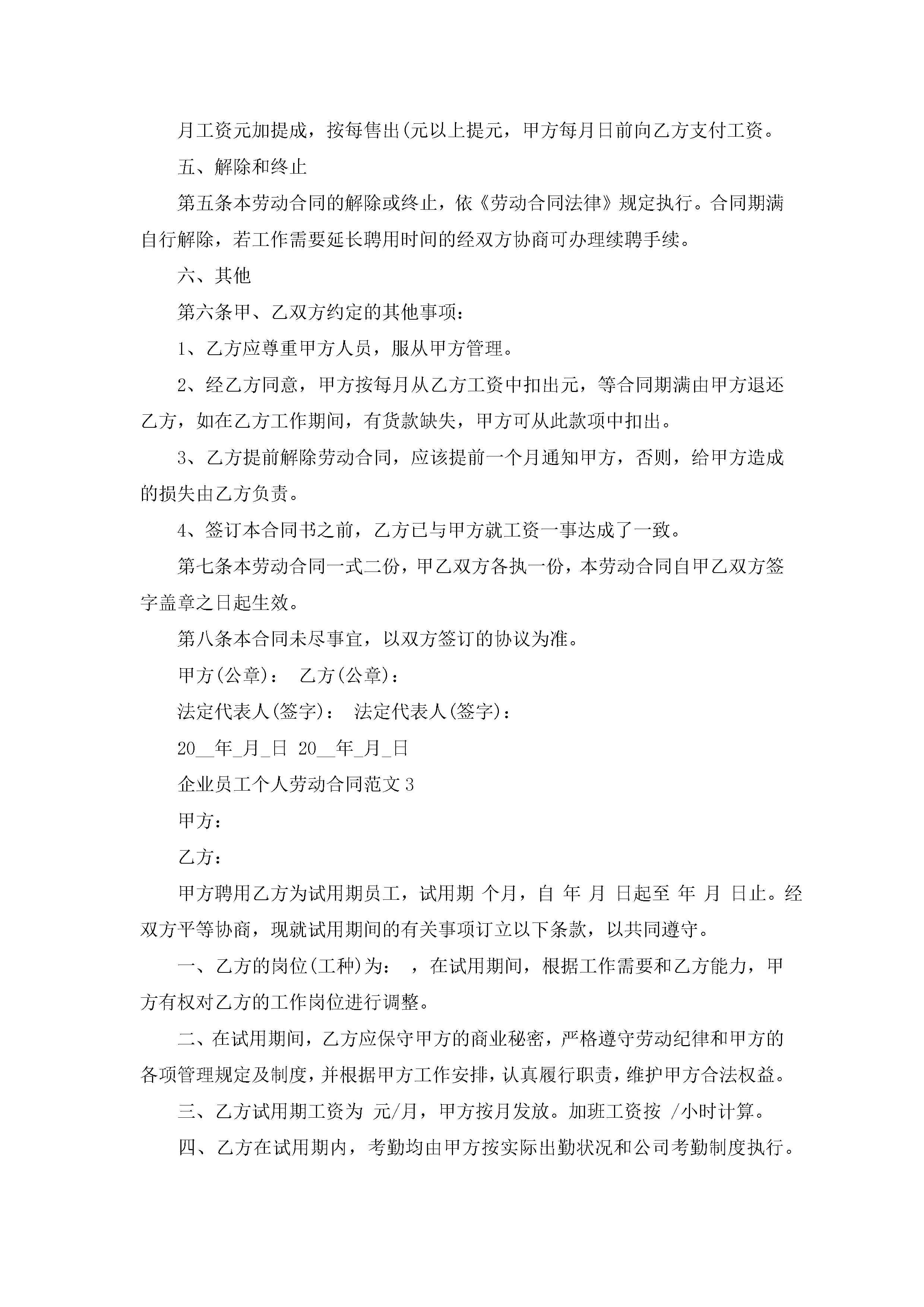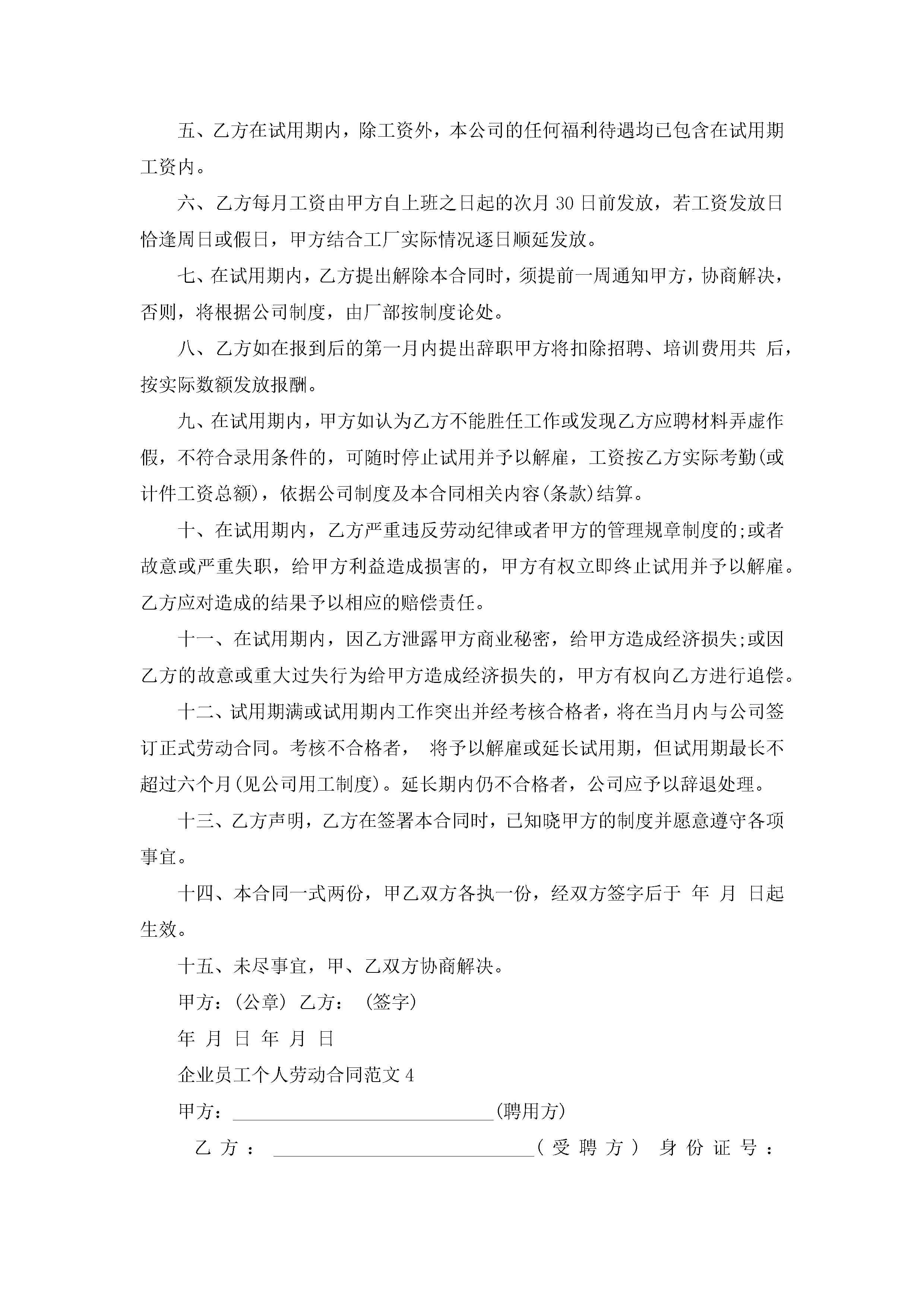 关于企业员工个人劳动合同范文5篇jugei3月23日 01:46发布关注184 关于企业员工个人劳动合同范文5篇此内容为付费资源,请付费后查看¥10.9 单篇文档限时特惠¥15个人会员开通企业会员开通立即下载无需登陆!可直接快捷下载单个模板付费资源© 版权声明THE ENDWord模板# 实用文档# 实用模板# 合同模板# 劳动合同 如有问题,可点击最底部“联系我们”联系客服 分享QQ空间微博QQ好友海报分享复制链接收藏